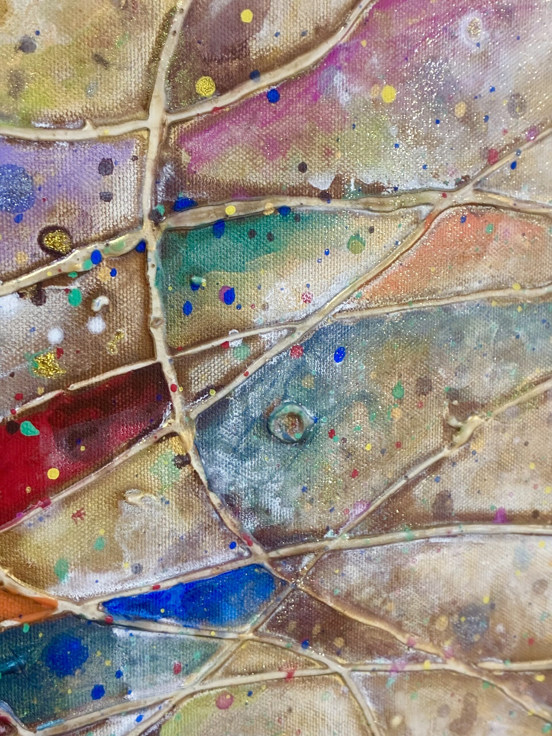 ラメやパール色をふんだんに使いました。見る角度によってさまざまな色彩と輝きをみせます。
