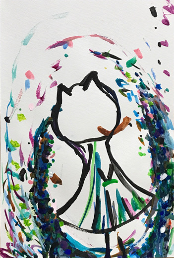 怒りやかなしみ、切なさ、力ない感じ、攻撃性、うらみなどが、こもっている気がしました。考えずに描いているので、描き終わり、見て考えていたらそう感じました。