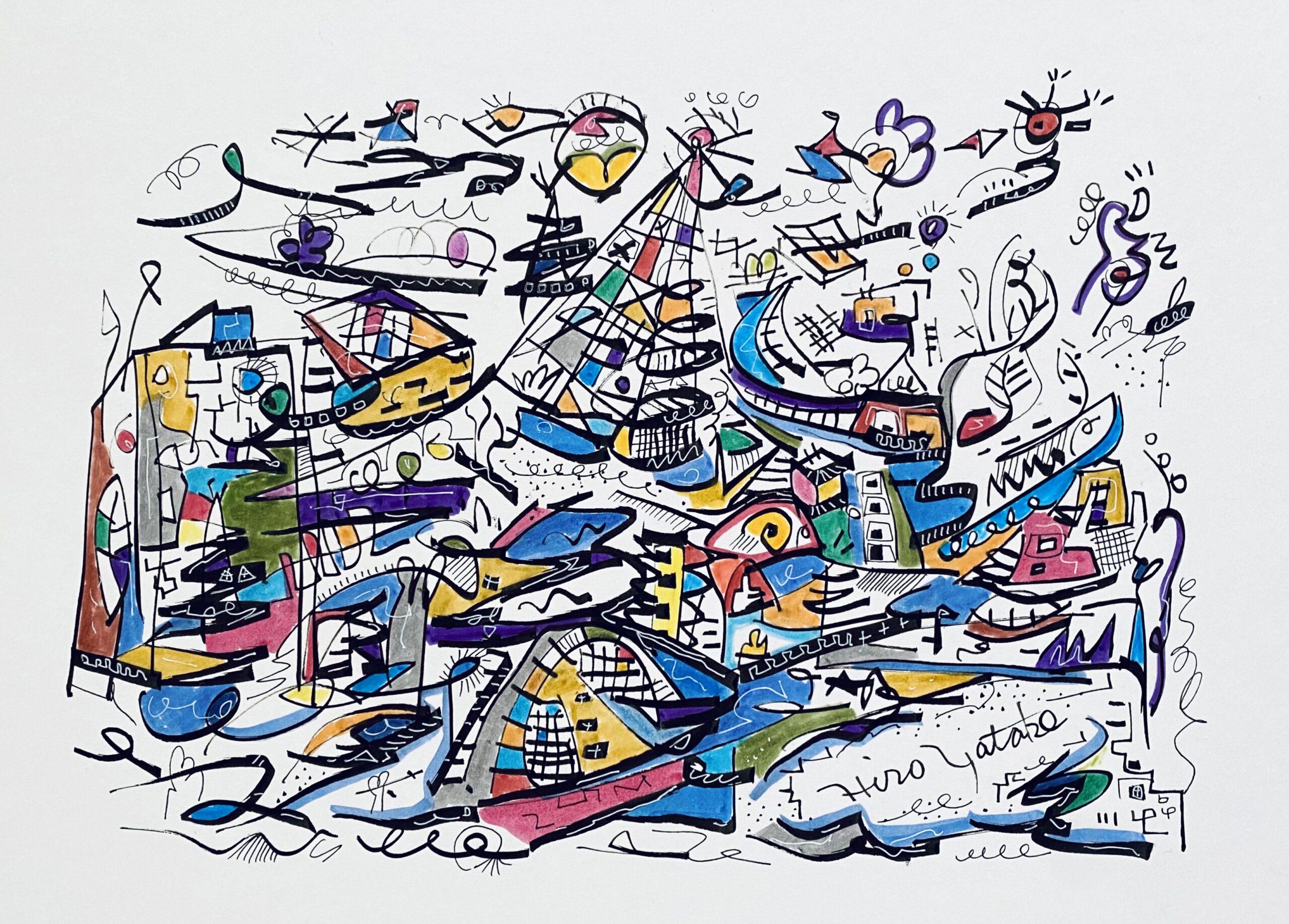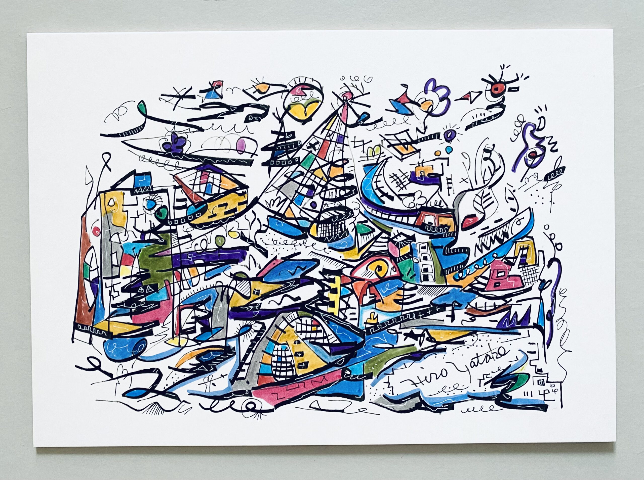 シリーズ作品を除き、タイトルは創作のはじめにあったものではなく、描き終えた時点で観る側となった私が名付けた「仮のタイトル」です。参考にするのも、答え合わせのように楽しむのも、あるいはまったく無視するのも自由です。抽象表現の色や形に意味を見出す手がかりは、あなたの記憶や経験のなかにしかありません。最終的な作品は観るかたの中で完成すべきものだと考えています。思い思いに想像の翼を羽ばたかせ、作品に新しい解釈を加えていただくことを望みます。