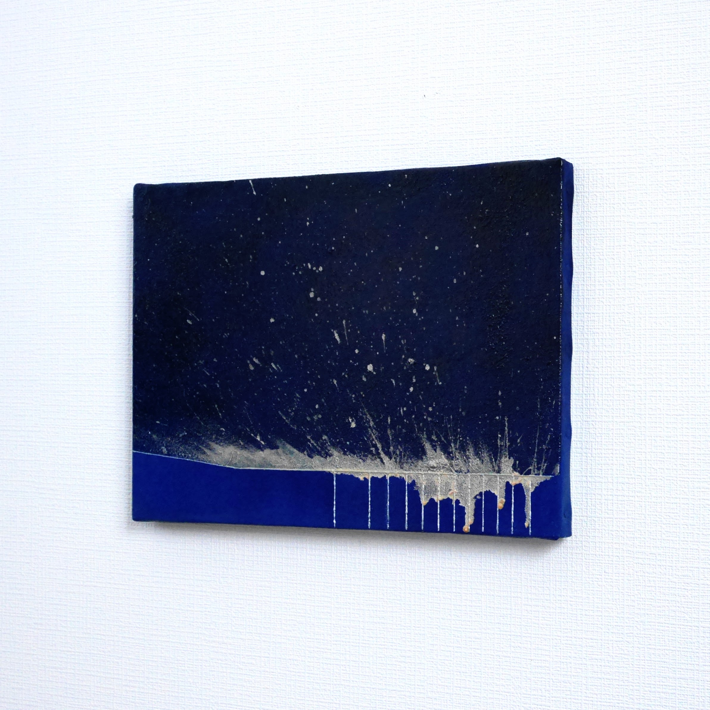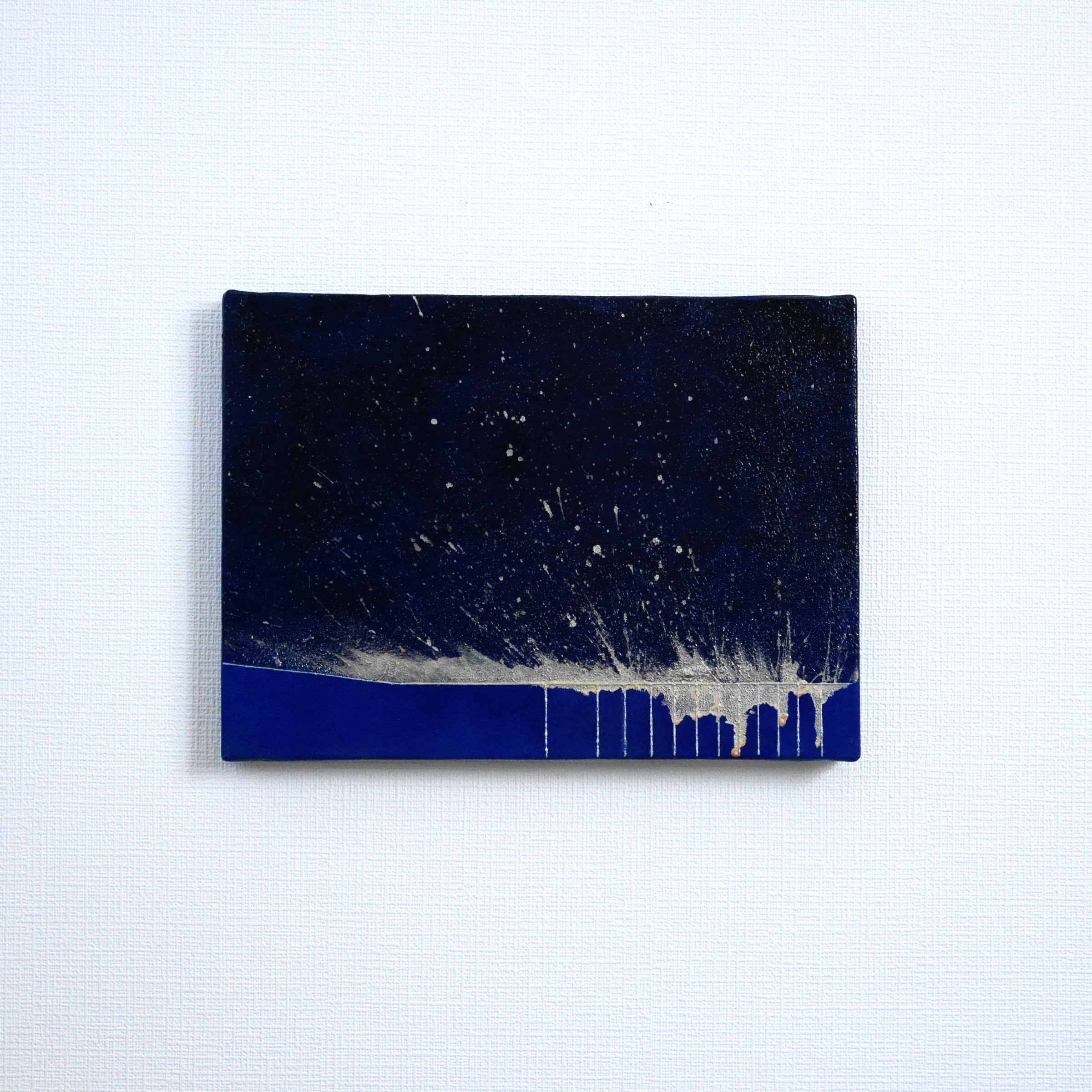 まるで深夜の湖畔の際のような静寂な空気感のなか、淡い光を放った波が飛沫をあげているかのような作品です。