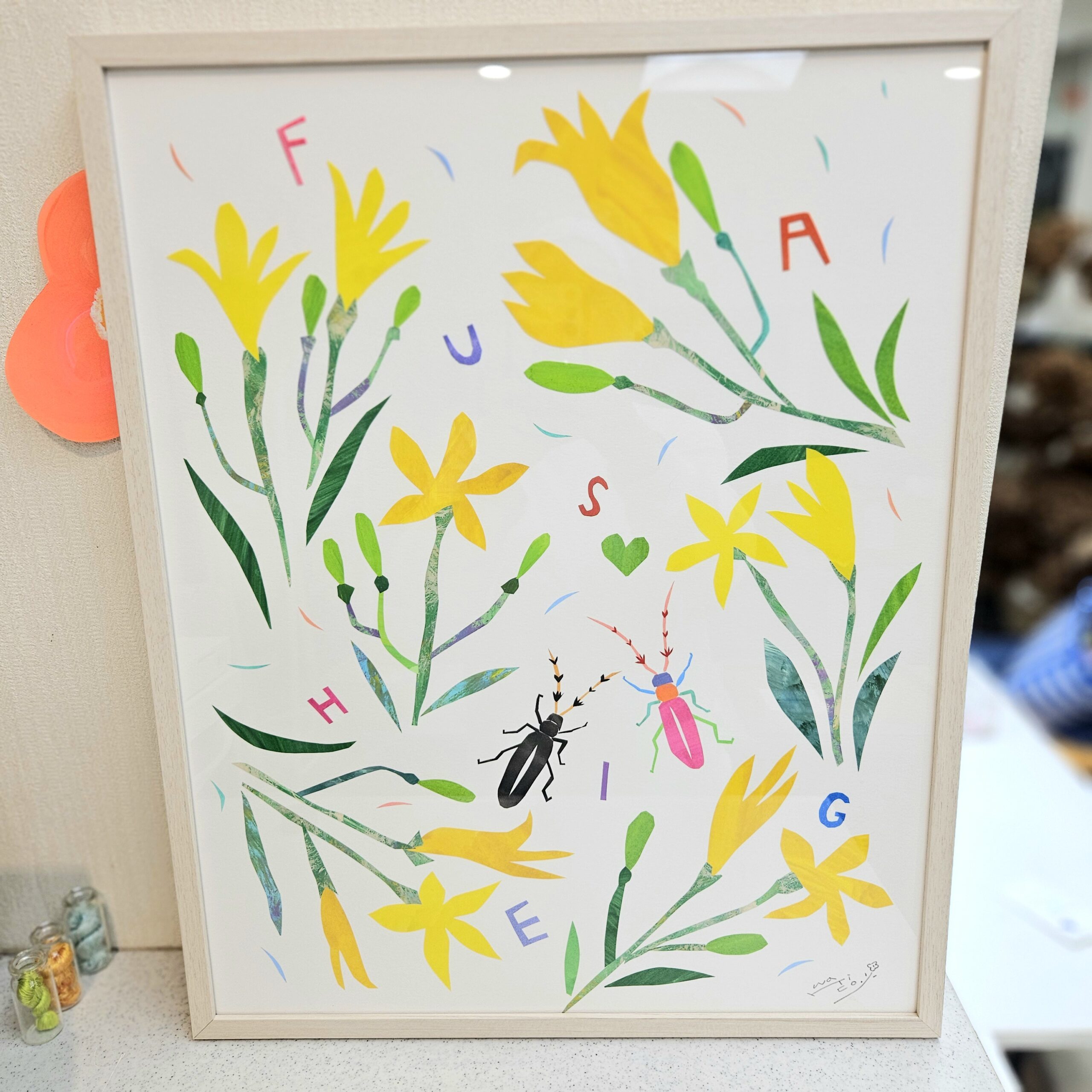 「フサヒゲルリカミキリ」と「ユウスゲ」をモチーフに制作しました