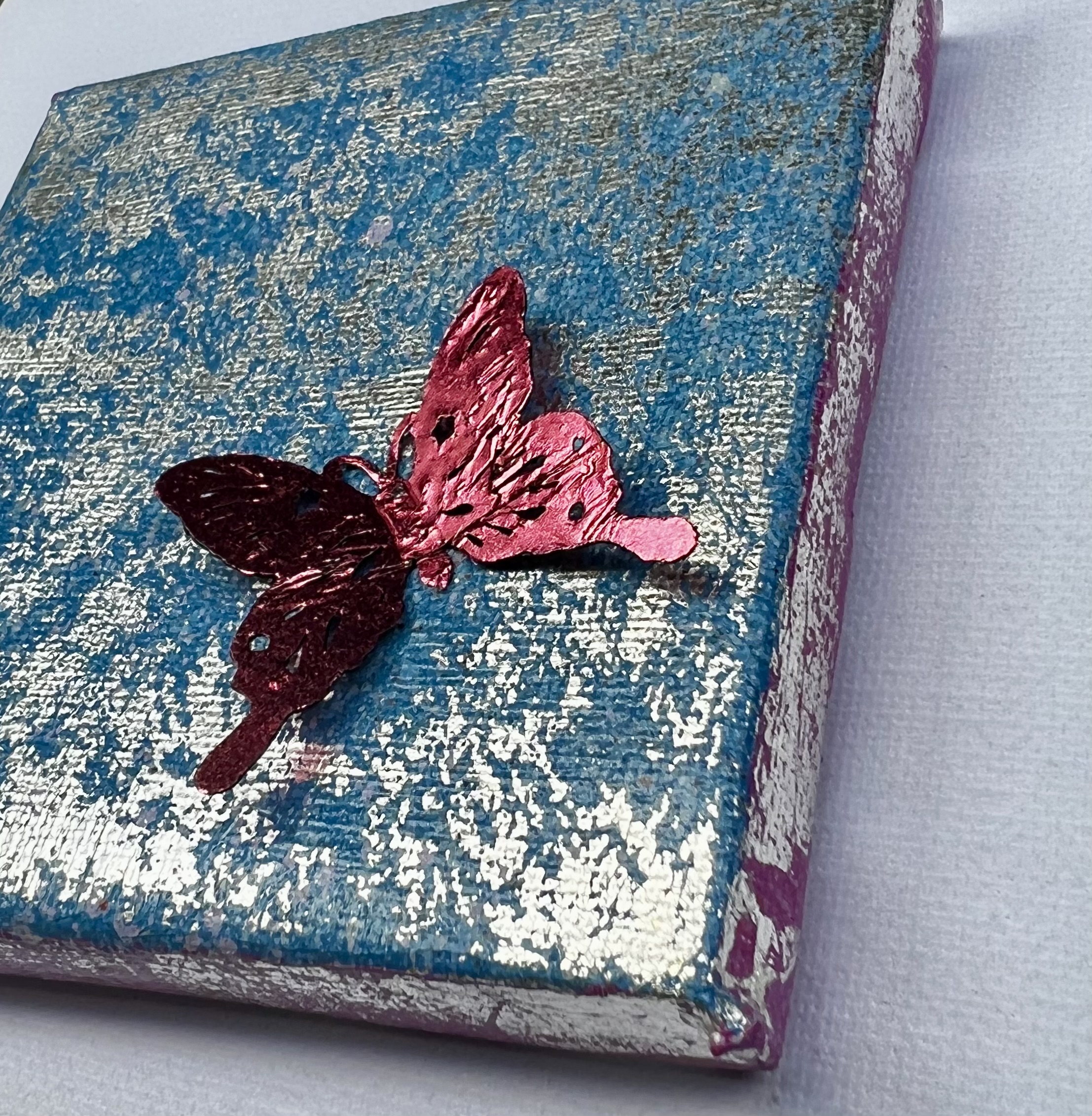 ことが多く、人の心も何度も何度も再生をくり返いしているんだという思いを蝶の作品にのせています。
