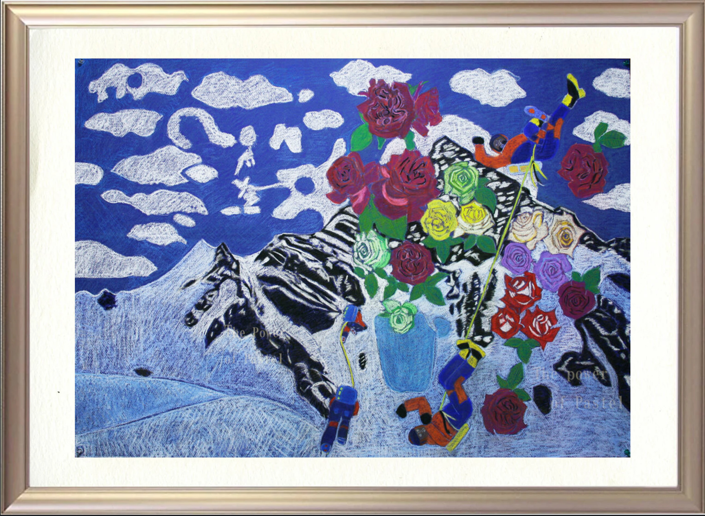 パステル原画の大きさは、いつものように 4/6判サイズ(1091mm×788mm)のマーメイド紙に、ソフトパステルで描いています。