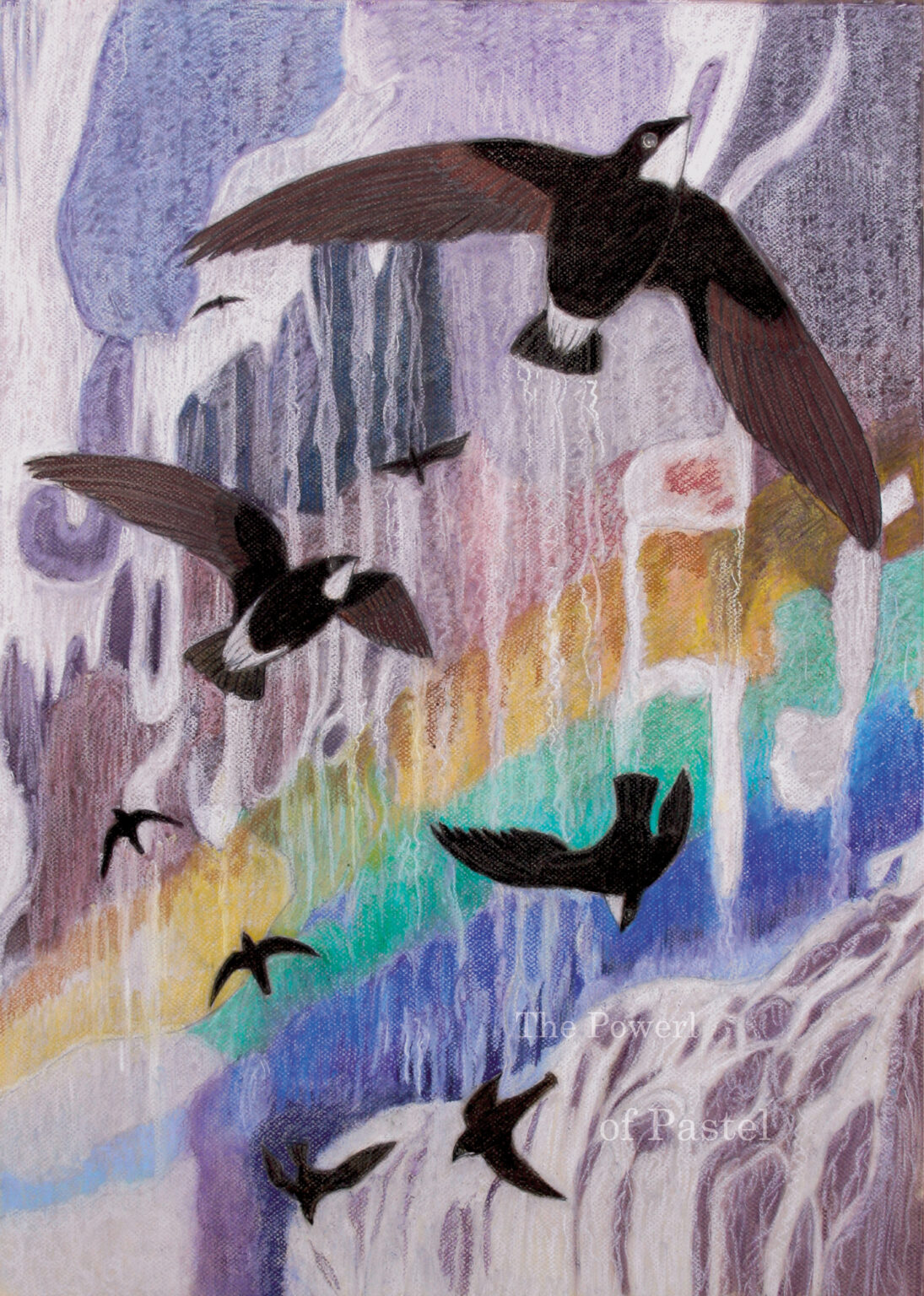 原画はタント紙にソフトパステルと色鉛筆で描いています。