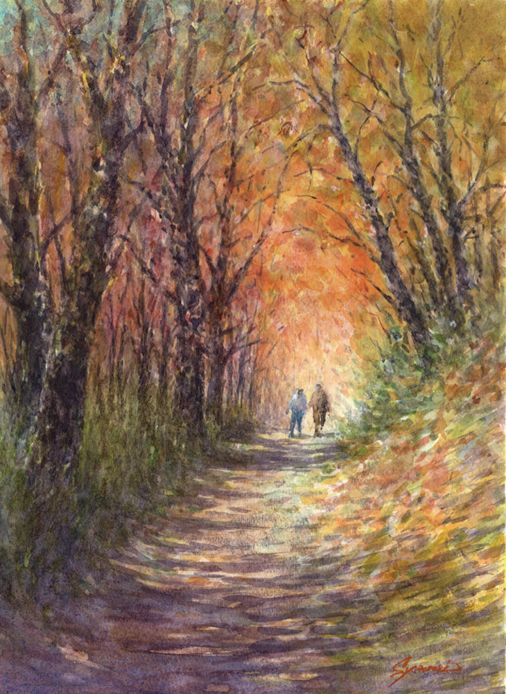 水彩画原画 紅葉の森 #697