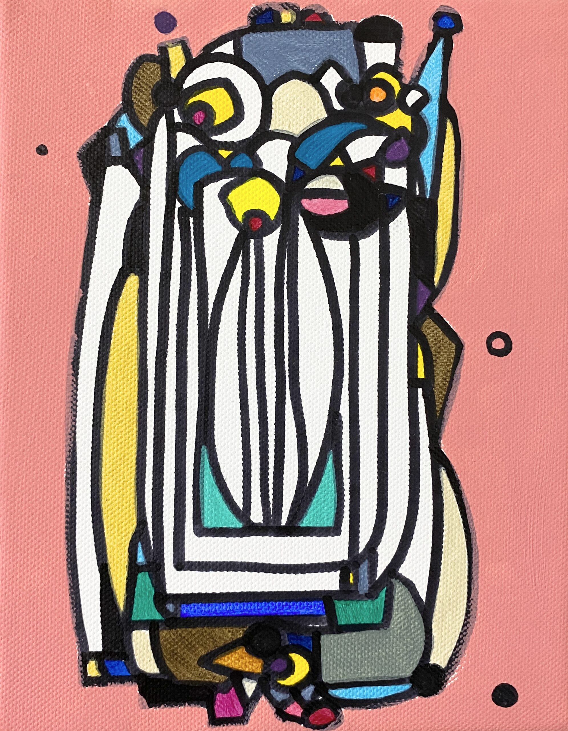 学生時代、染色技法、アクリル画で、主に幾何・抽象表現の作品を制作。