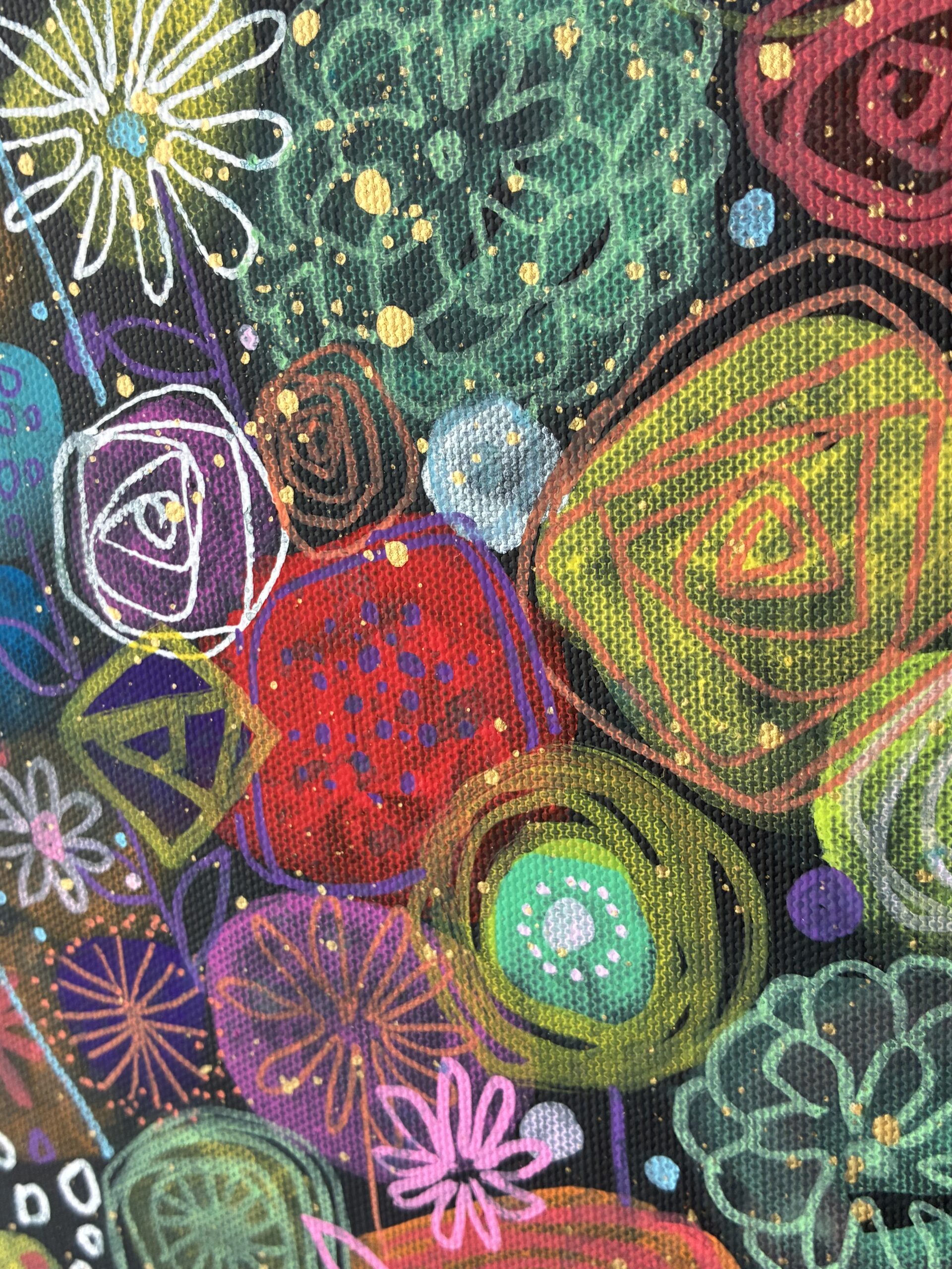 絵には暗い心や悲しみが含まれています。しかし美しさや強さや明るさが、それと戦っているかもしれません。優しさや希望さえ感じるかもしれません。