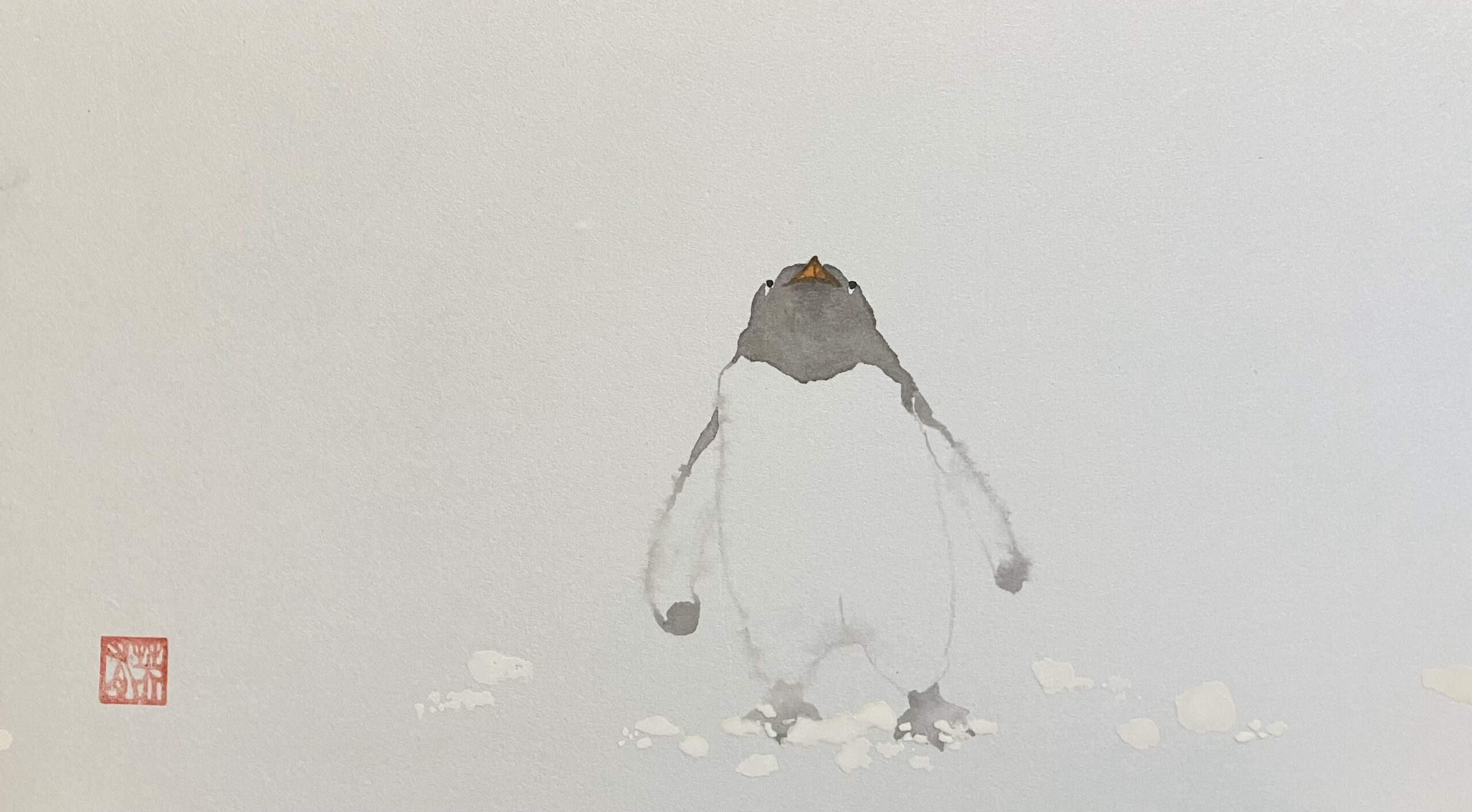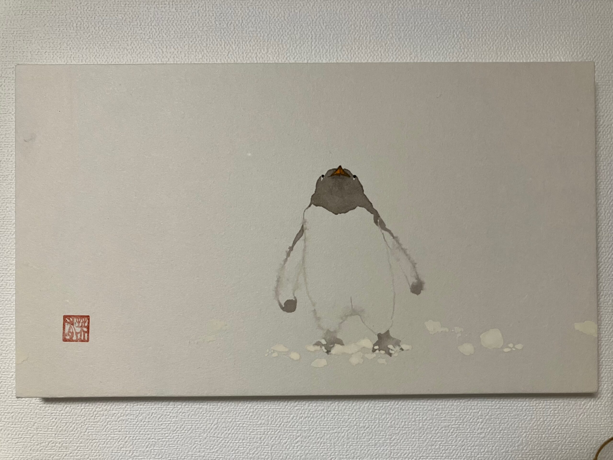 ペンギンを描きました。胸を張ってる姿がなんだか微笑ましいです。格好には似合わず、ちょっとひょうきんなお顔がポイントです!