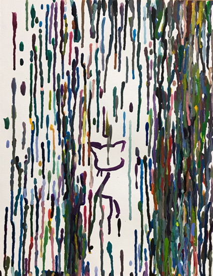 怒りやかなしみ、切なさ、力ない感じ、攻撃性、うらみなどが、こもっている気がしました。考えずに描いているので、描き終わり、見て考えていたらそう感じました。