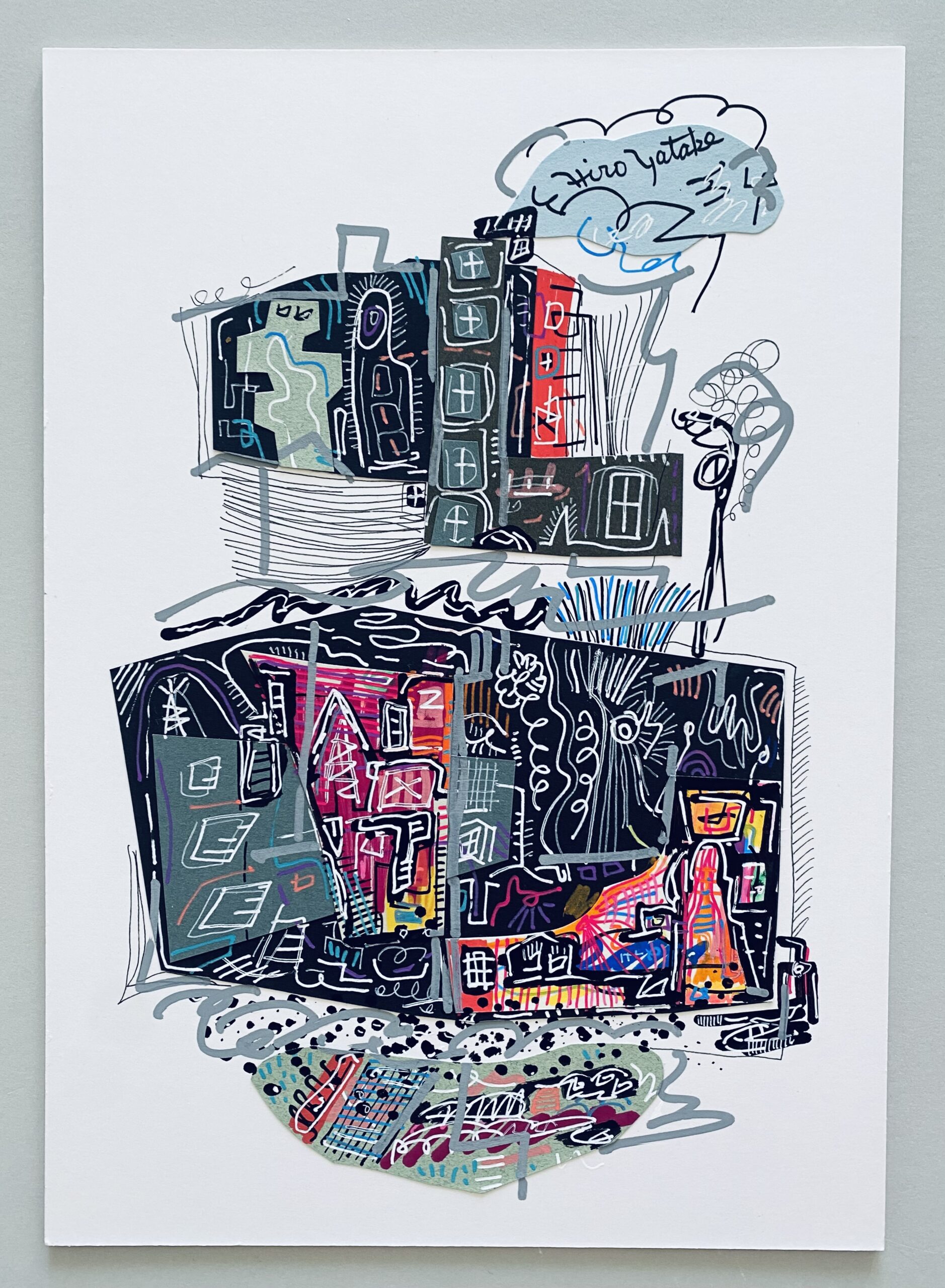 2008年 浮かんだイメージを付箋にボールペンでスケッチ。2012年になりそれをまとめたものを知人に見せたところサイズや画材をかえて絵画として発表することを勧められ、2013年、公募展にA4サイズのカードボードにペン・パステルで描いた作品を出品。その後アクリル絵具での創作をスタート。