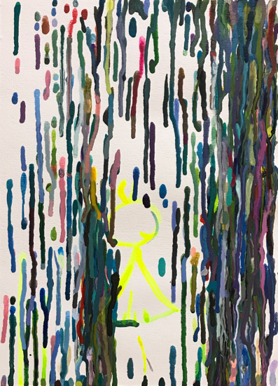 怒りやかなしみ、切なさ、力ない感じ、攻撃性、うらみなどが、こもっている気がしました。考えずに描いているので、描き終わり、見て考えていたらそう感じました。
