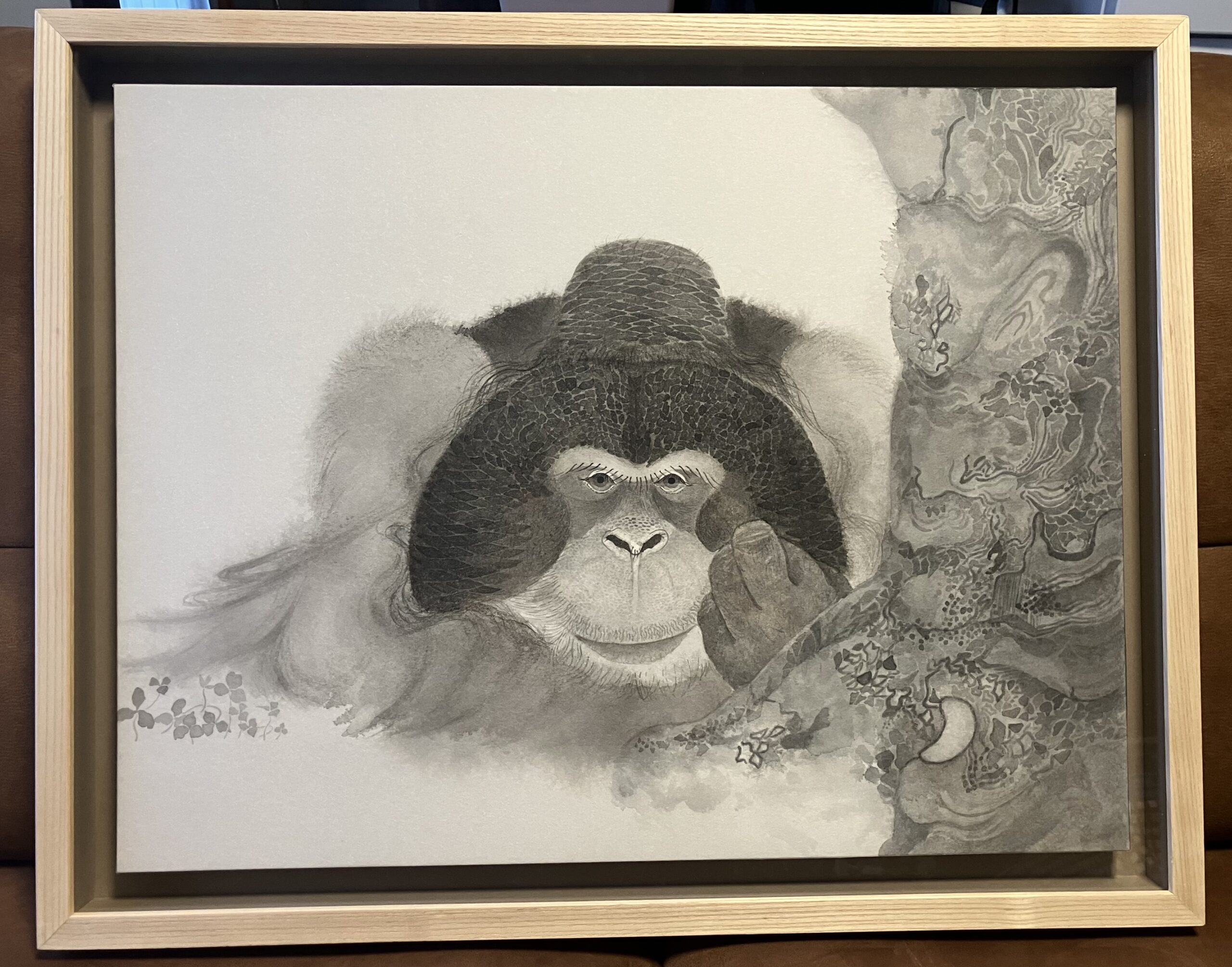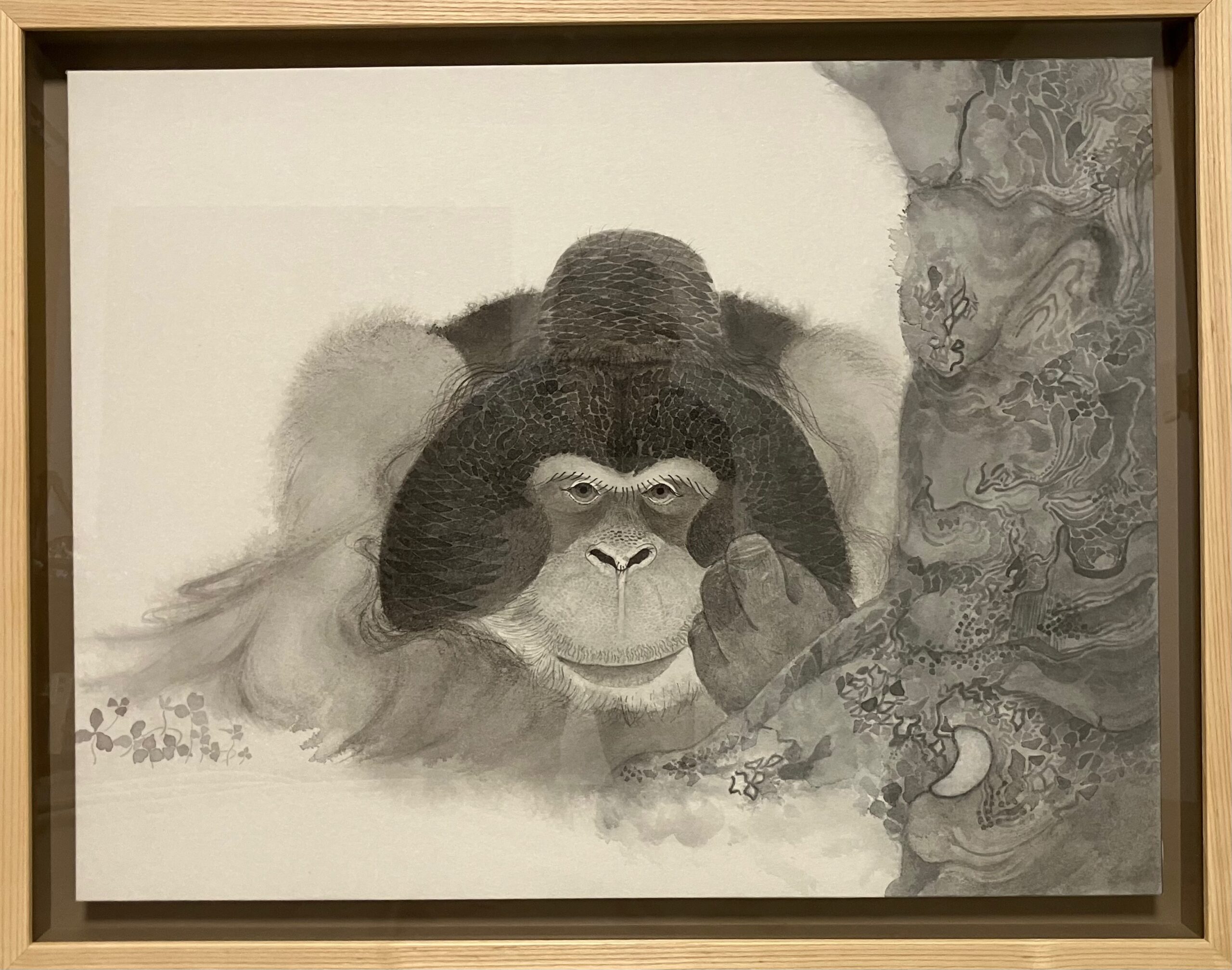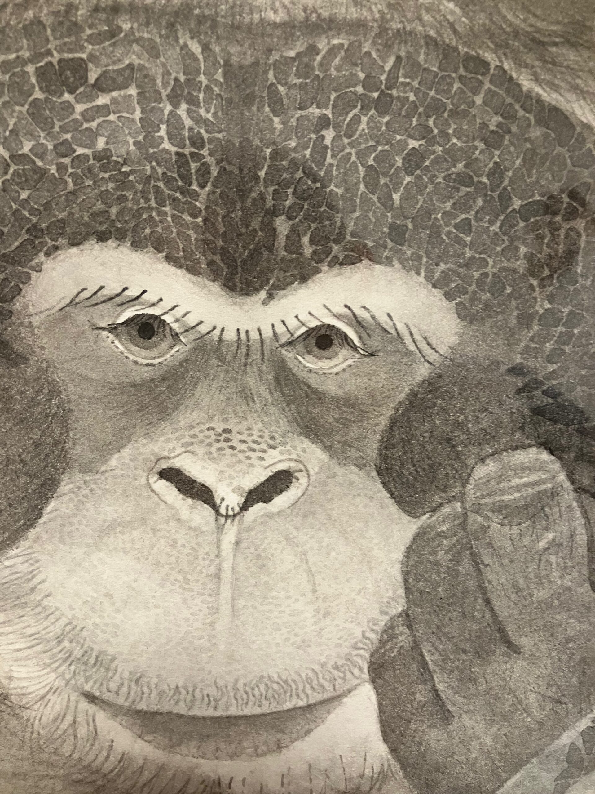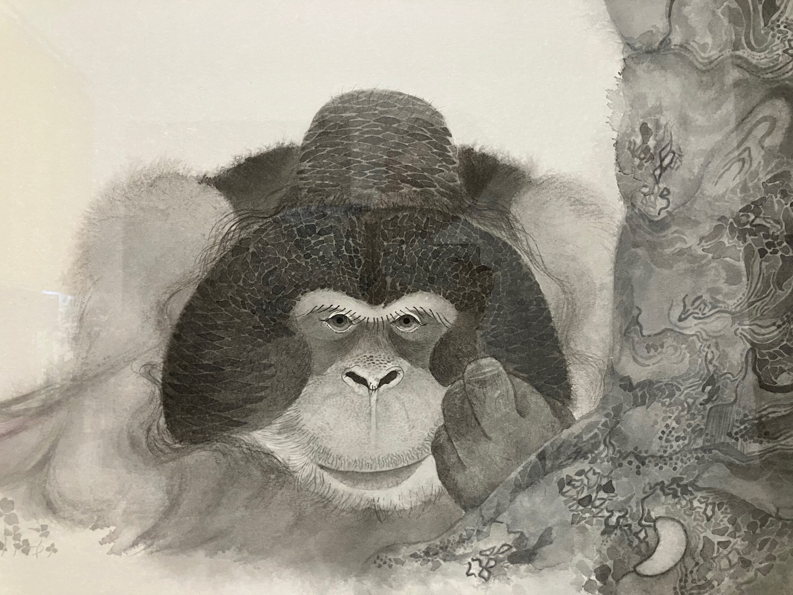 オランウータンを描きました。一番大好きだった子です。天国に旅立ってしまったので、右の木はお空のお星様をイメージして描いたのがポイントです!