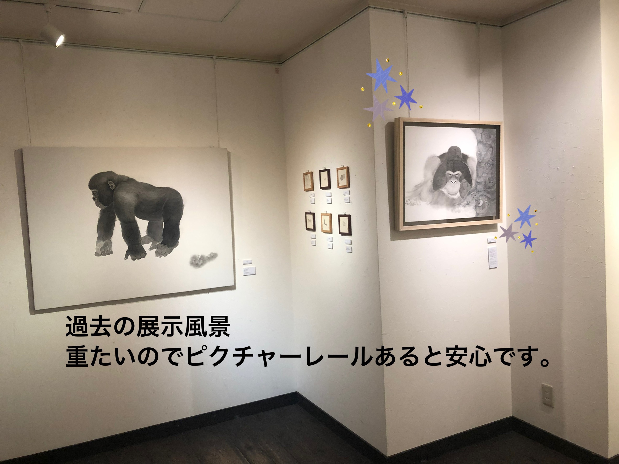 4.3キロと重たいのでピクチャーレールで飾るのを推奨します。