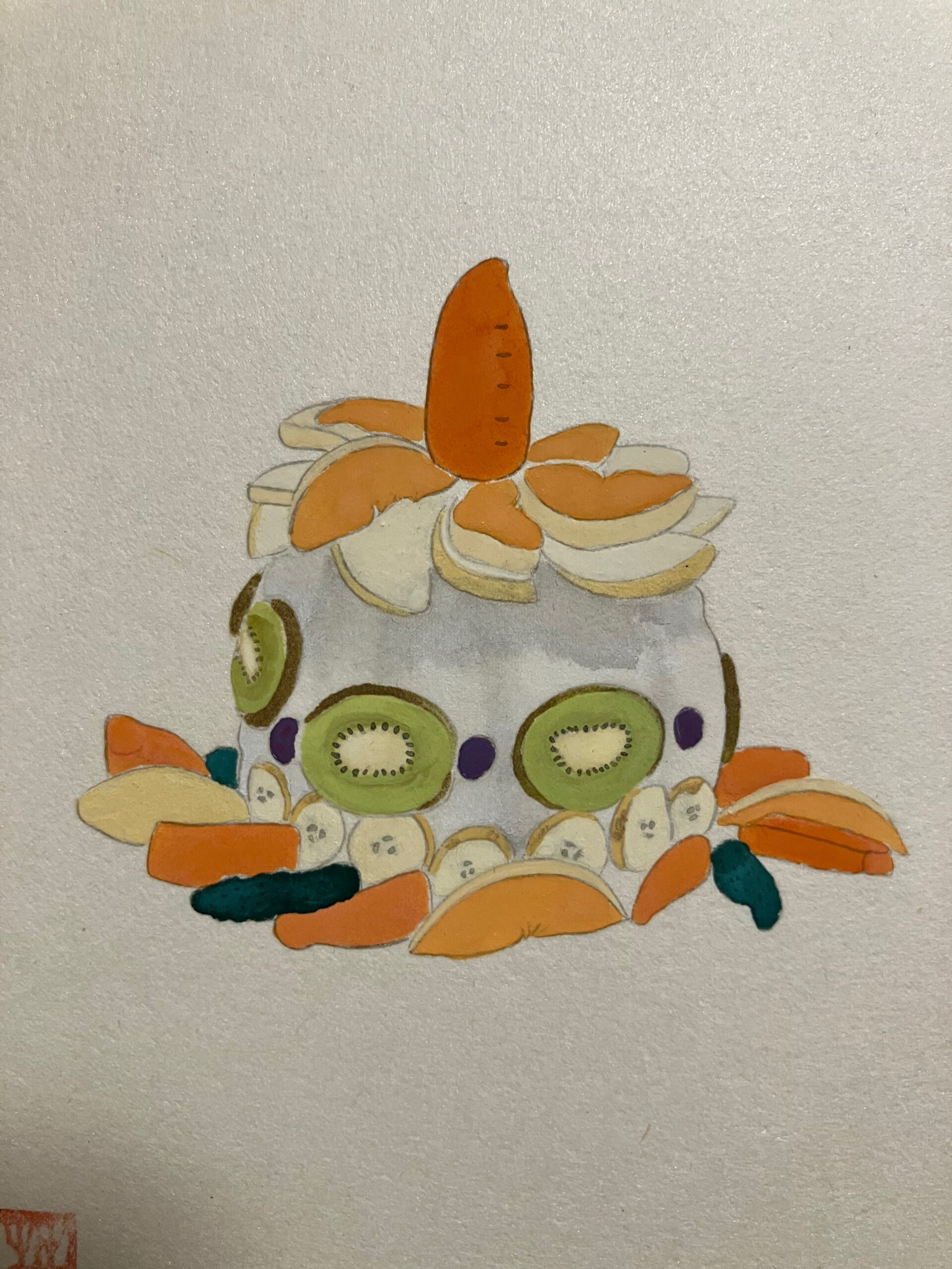 クリスマスケーキを描きました。人間用じゃなくて、動物用です。てっぺんの豪華な人参がポイントです!