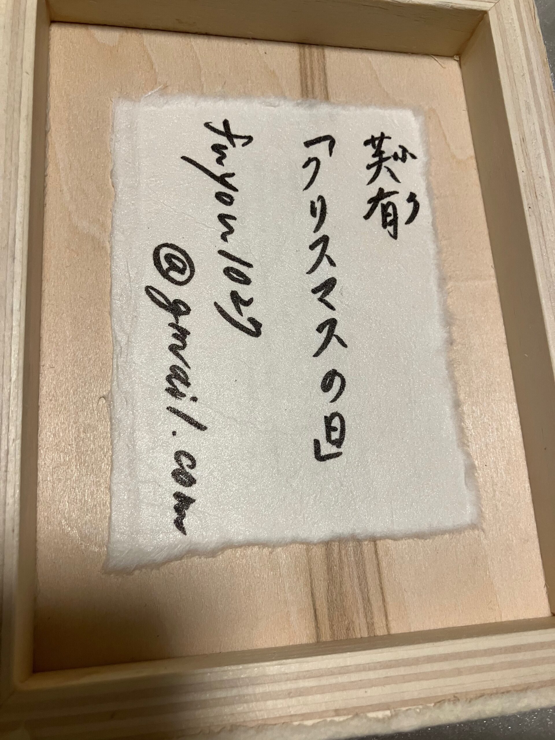 作品表面に落款あります。作品裏面にタイトル・名前記載ありです。