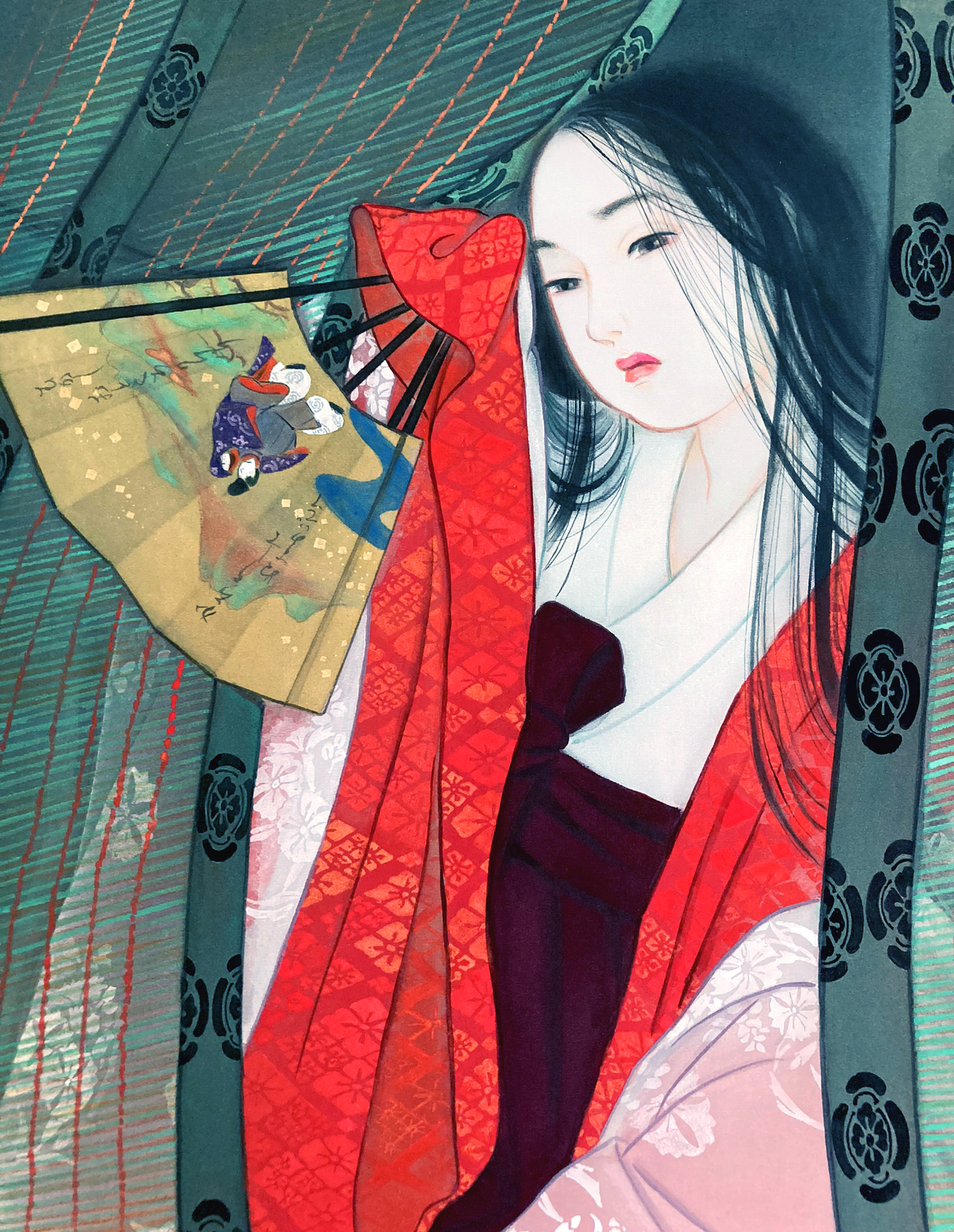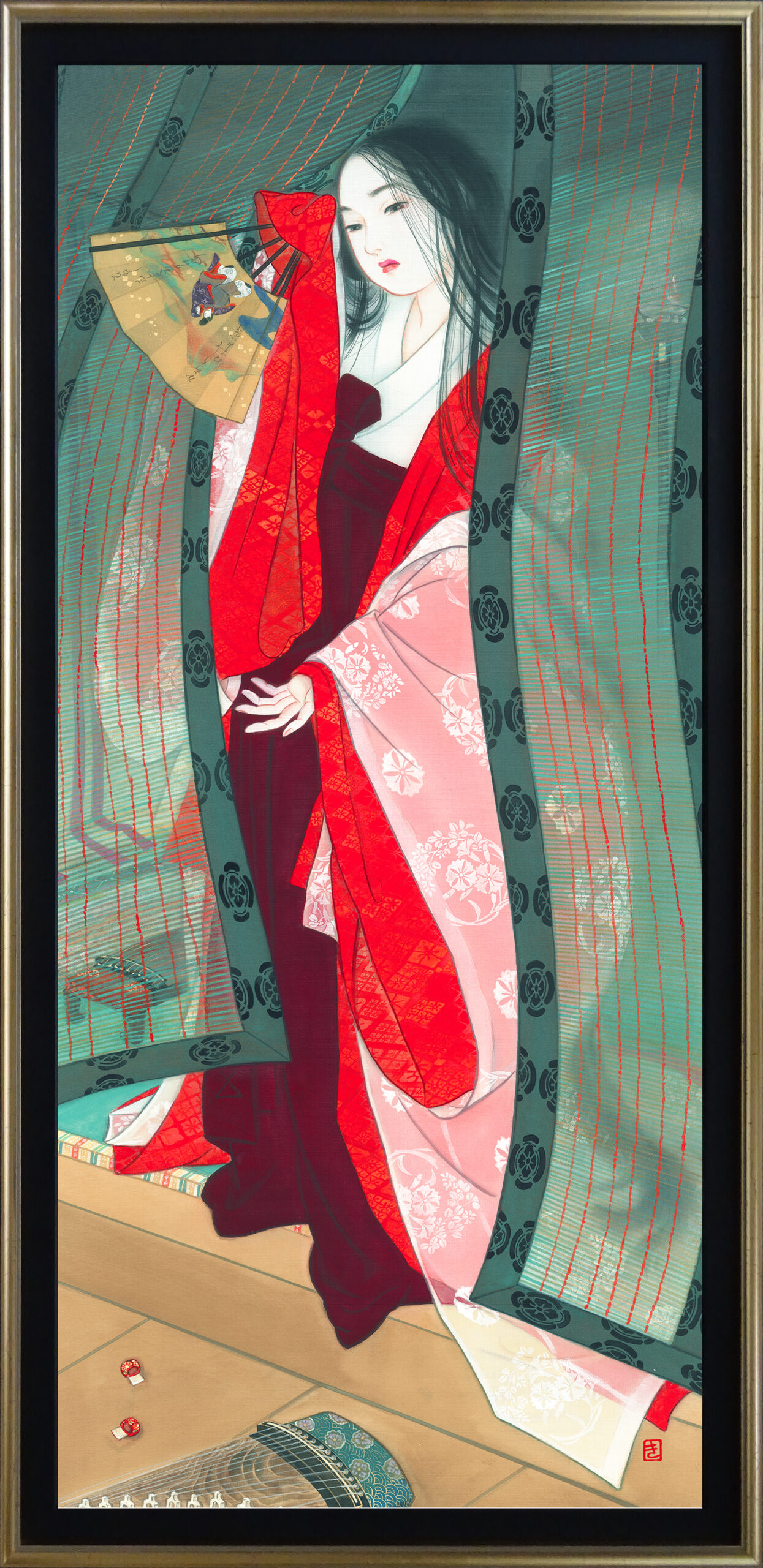 その昔、在原業平に盗まれた「藤原高子」のように、外の世界にさらわれたかったのかもしれない・・筝の琴の教師として白河院を訪れた貴公子藤原季通目線で描いた妄想画です。
