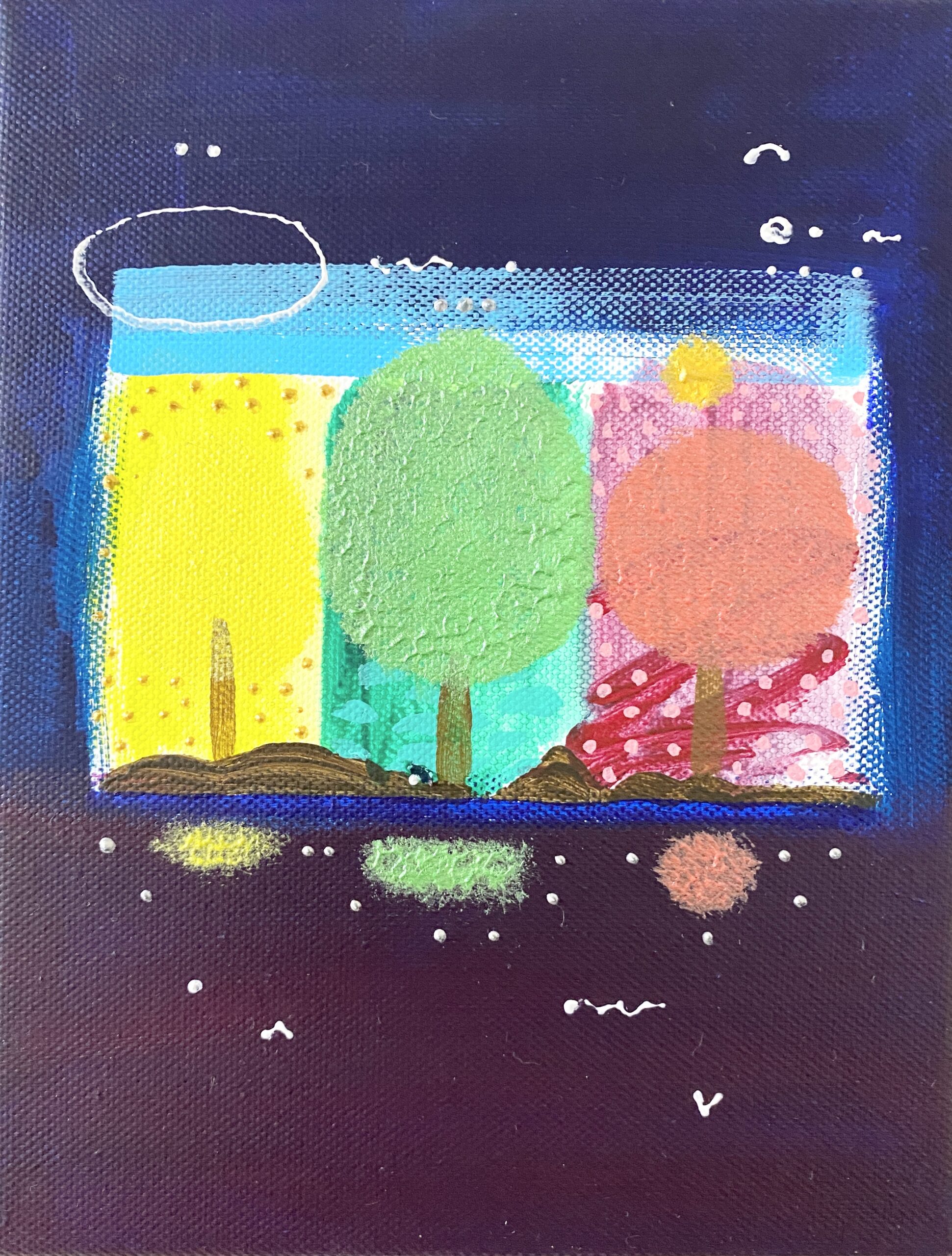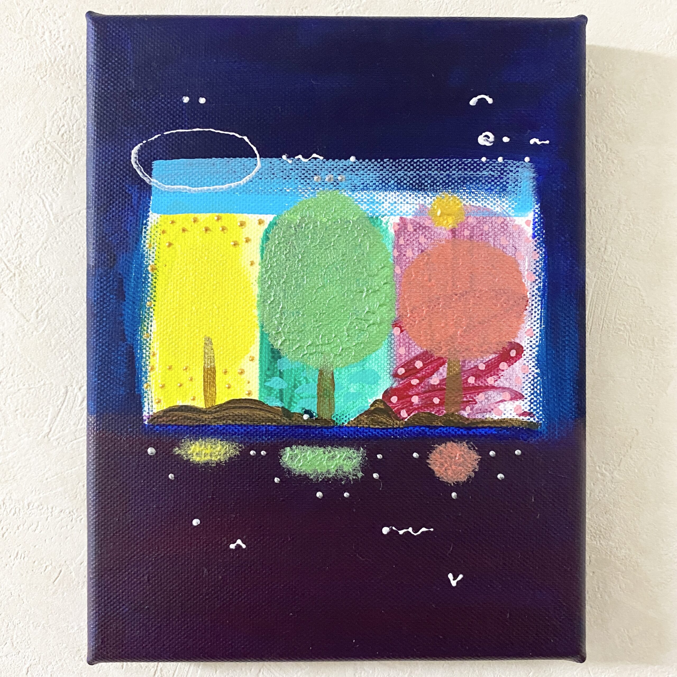 学生時代、染色技法、アクリル画で、主に幾何・抽象表現の作品を制作。