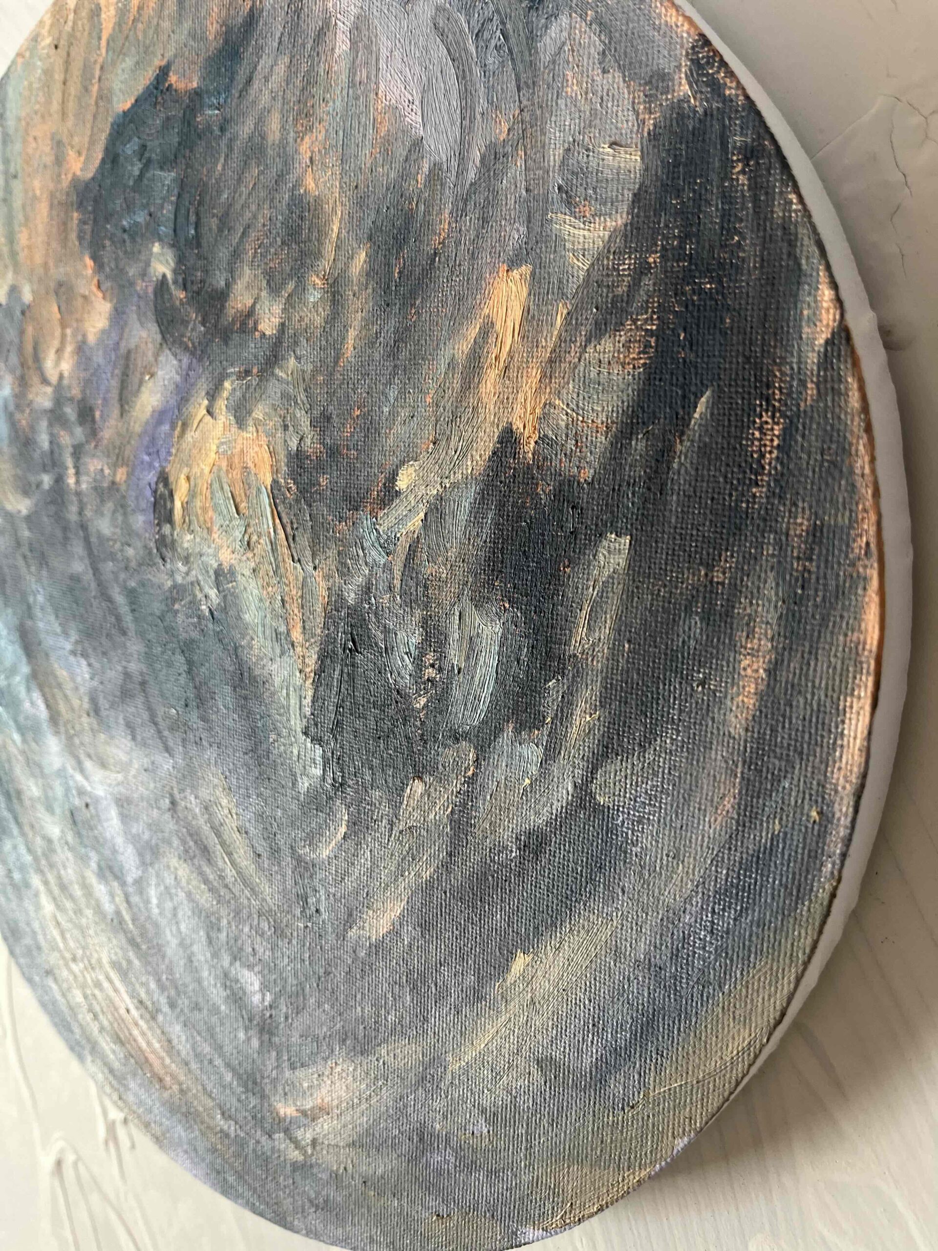 直径30㎝「画家の家の上空3」油彩・絵画・原画・丸形・アートパネル