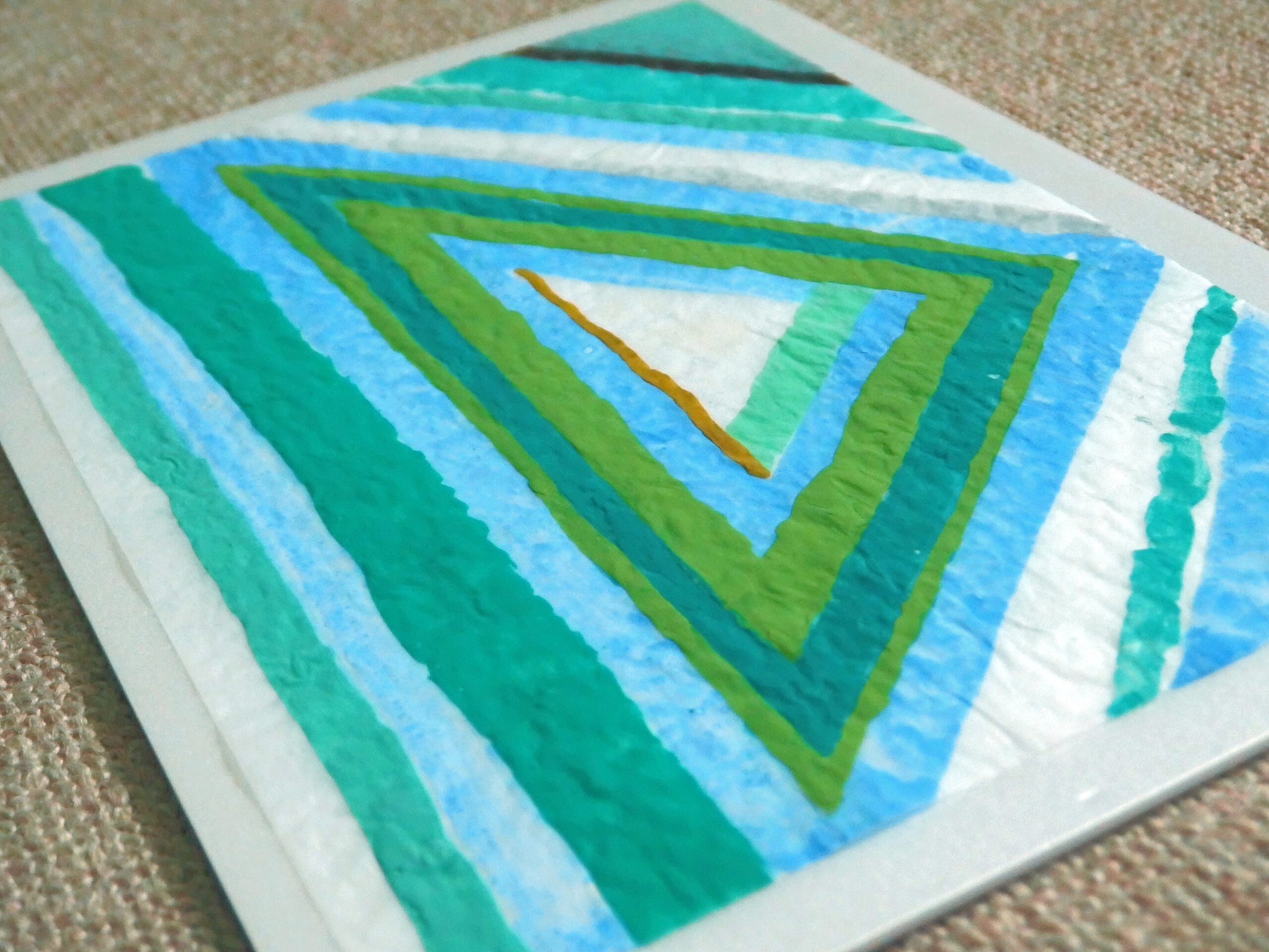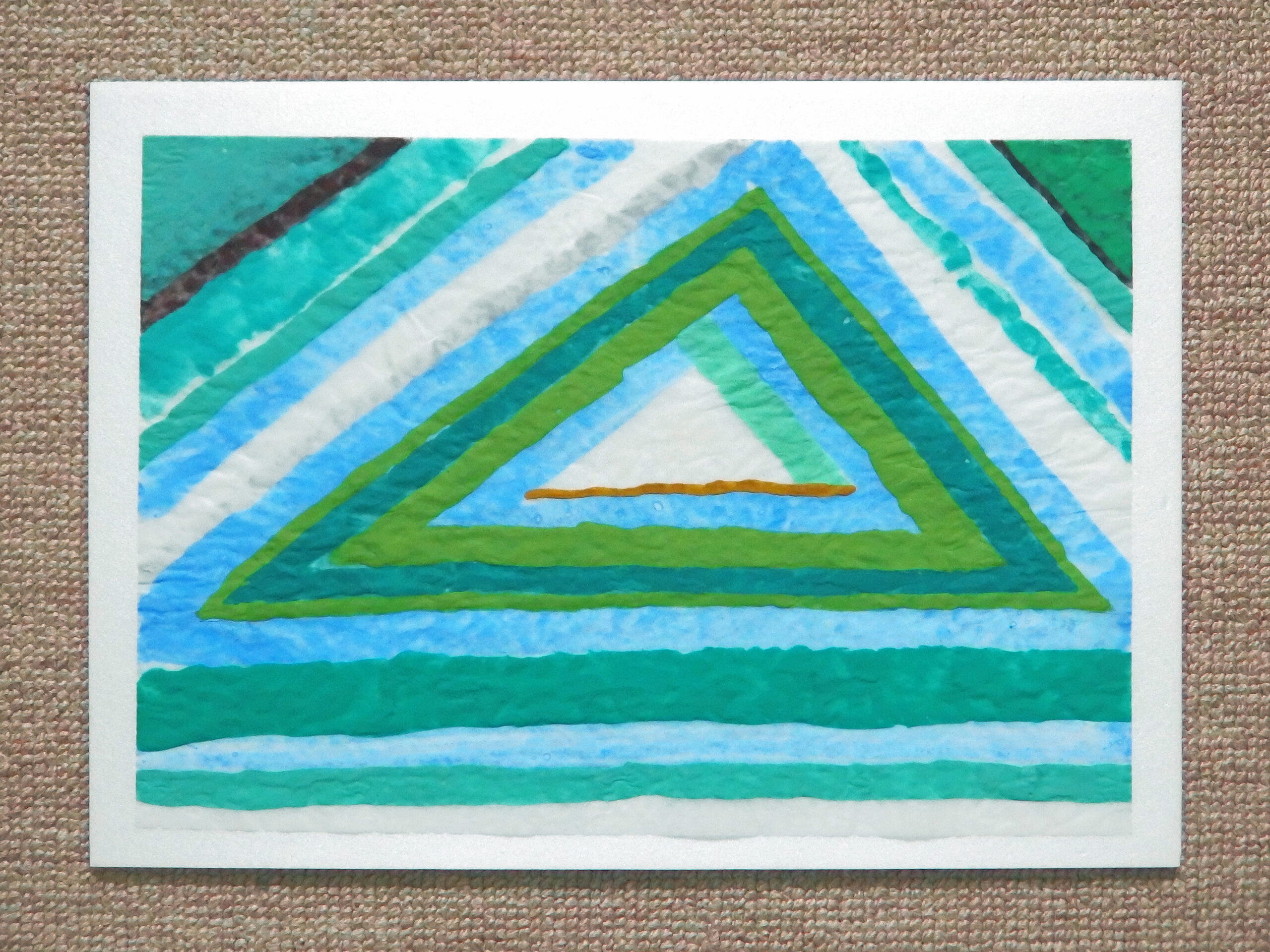 スチレンペーパーという光沢のある真っ白な素材に、岩絵の具自体の美しさが際立ちます。この組み合わせを発見し、気に入って使い続けています。