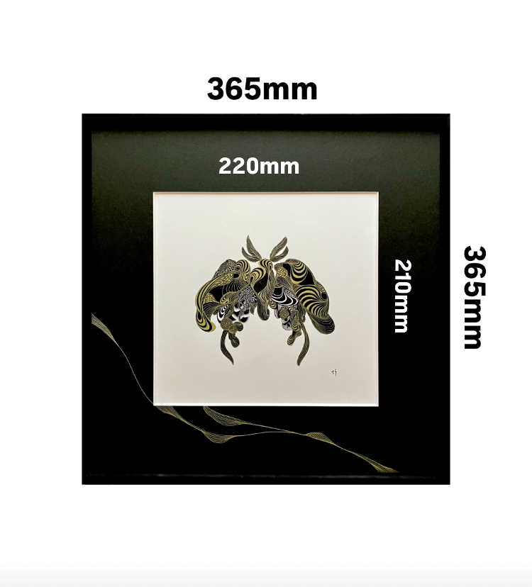 自然や生き物へのリスペクト、環境への配慮の観点から一部古いフレームを使用しており、かぶせ箱や差し箱のない作品もございます。ご了承ください。