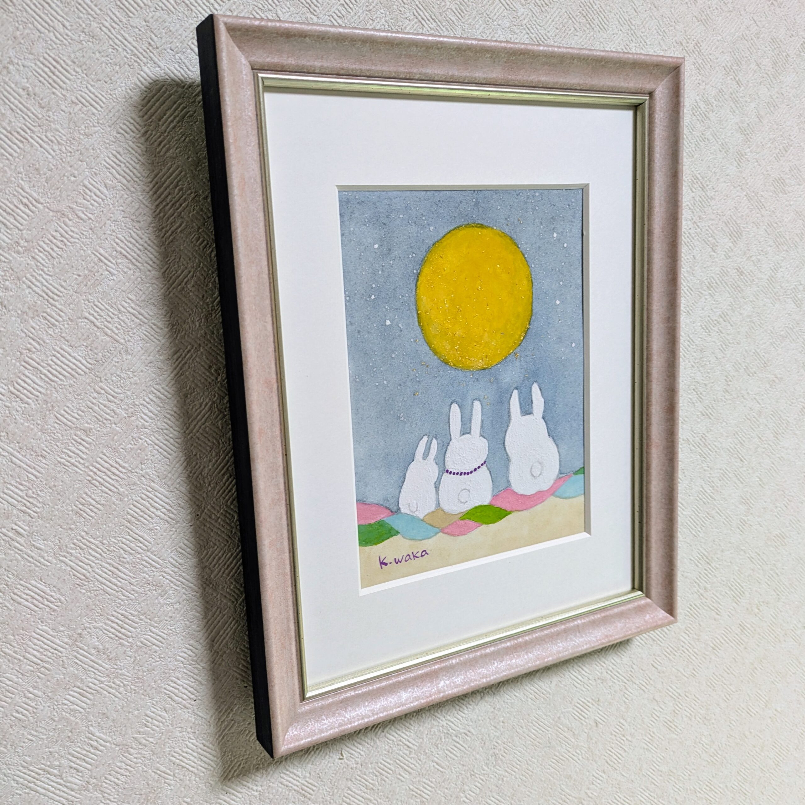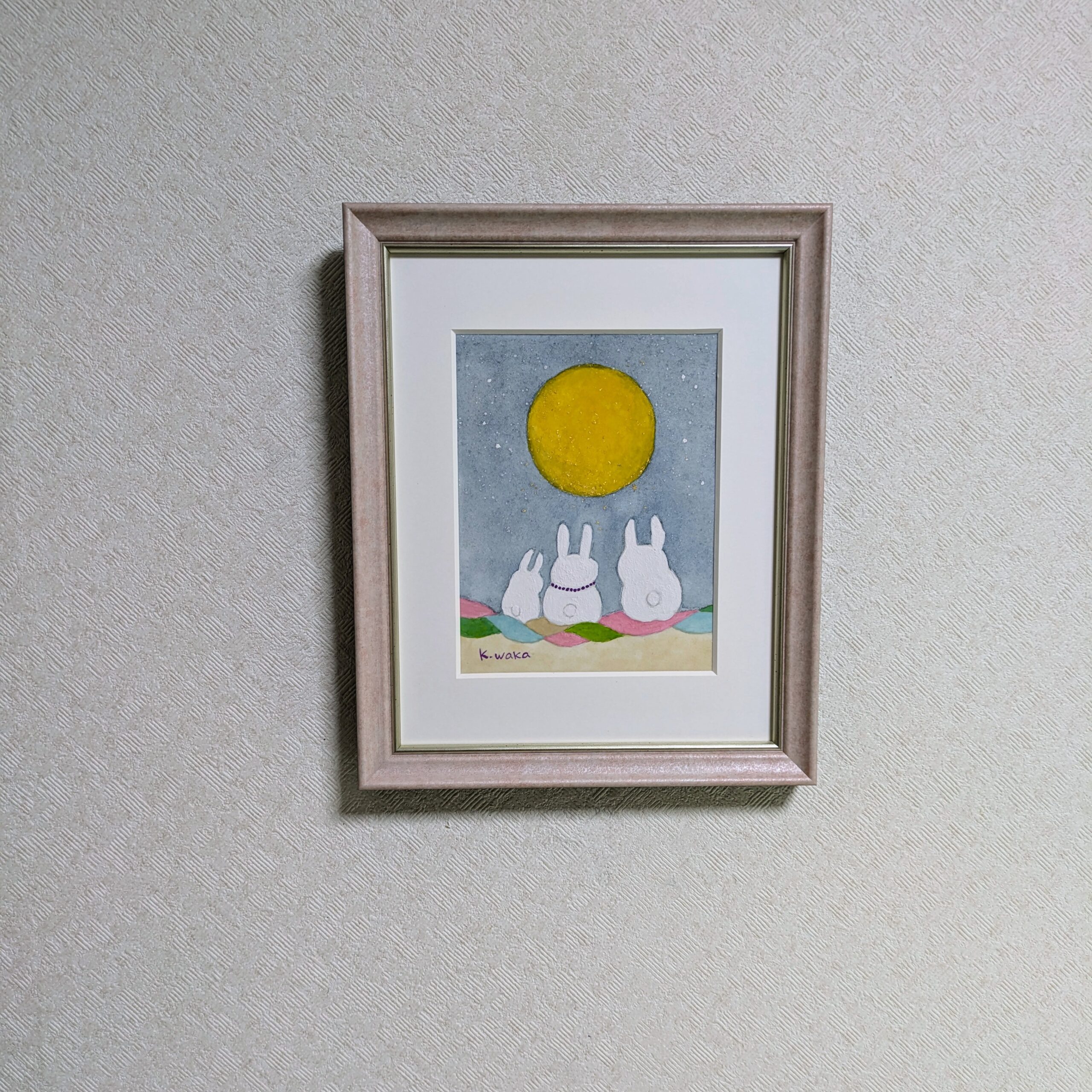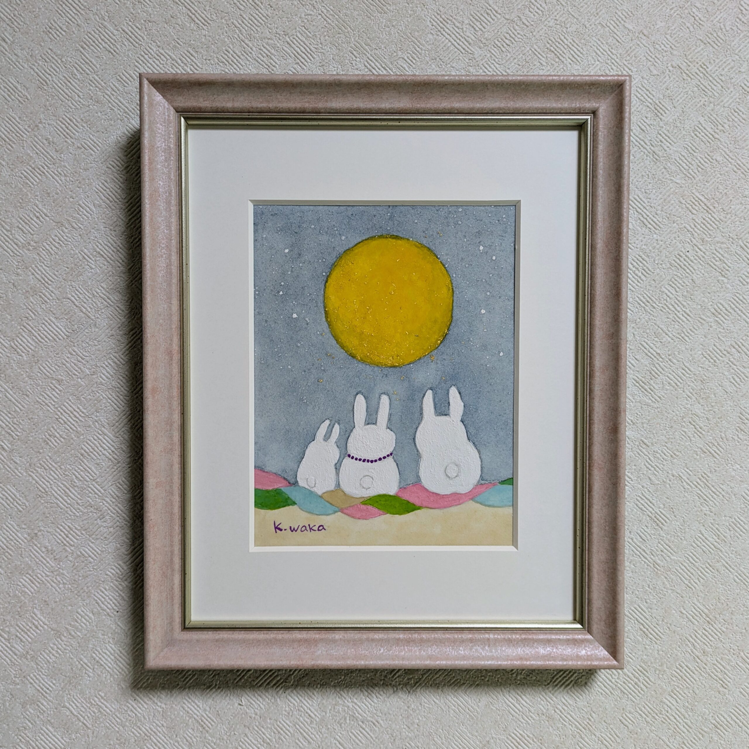 月を見上げるうさぎさんの会話を想像して描きました。まだまだ地球に居たいと思ってもらえるような世界でありますように♡