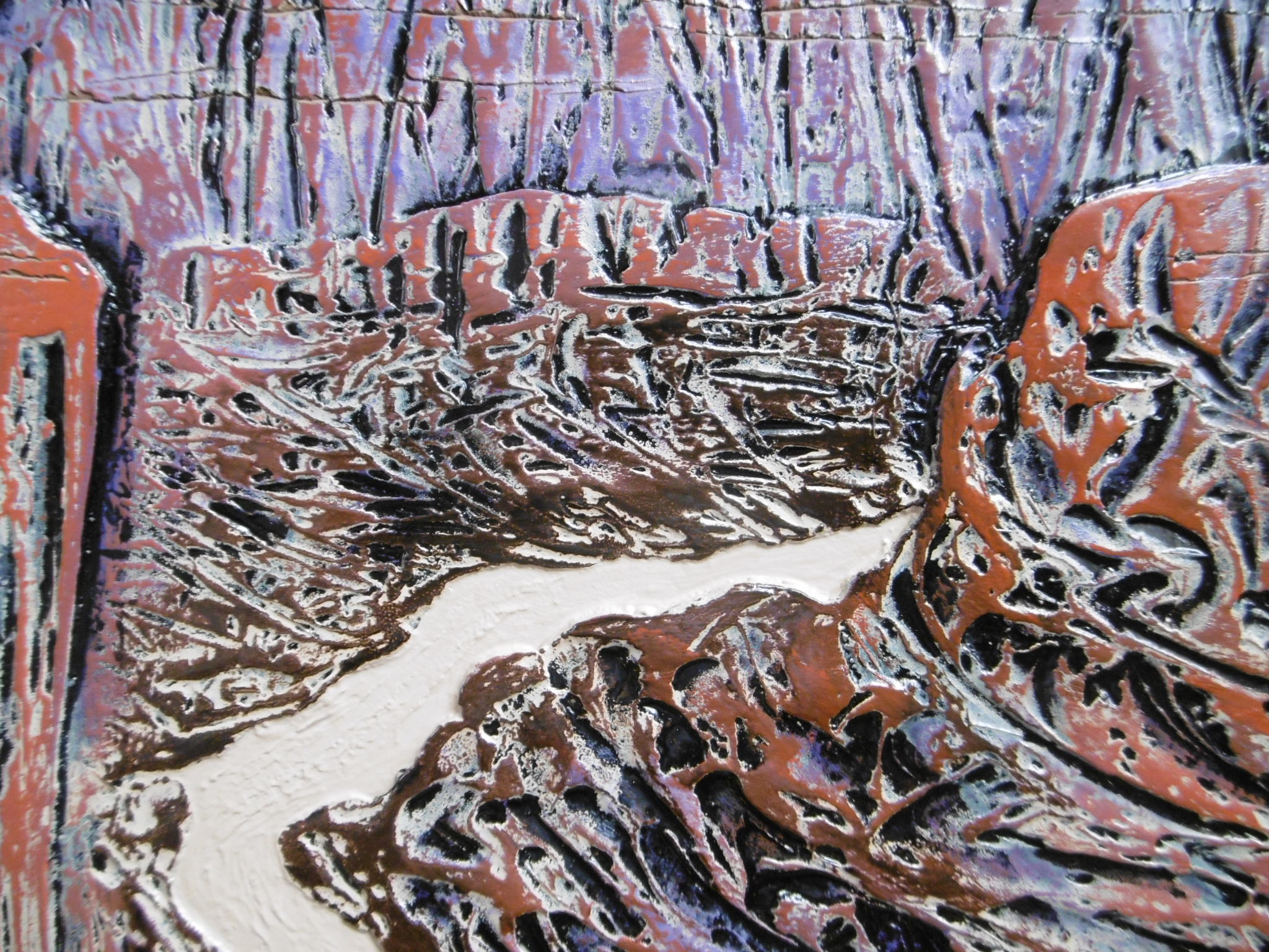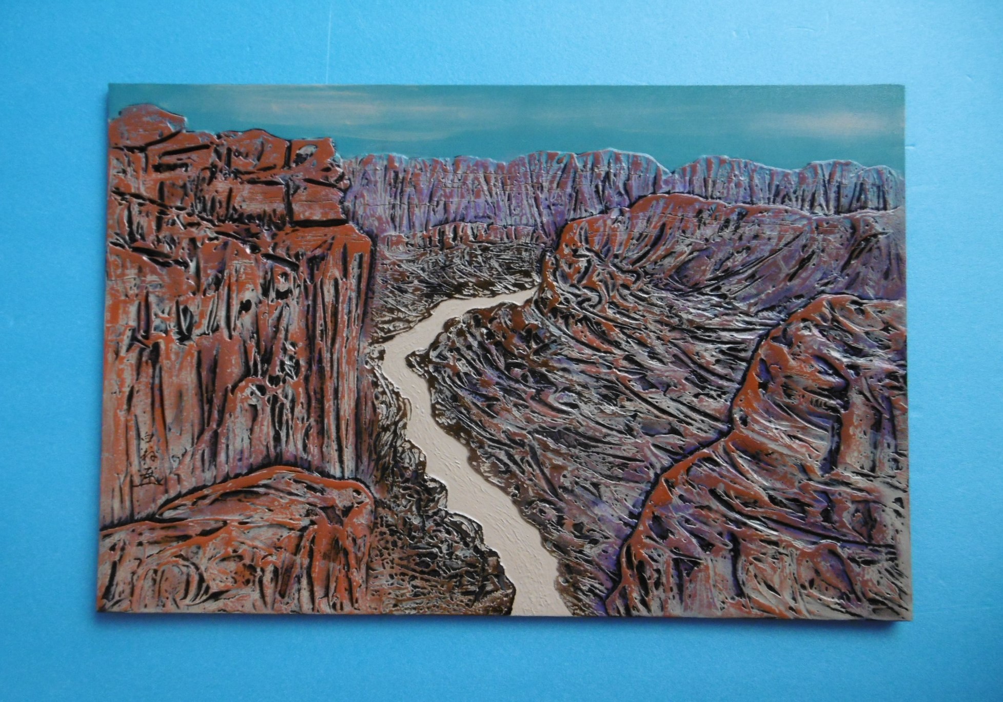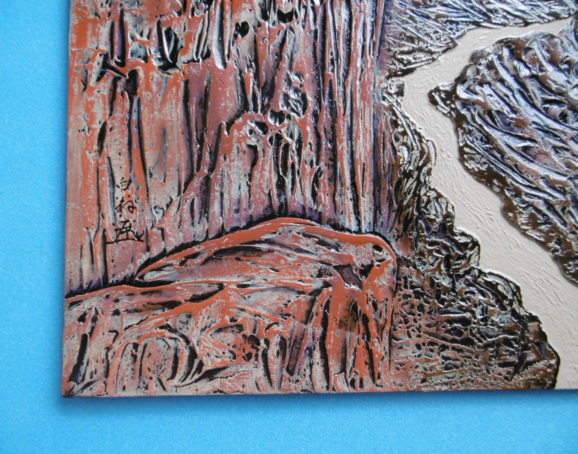 日本画 漆画 「グランドキャニオン(コロラド川)」 1983 白翁作
