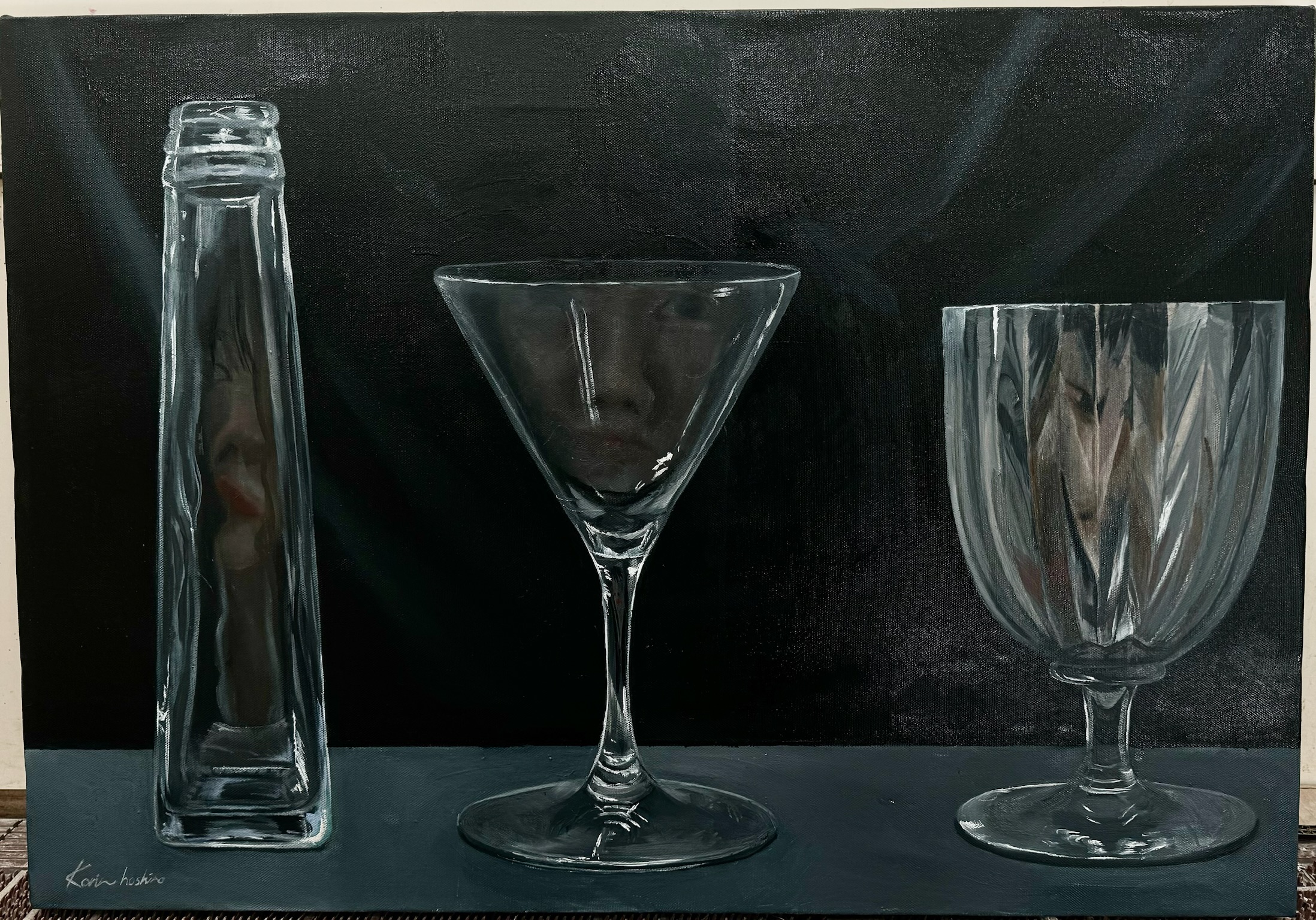 先入観や固定観念を題材にグラスを固定観念のレンズに見立てて、グラスの形によって変わるさまざまな私を描いた作品です。