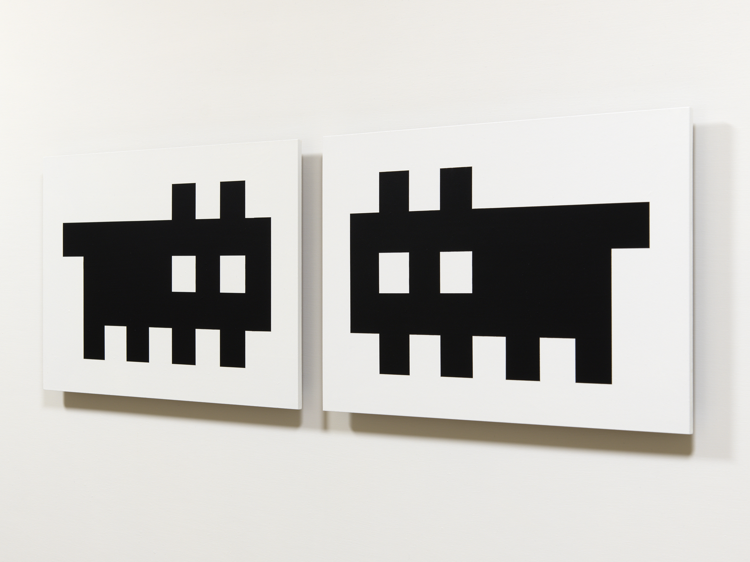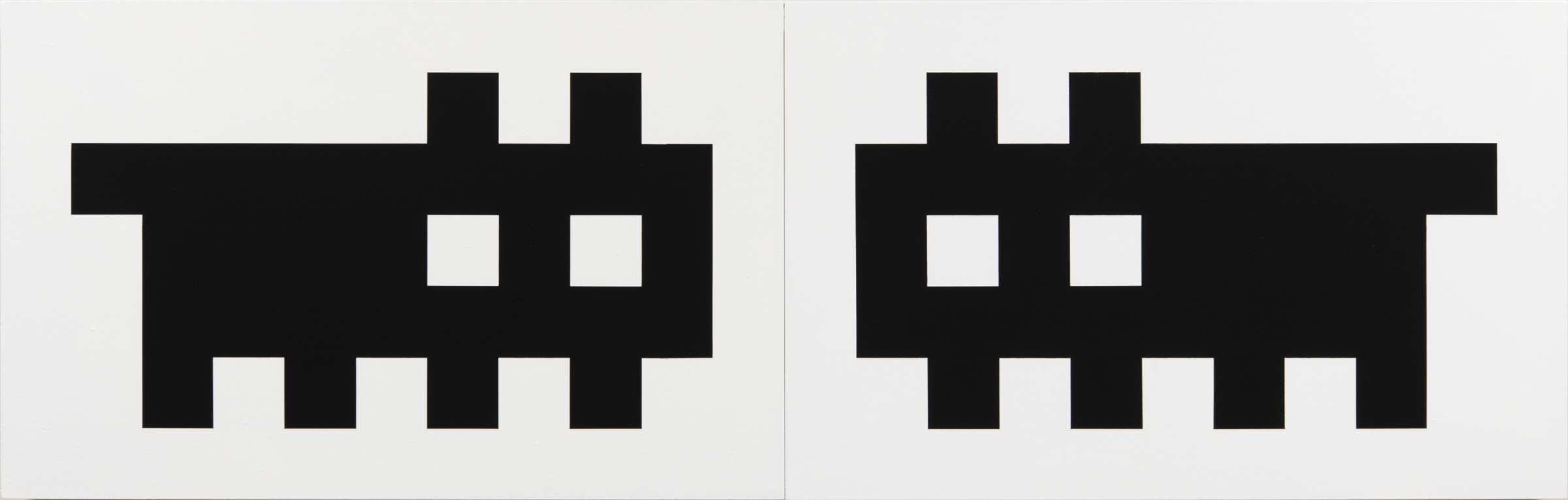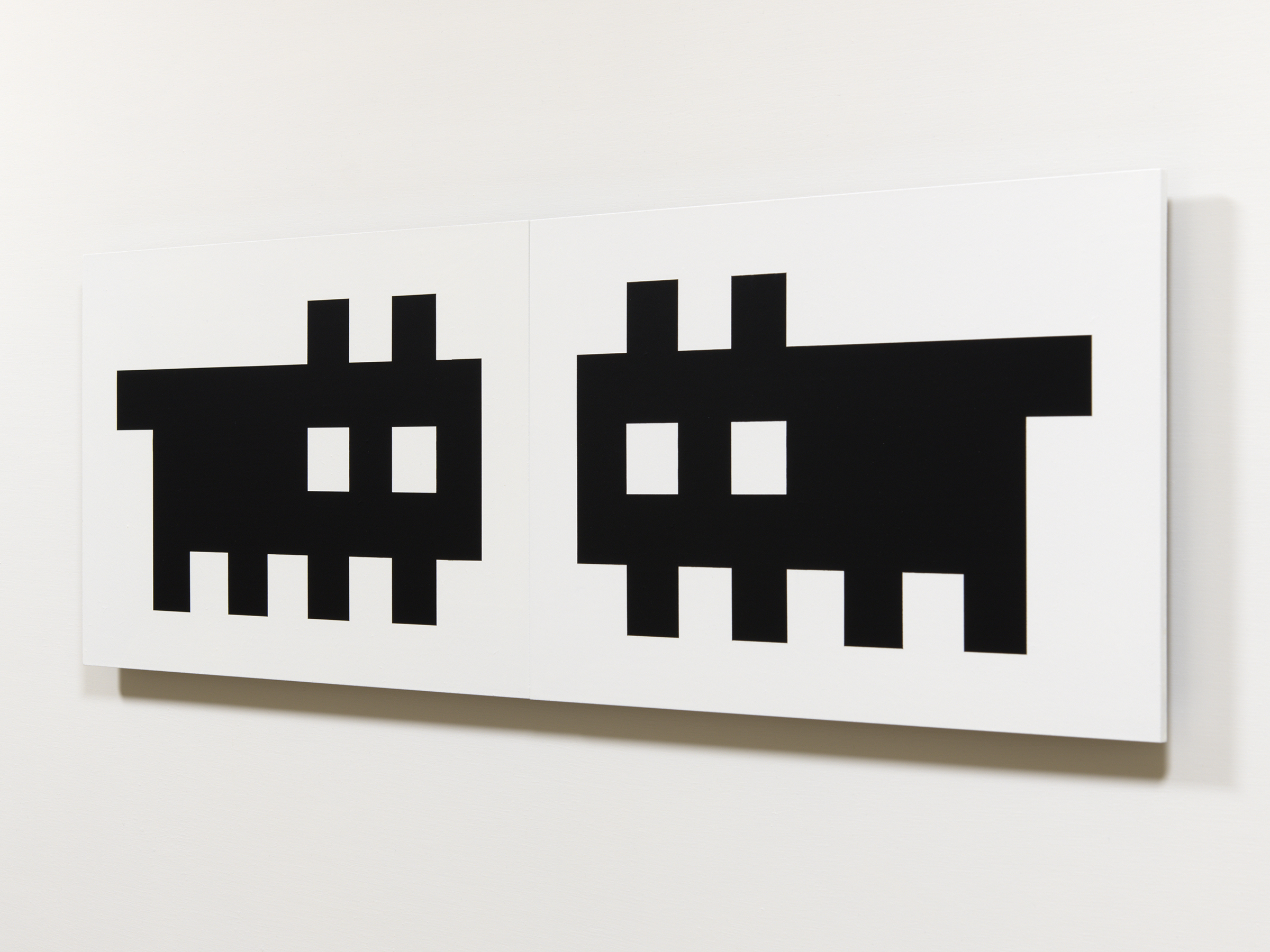 MDF(30 x 47.1 cm が2枚, 分離可能)にアクリル絵具。裏側に展示用の角材が接着されています。