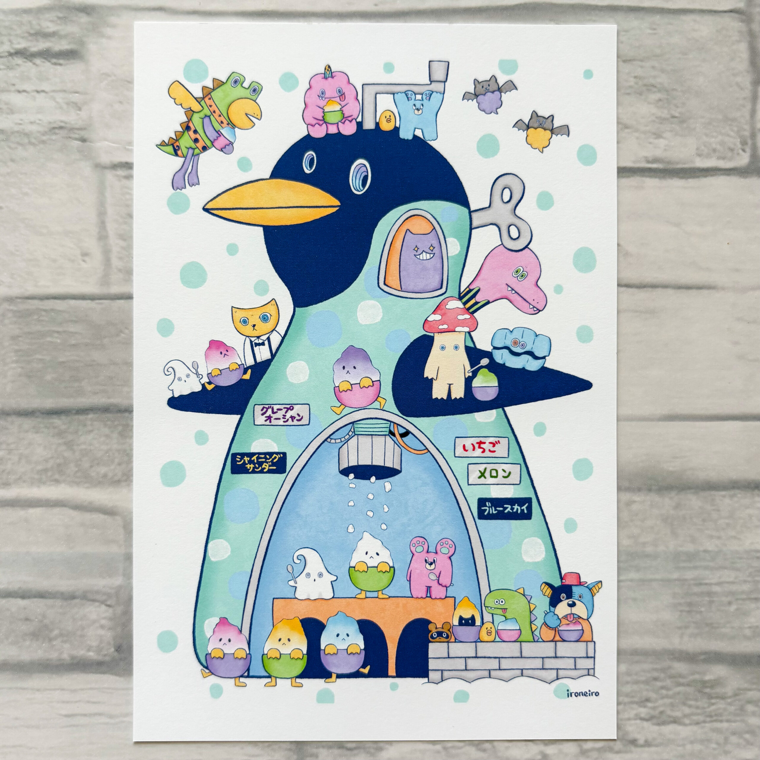 A4サイズのイラストをご購入いただいた方には、ポストカードサイズの同じイラストをお付けしております。