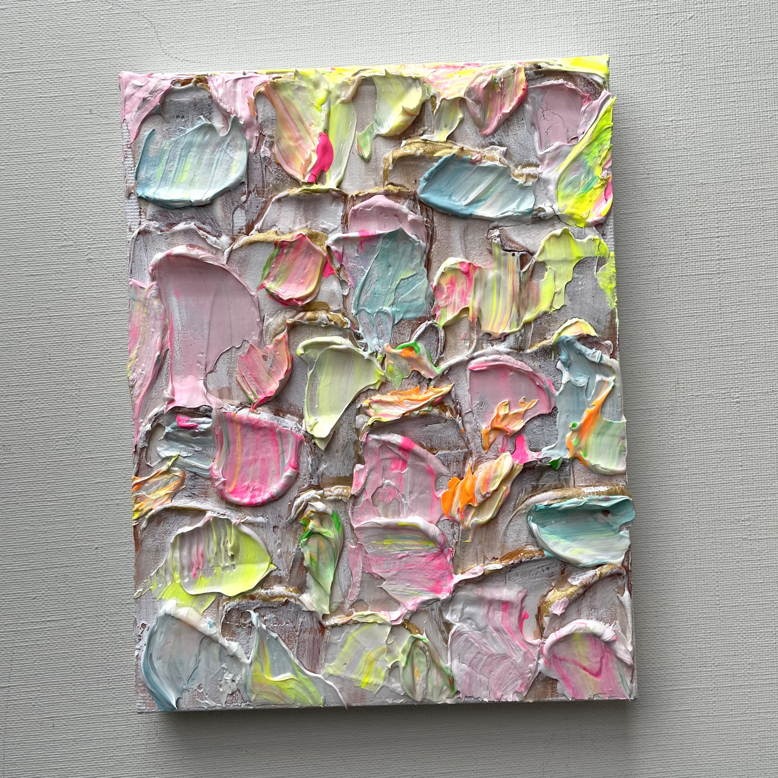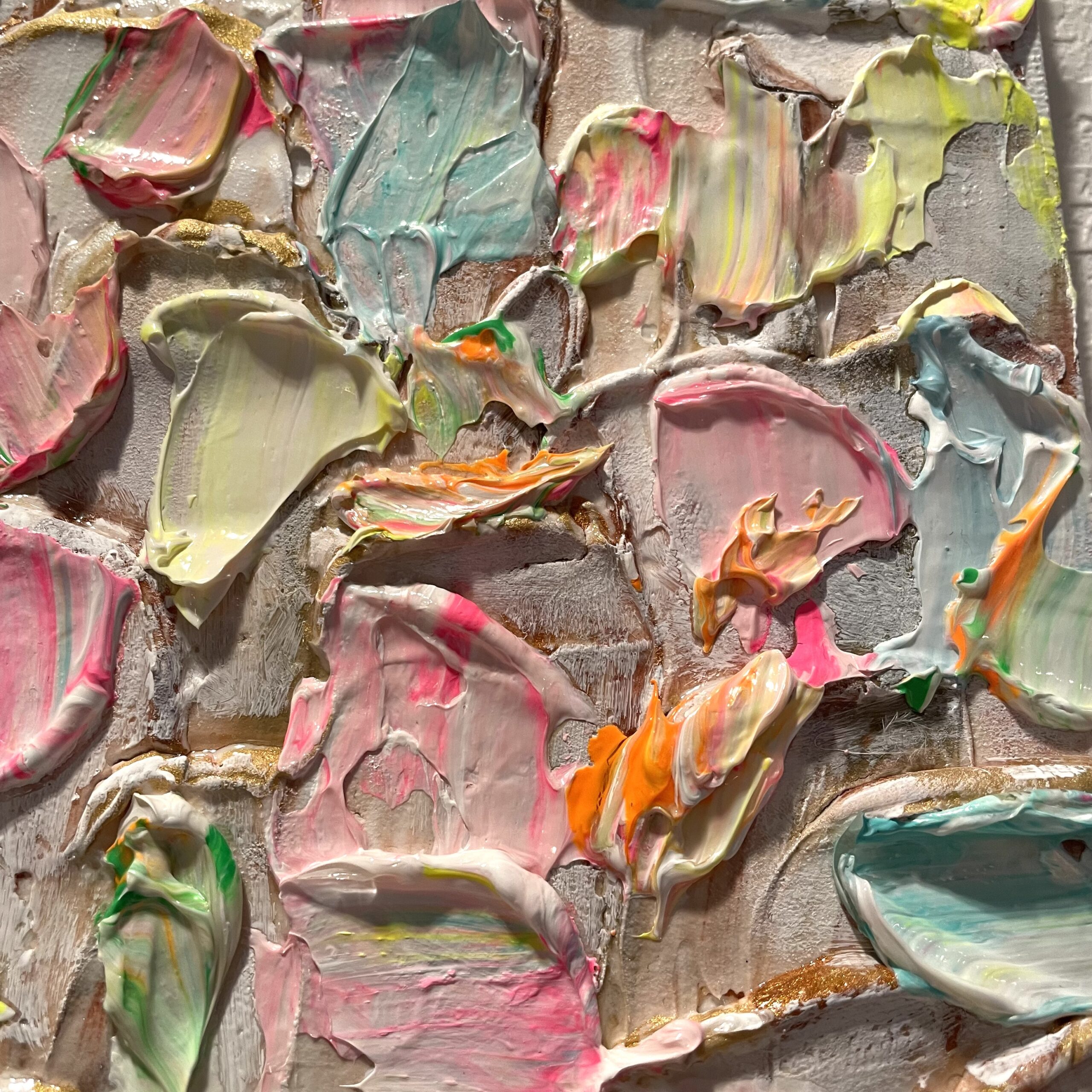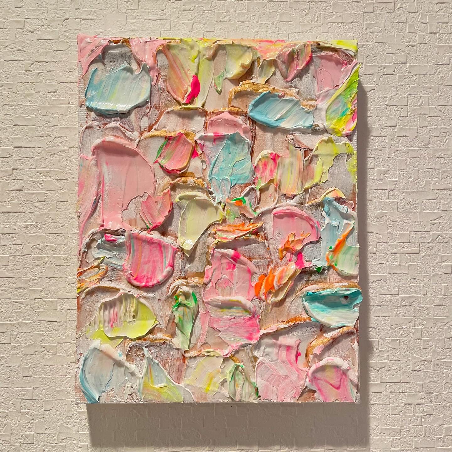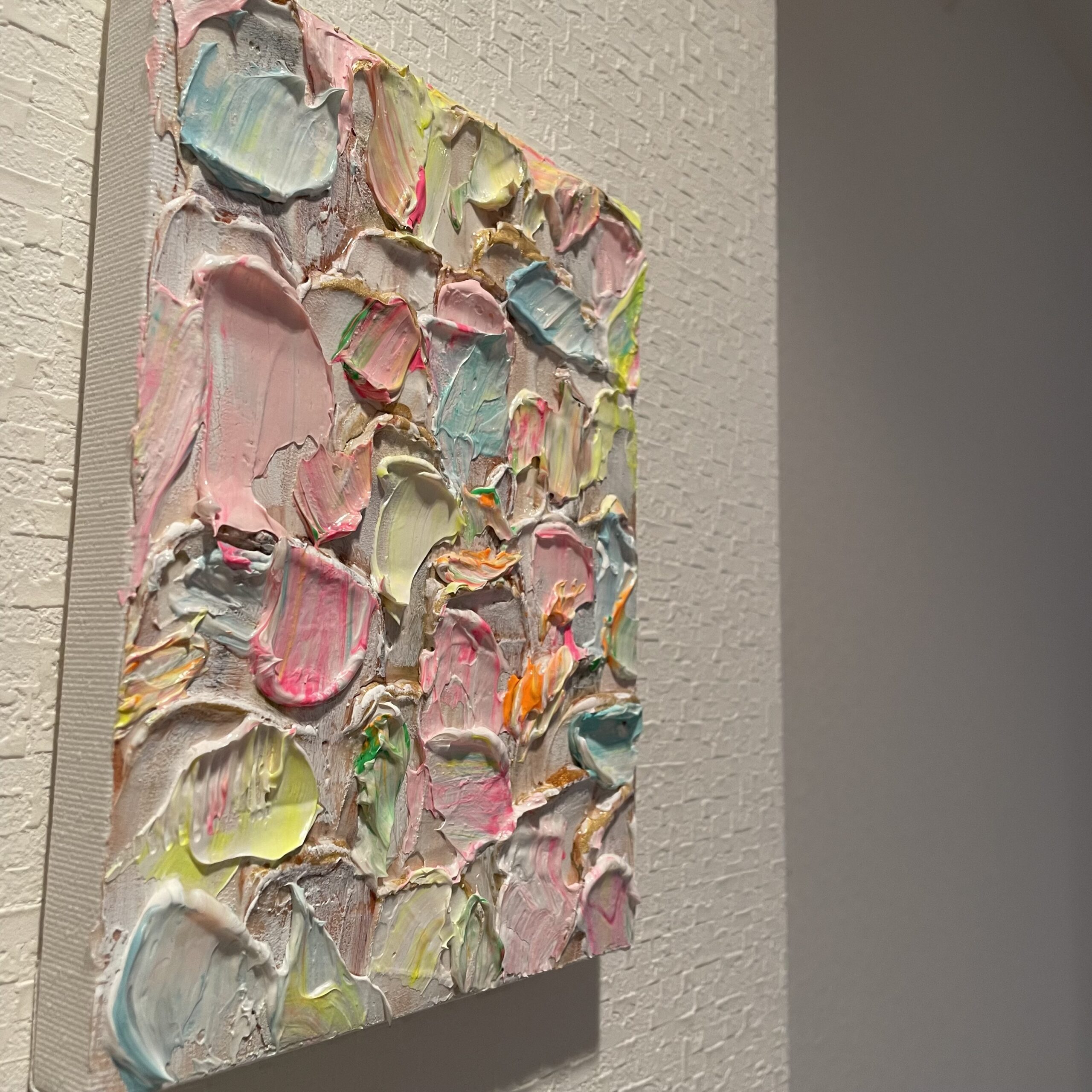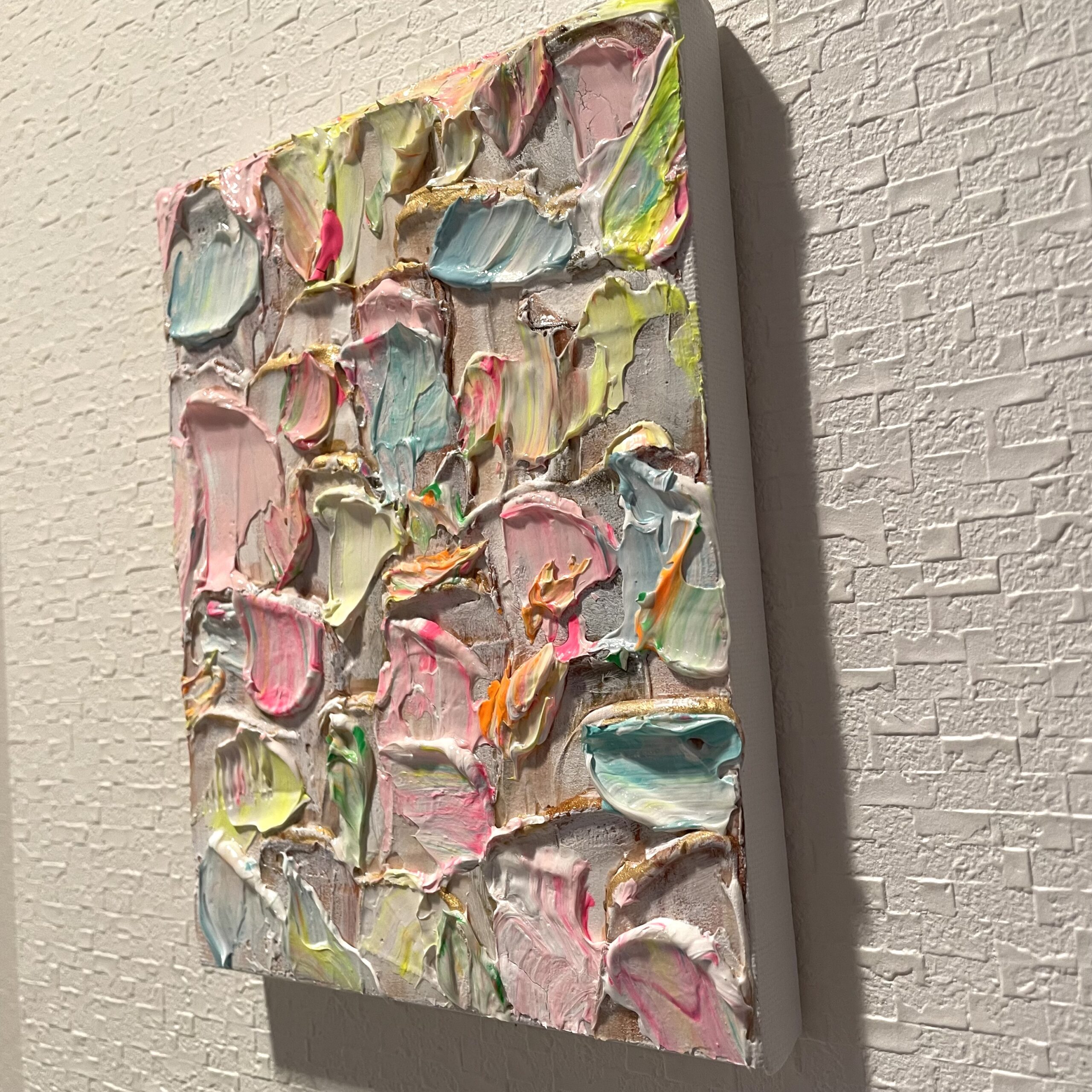 優しい色とゴールドが混じって上品なイメージな作品です。