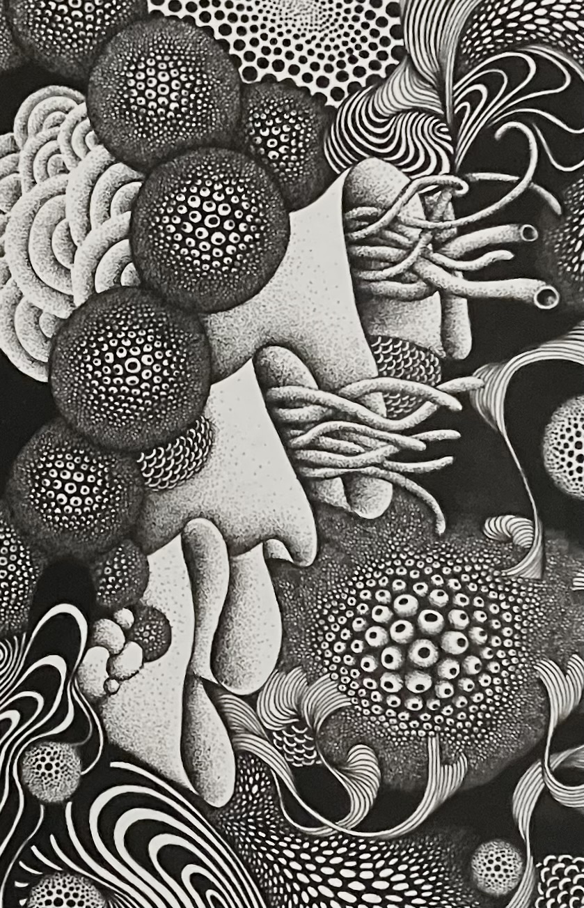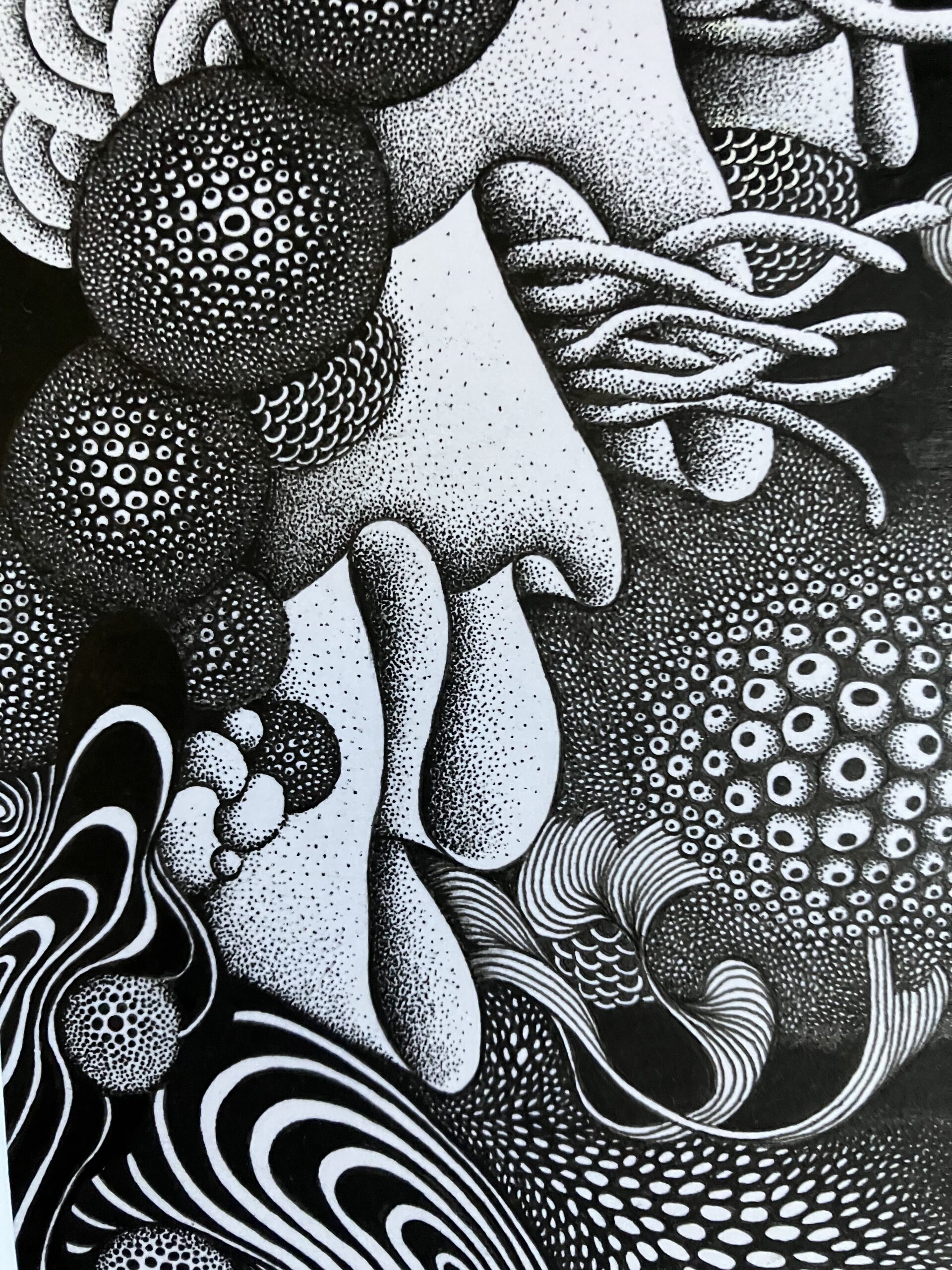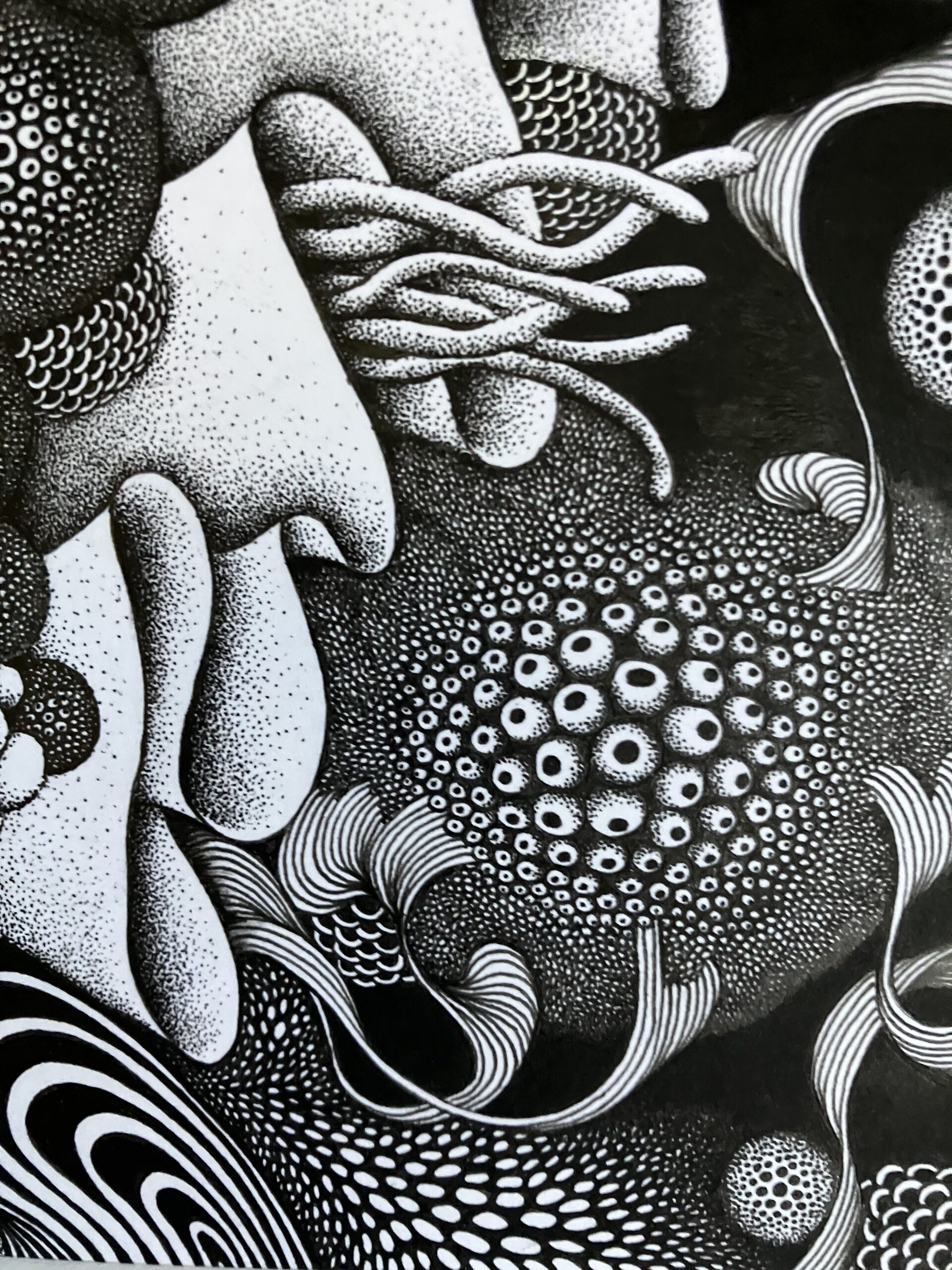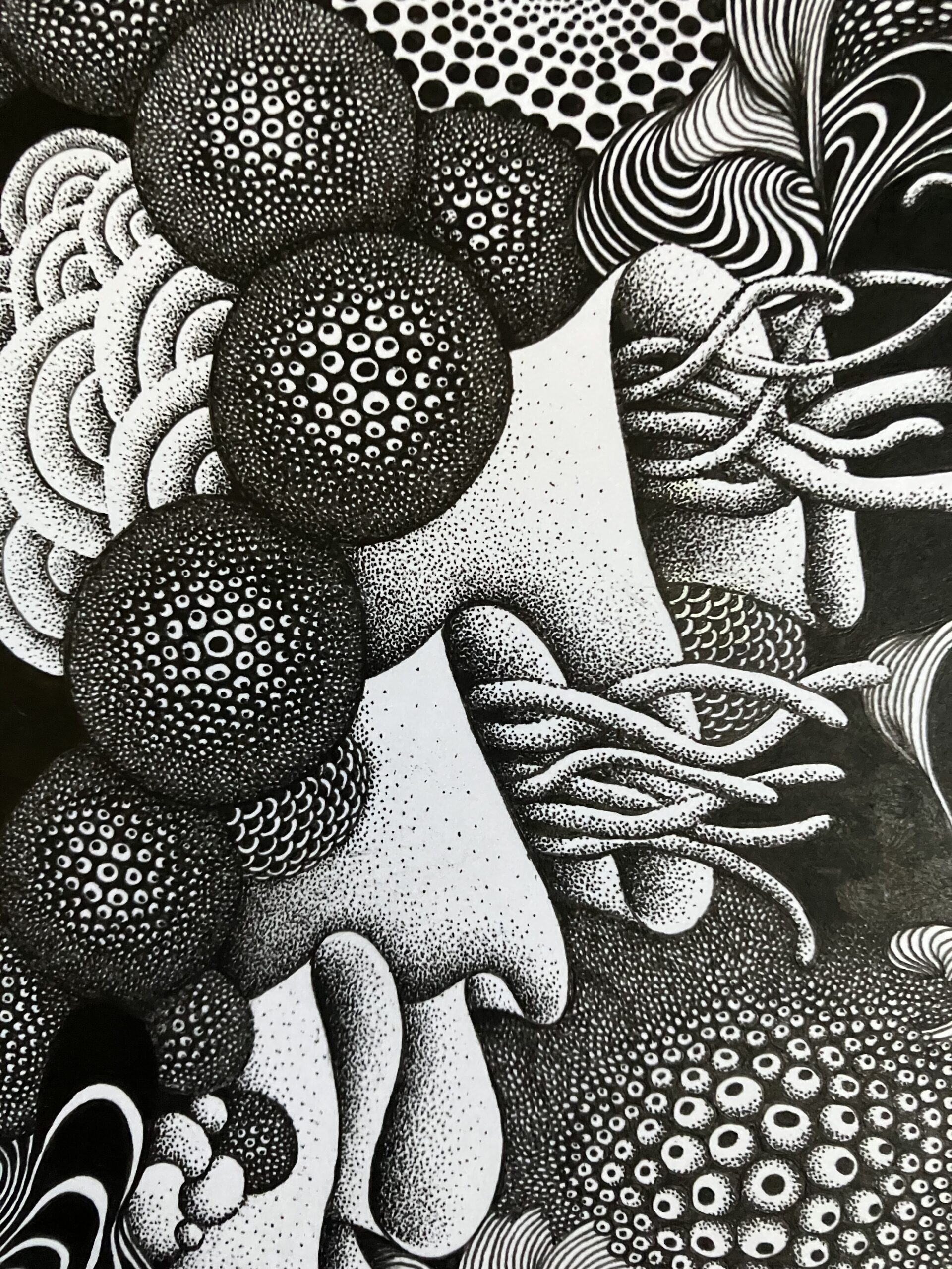 完成が想像できないワクワク感、緊張と期待が入り混ざった感覚の中ペンを走らせてたのしんでいる。