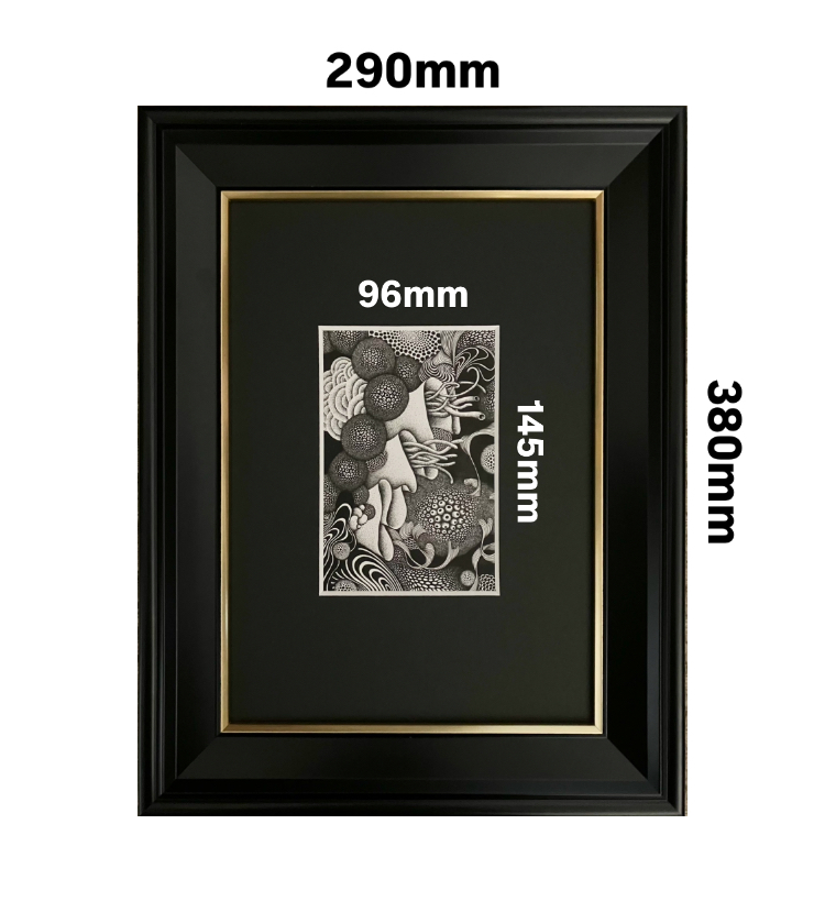 自然や生き物へのリスペクト、環境への配慮の観点から一部古いフレームを使用しており、かぶせ箱や差し箱のない作品もございます。ご了承ください。