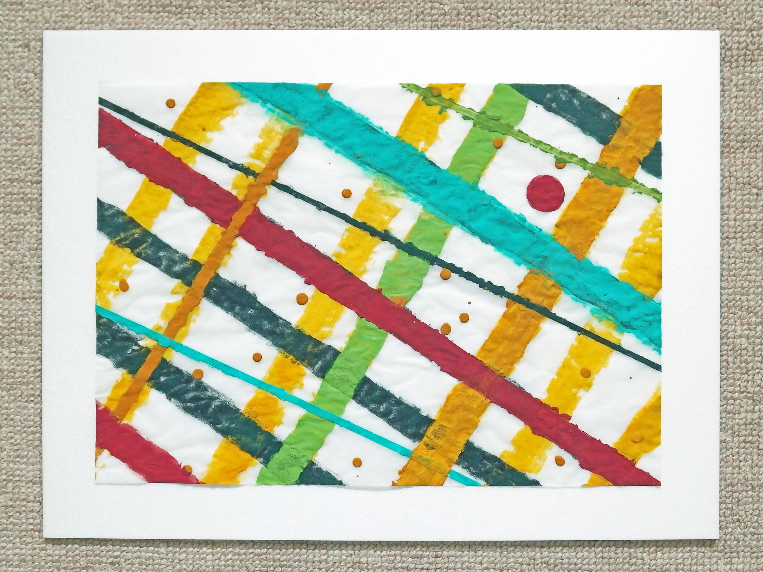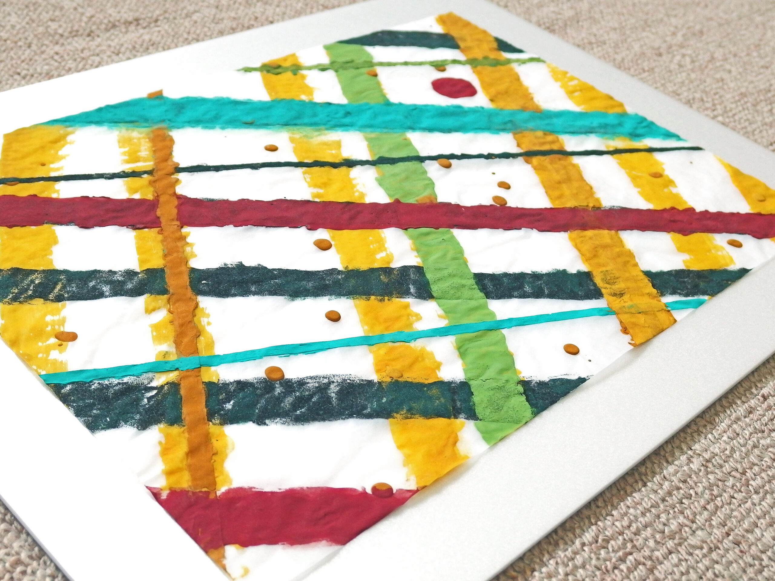 スチレンペーパーという光沢のある真っ白な素材に、岩絵の具自体の美しさが際立ちます。この組み合わせを発見し、気に入って使い続けています。