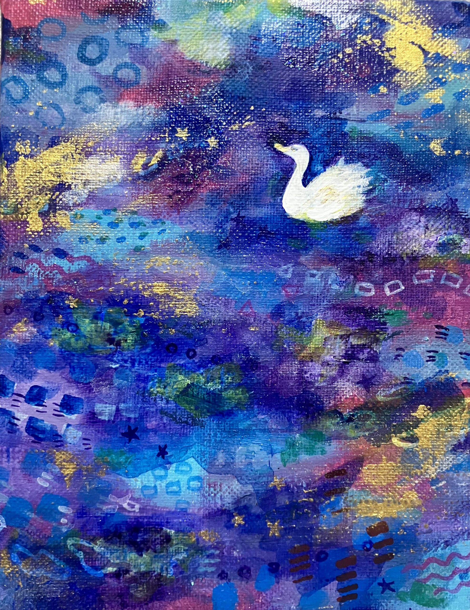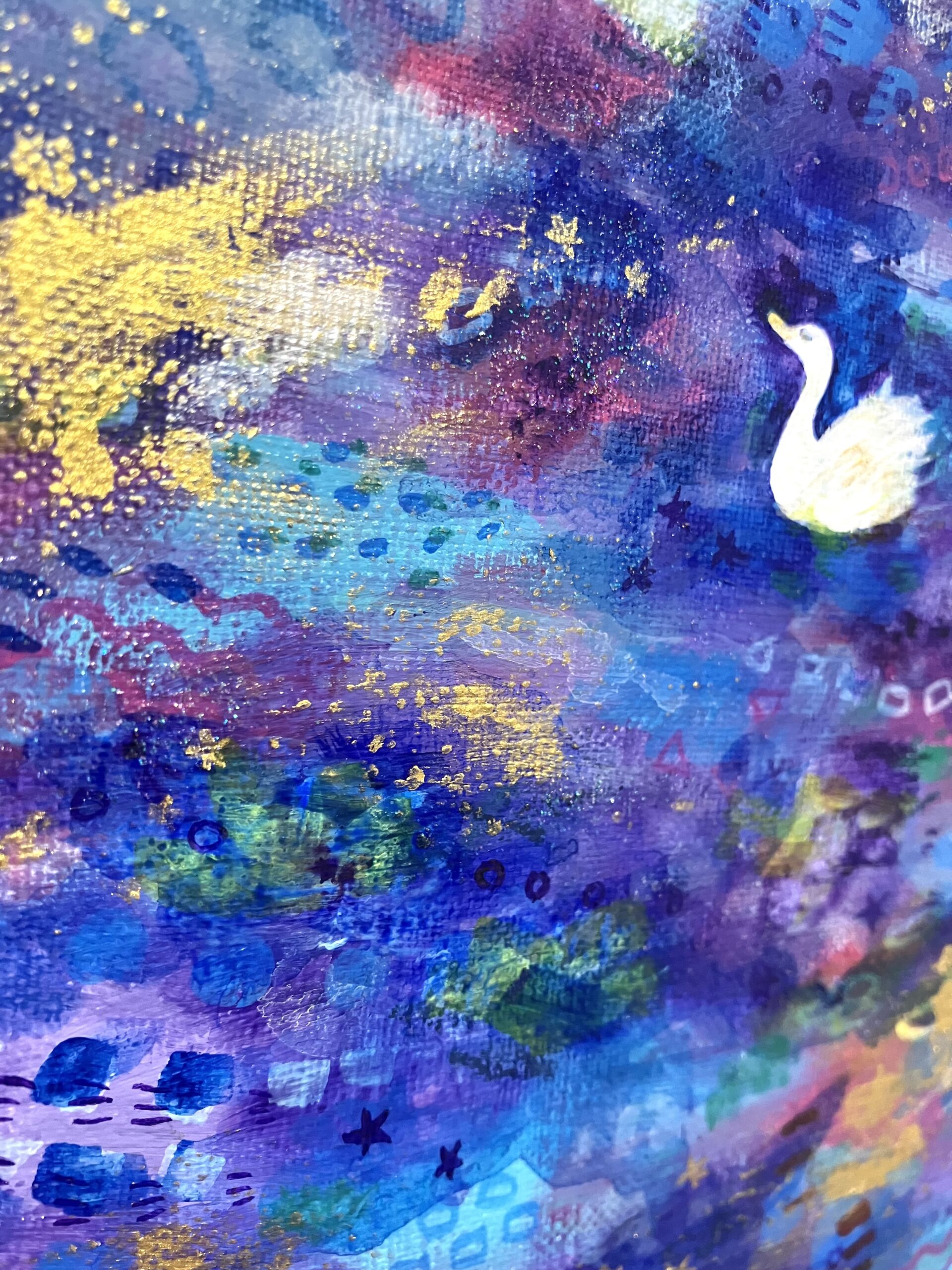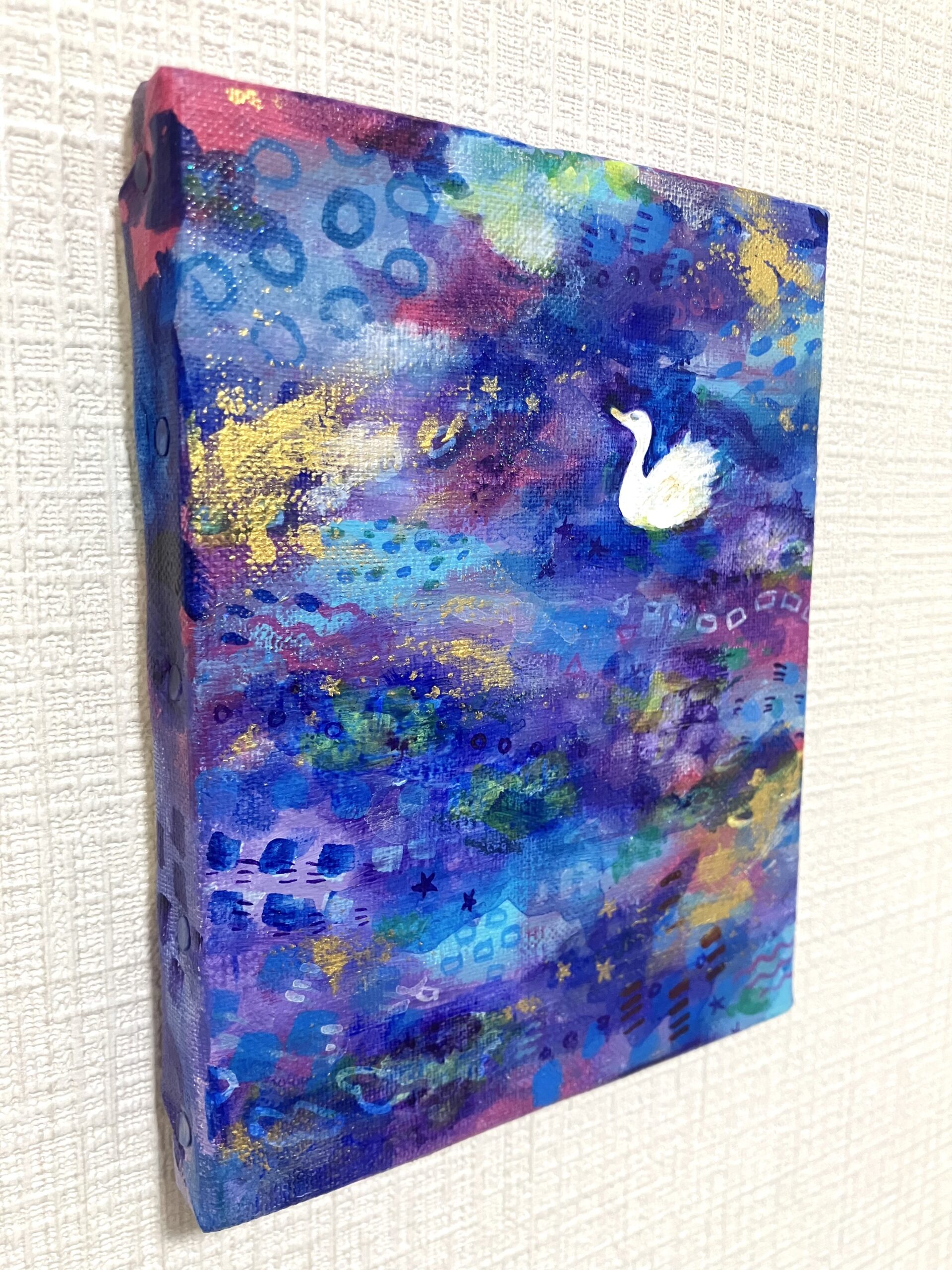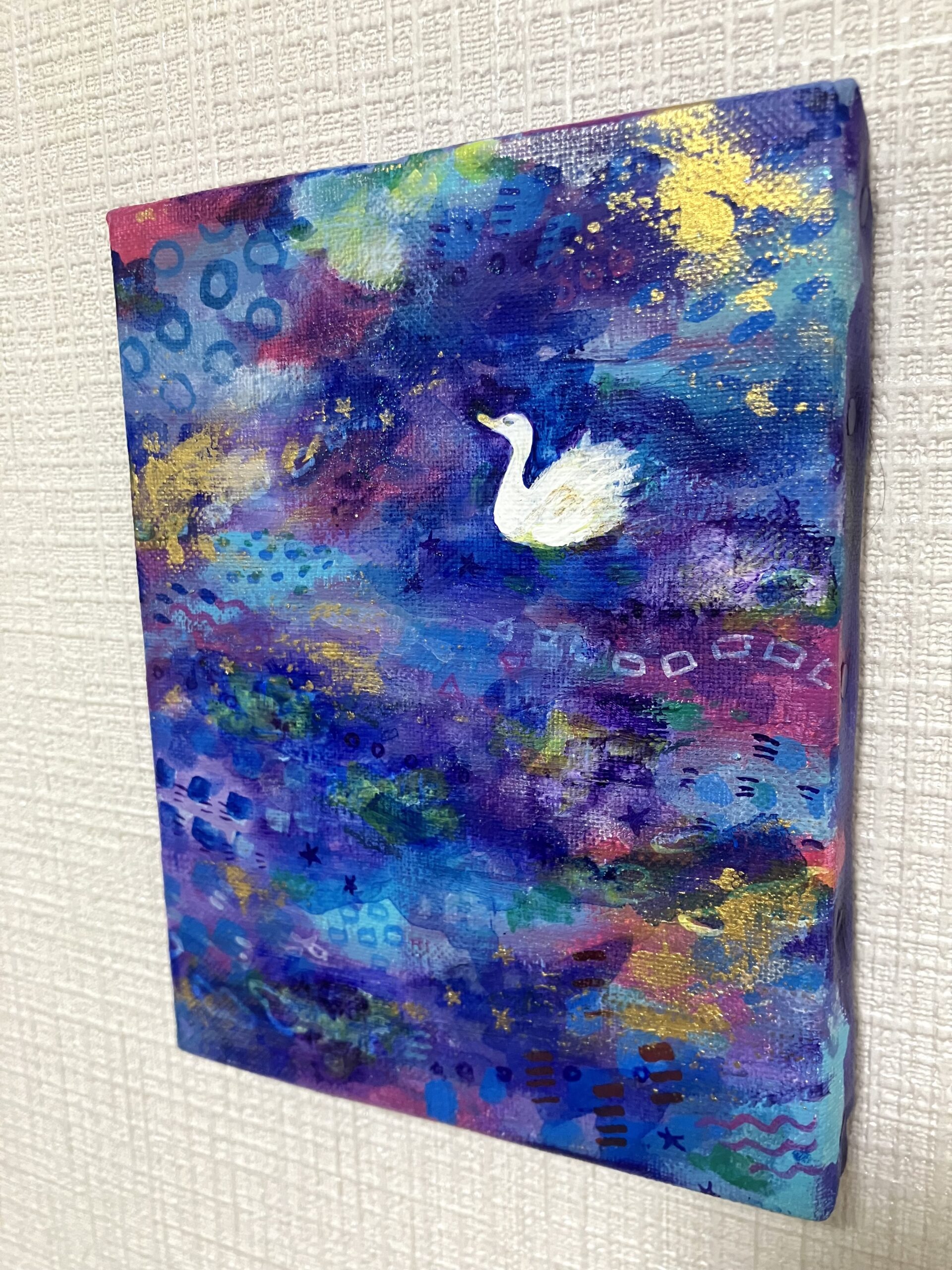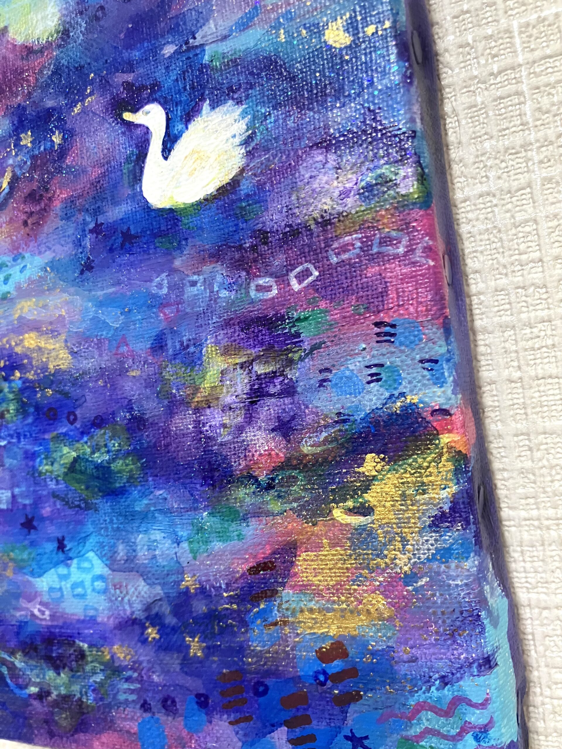 ラメ絵の具を重ねており角度によってキラキラと光る部分もあります。