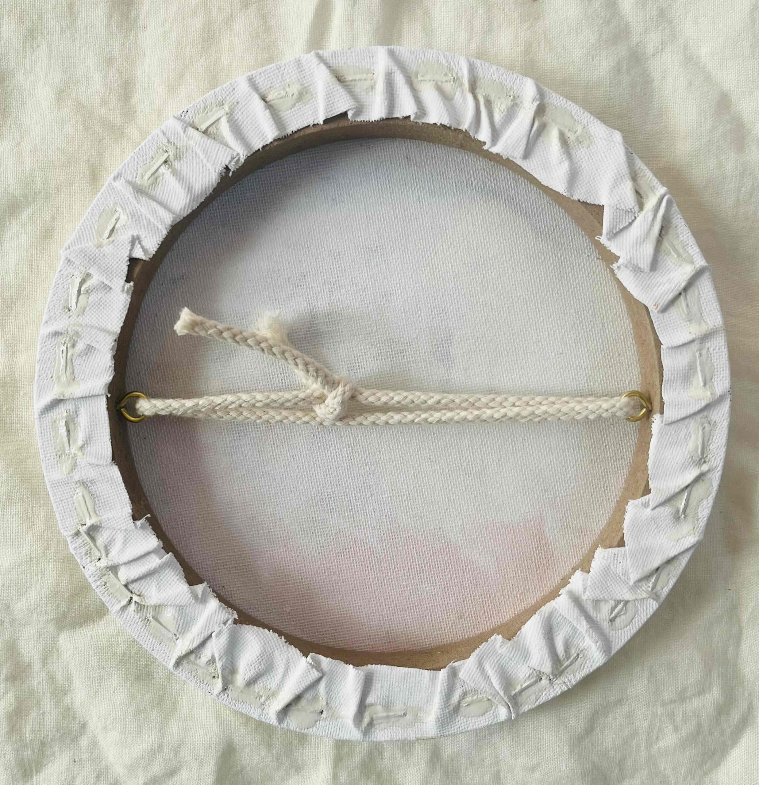 絵画の裏面には紐が取り付けてありますので、そのままでも飾れます。
