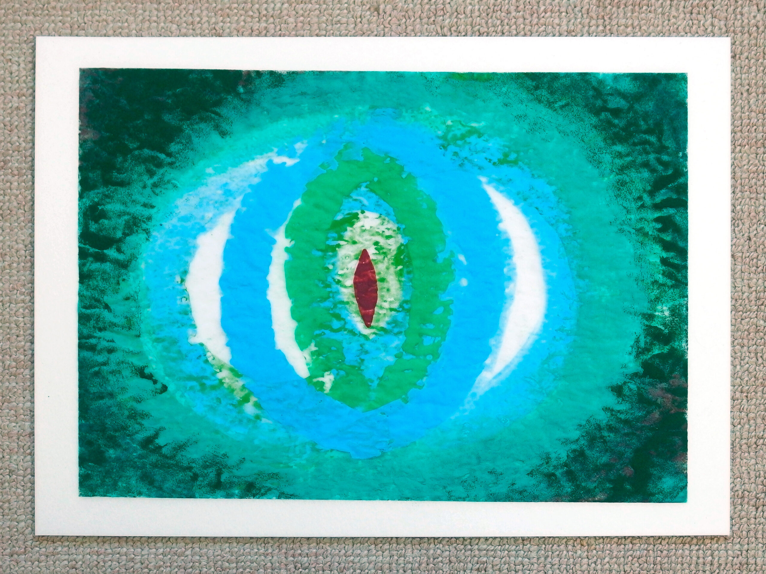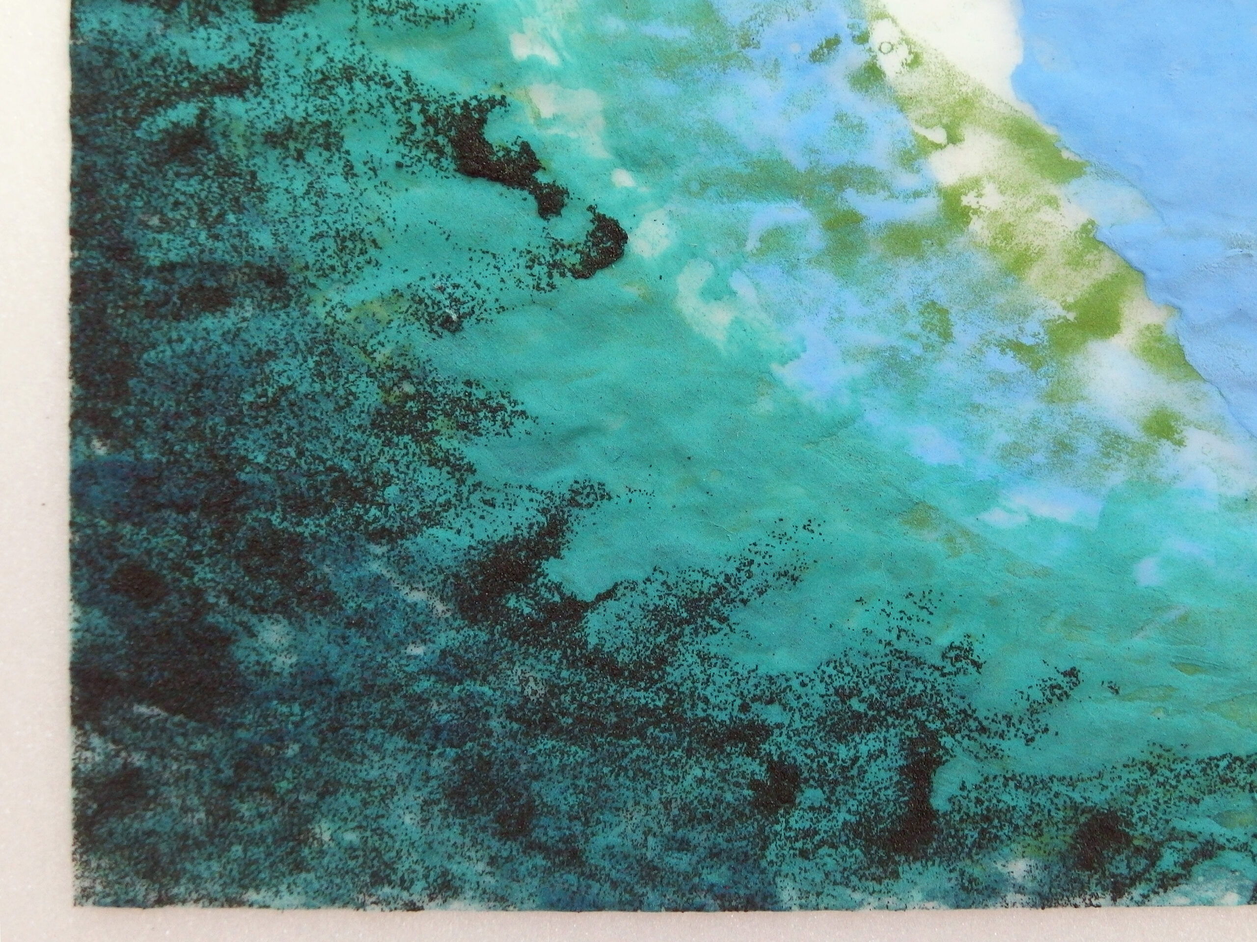 スチレンペーパーという光沢のある真っ白な素材に、岩絵の具自体の美しさが際立ちます。この組み合わせを発見し、気に入って使い続けています。