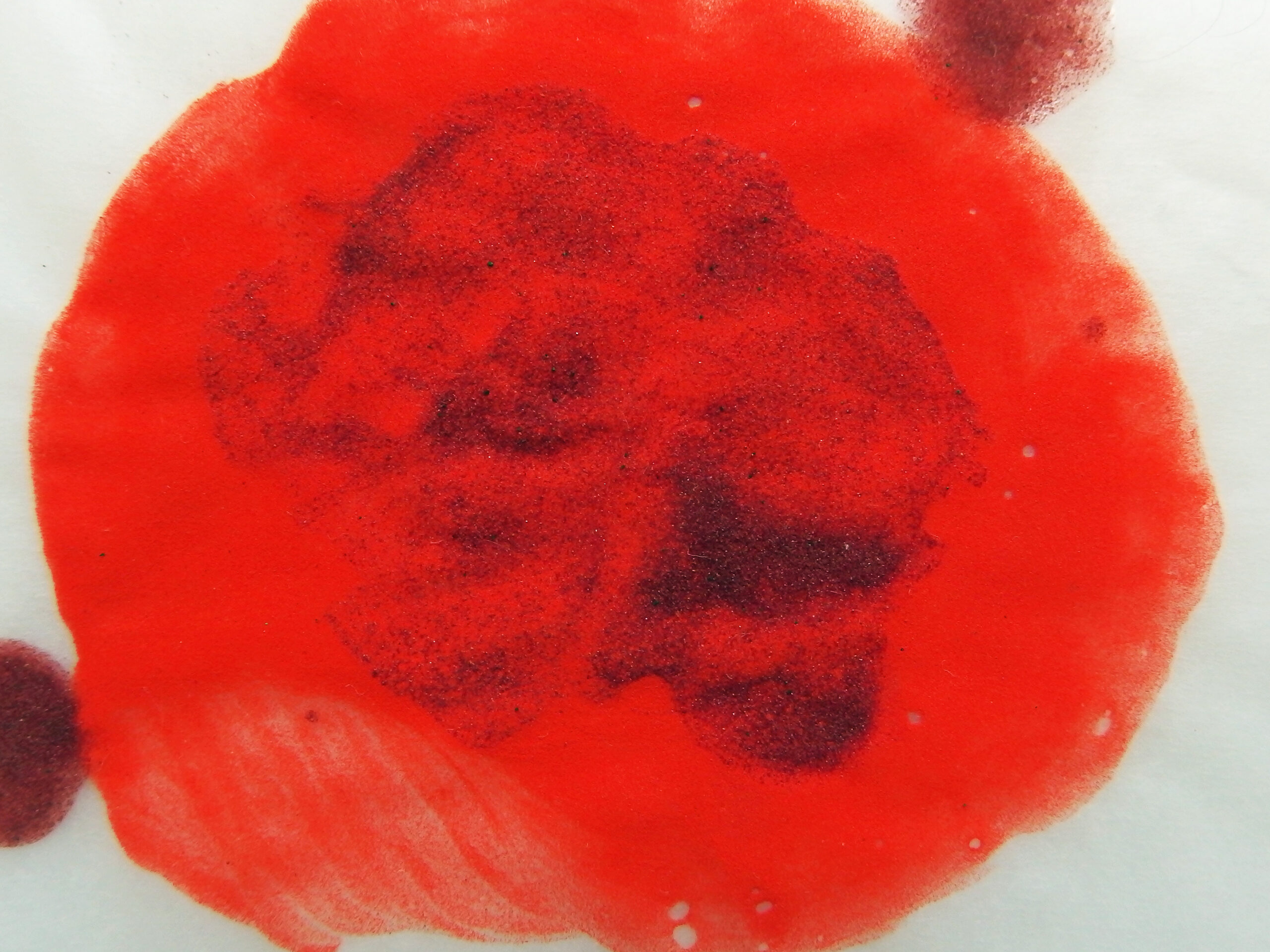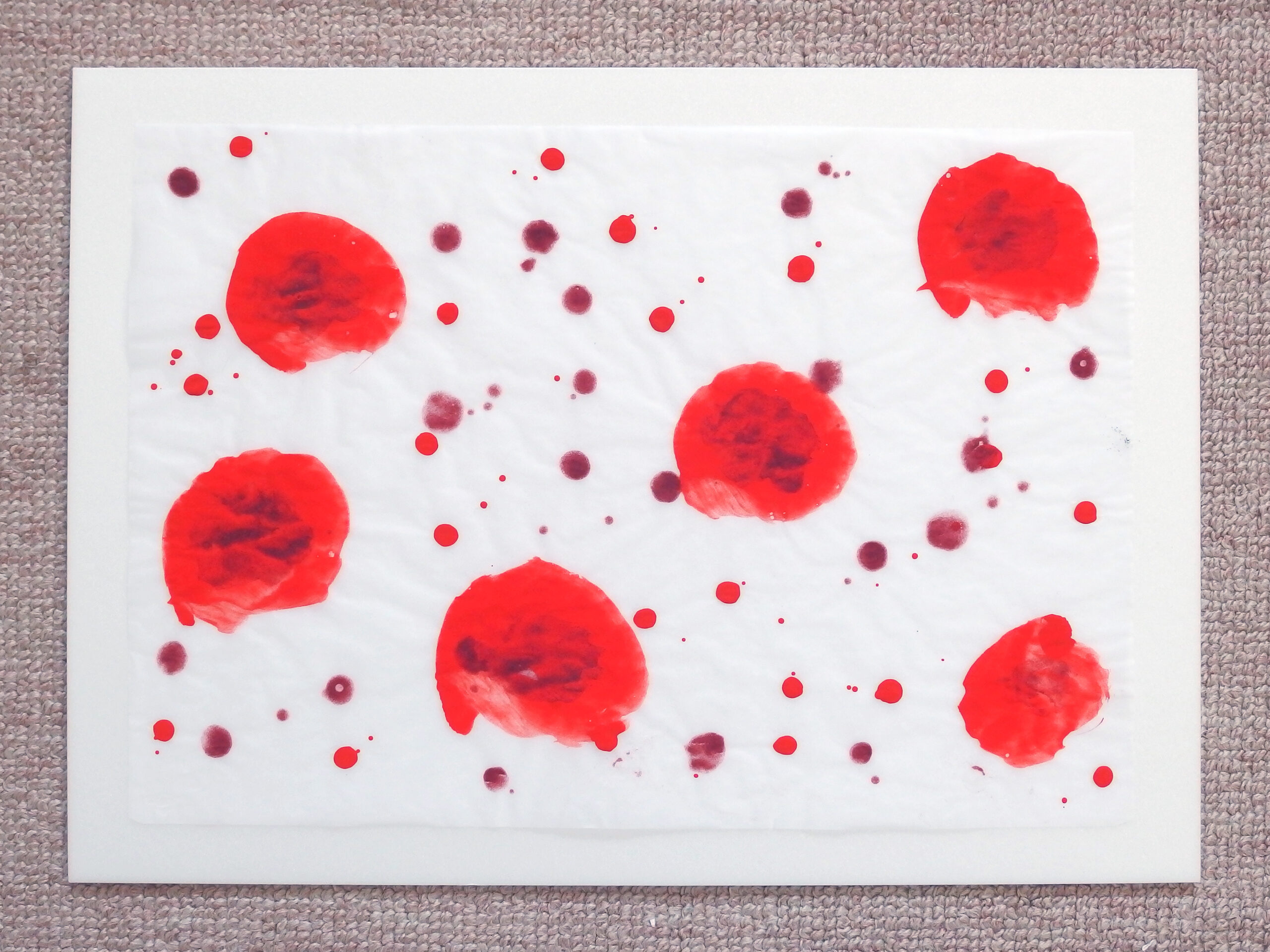 スチレンペーパーという光沢のある真っ白な素材に、岩絵の具自体の美しさが際立ちます。この組み合わせを発見し、気に入って使い続けています。