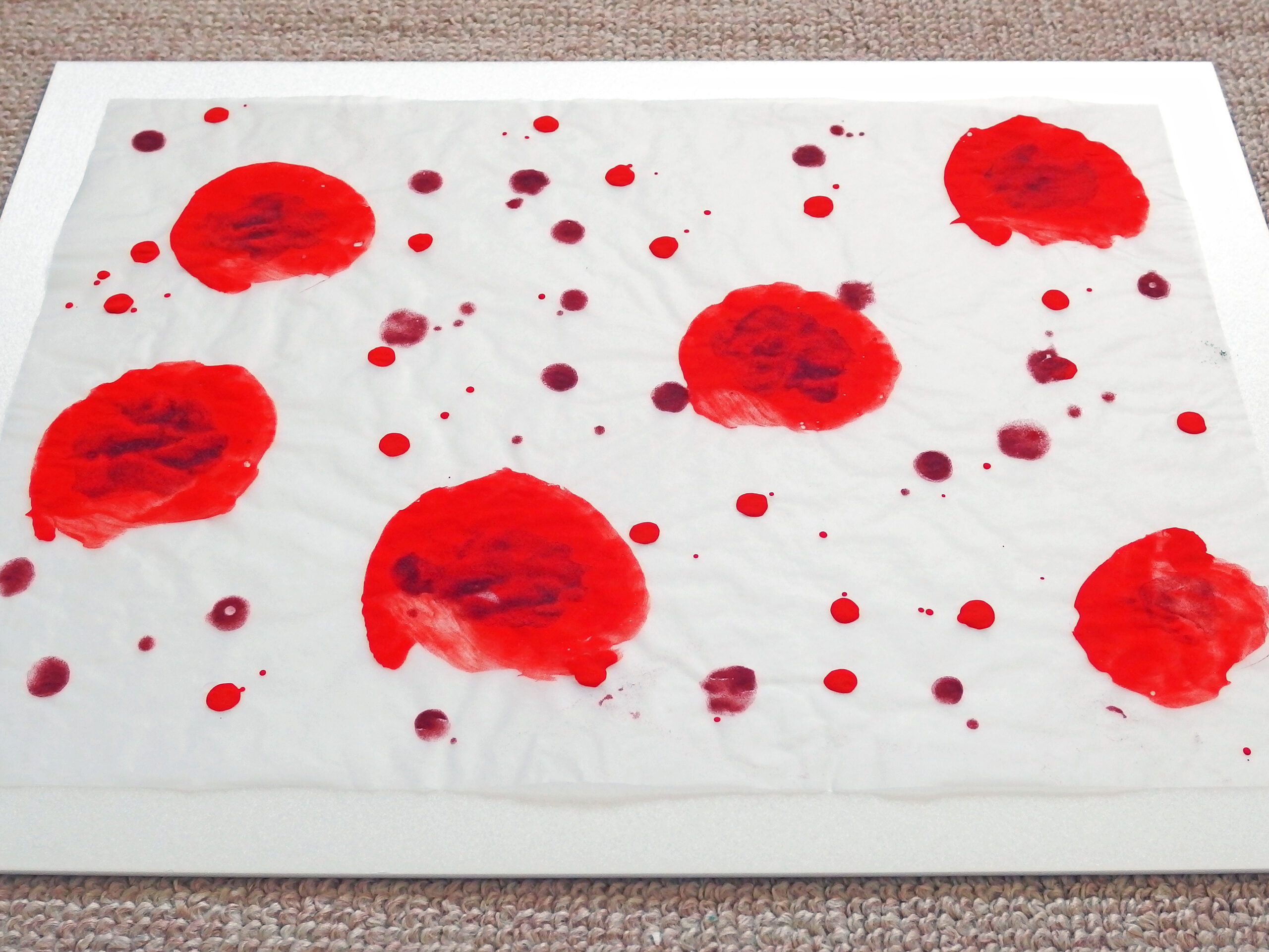 天然素材の和紙に膠を使うのが「日本画」の常識ですが、あえて人工素材を使っています。