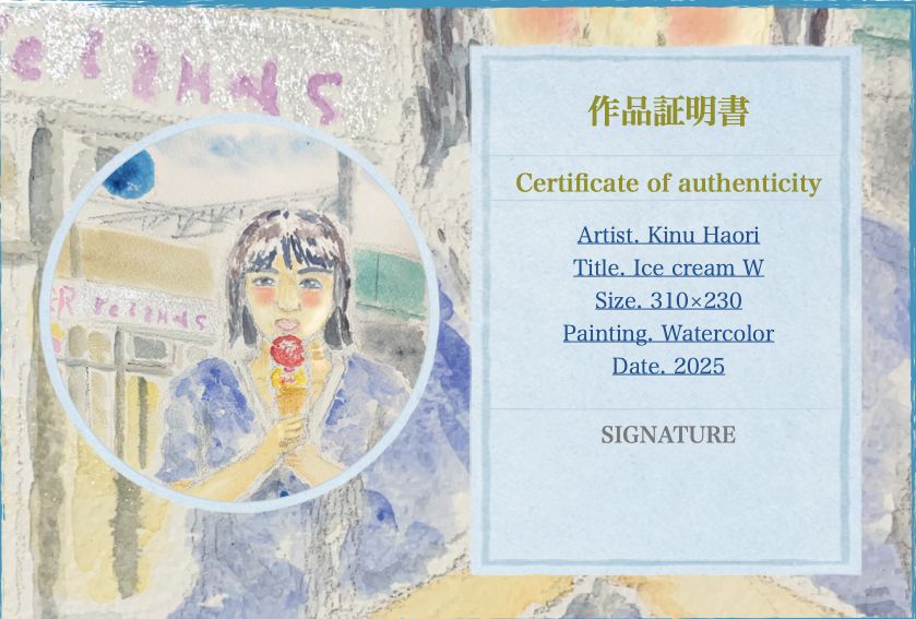 作品証明書には発送時にサインを入れさせて頂きます。