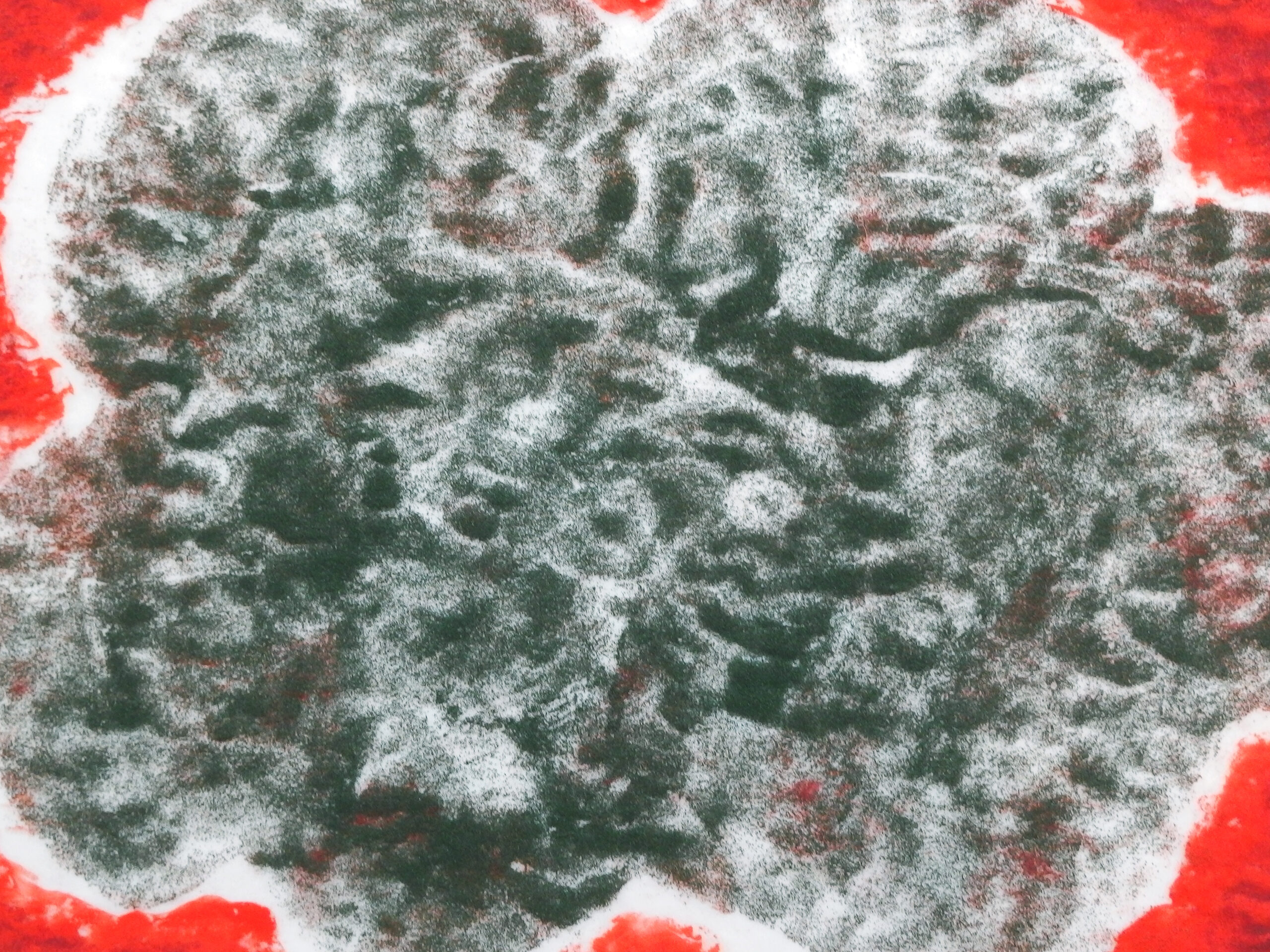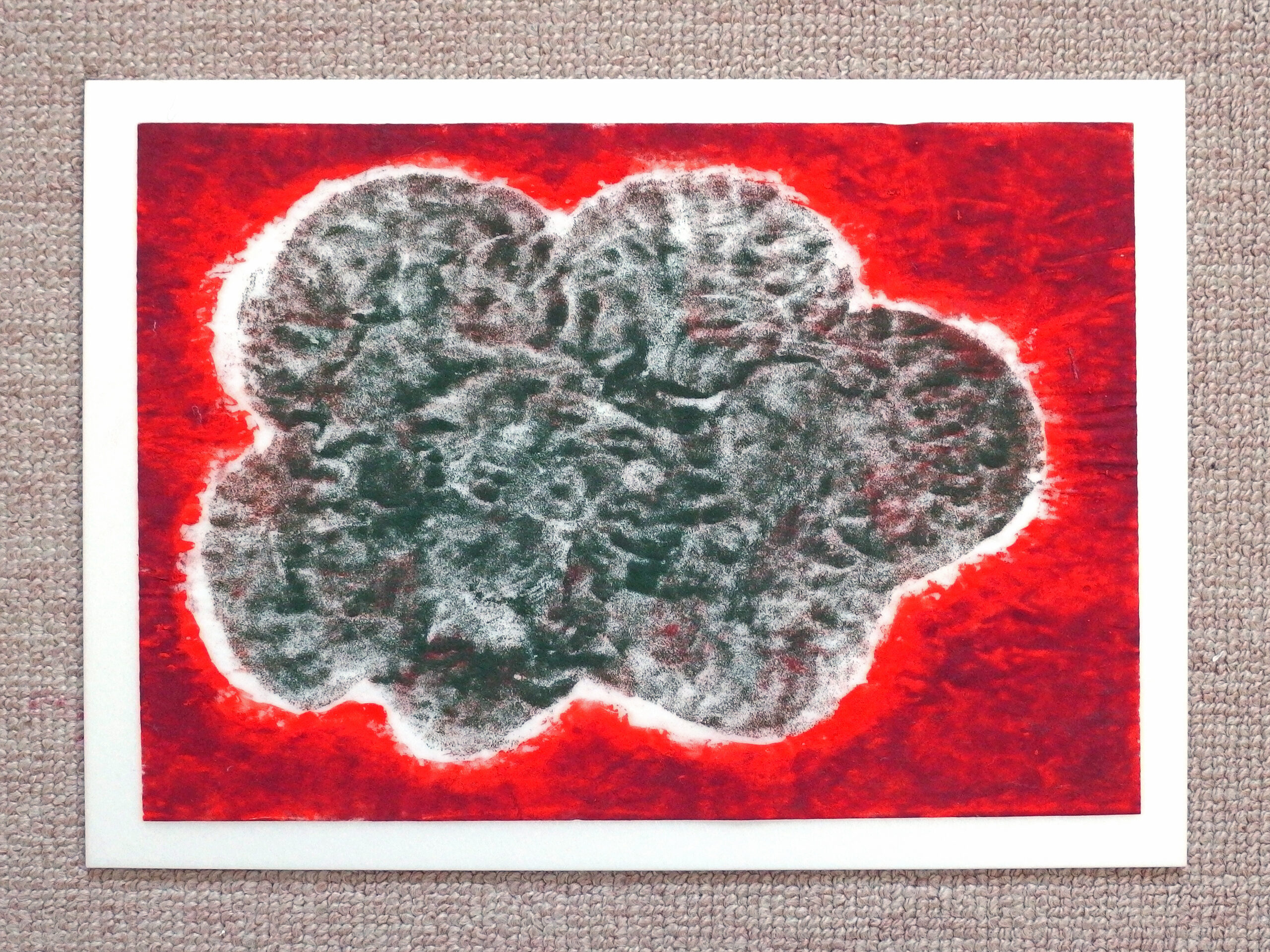 スチレンペーパーという光沢のある真っ白な素材に、岩絵の具自体の美しさが際立ちます。この組み合わせを発見し、気に入って使い続けています。