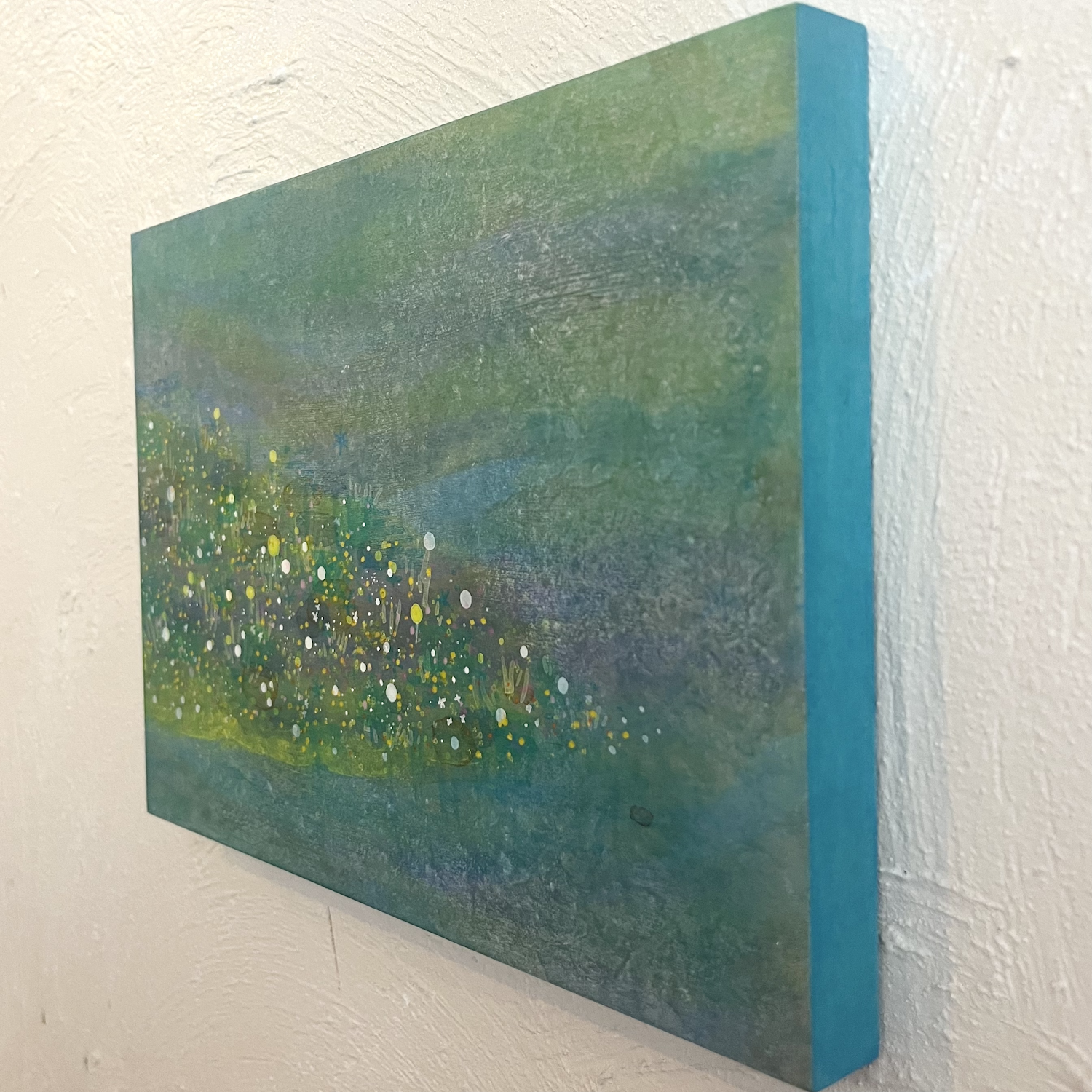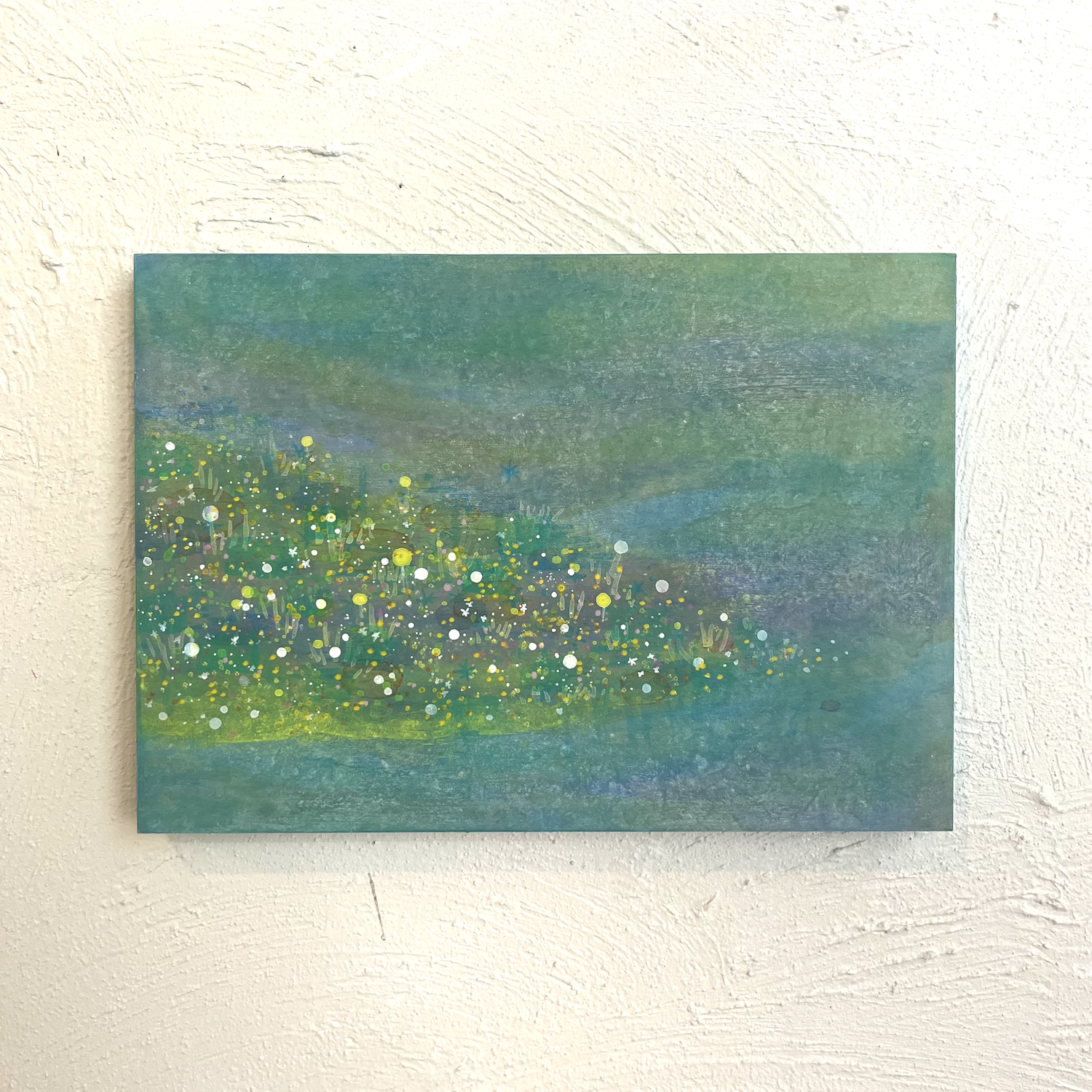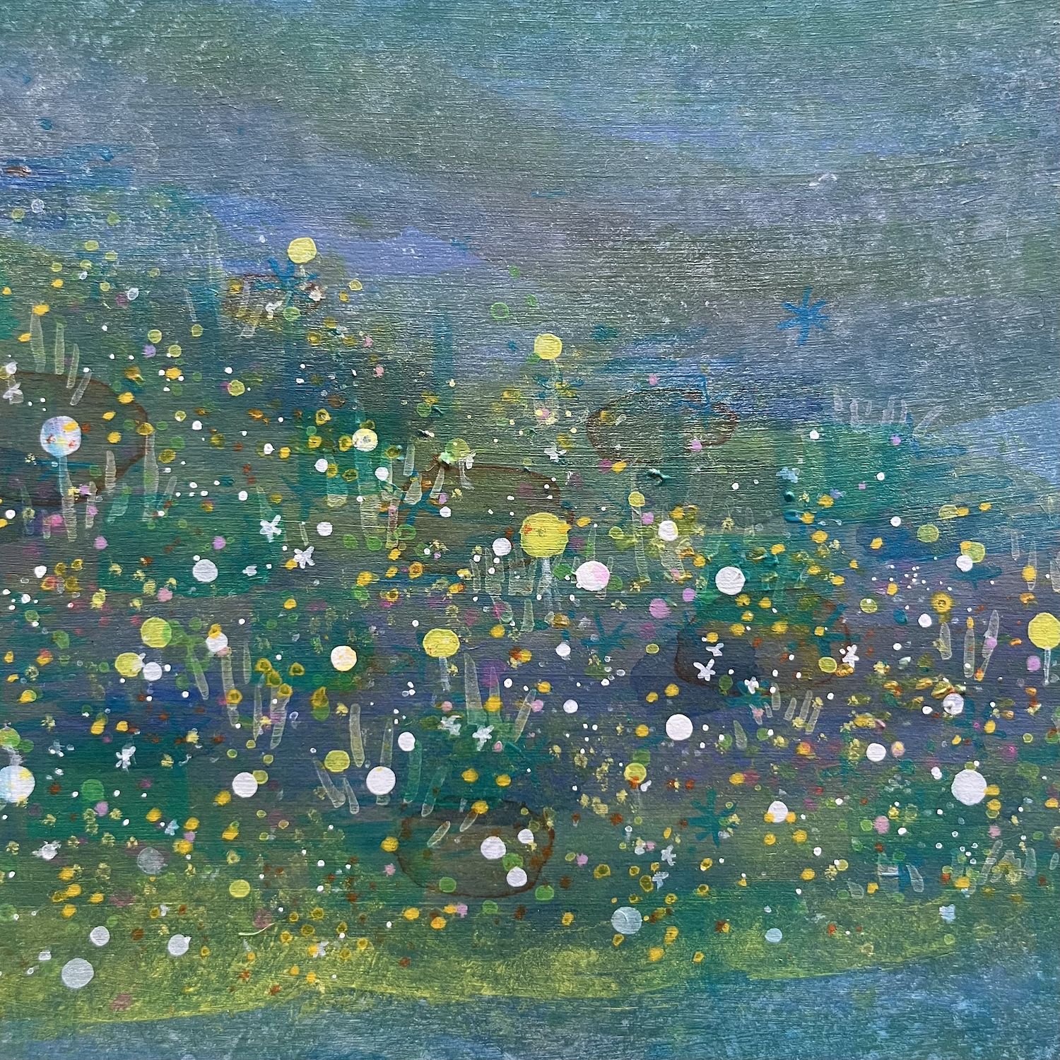 春の女神のポケットから こぼれ落ちて生まれた小さな世界。 折り重なる色の層に、 ぽつぽつとしあわせの粒をのせました。