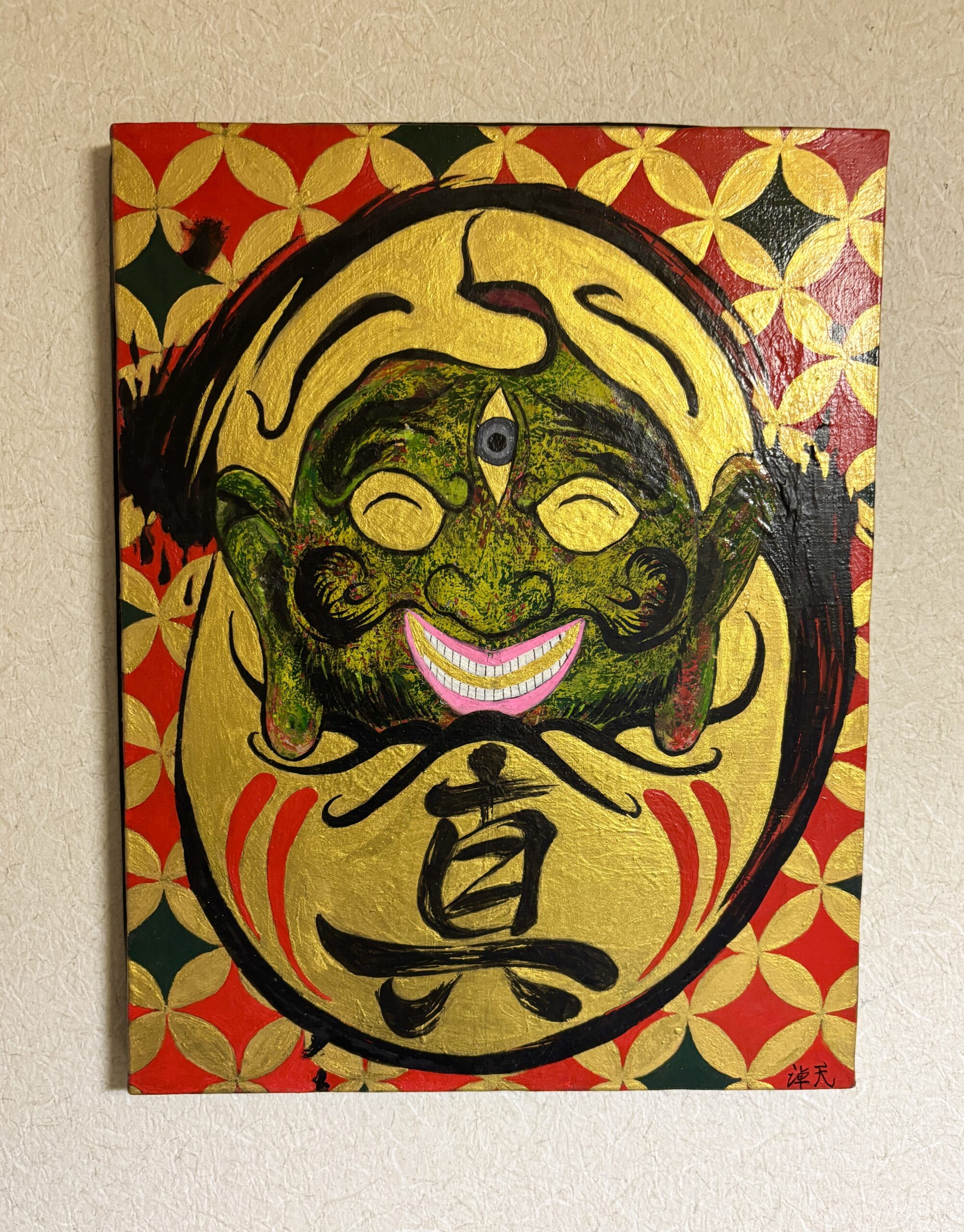 In this piece, both eyes have already been painted, and moreover, the heavenly eye (the third eye) has been opened.