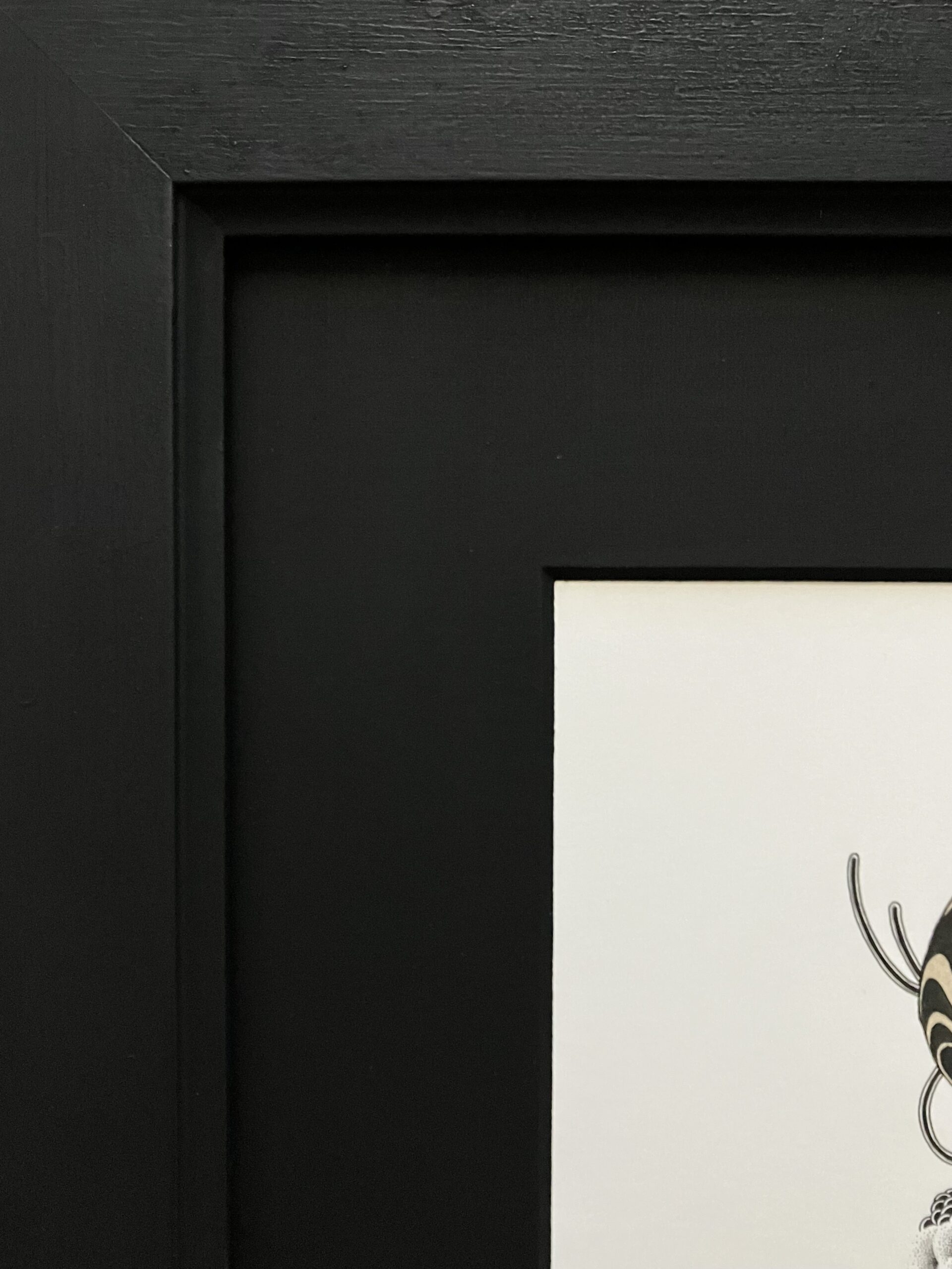自然や生き物へのリスペクト、環境への配慮の観点から一部古いフレームを使用しており、かぶせ箱や差し箱のない作品もございます。ご了承ください。