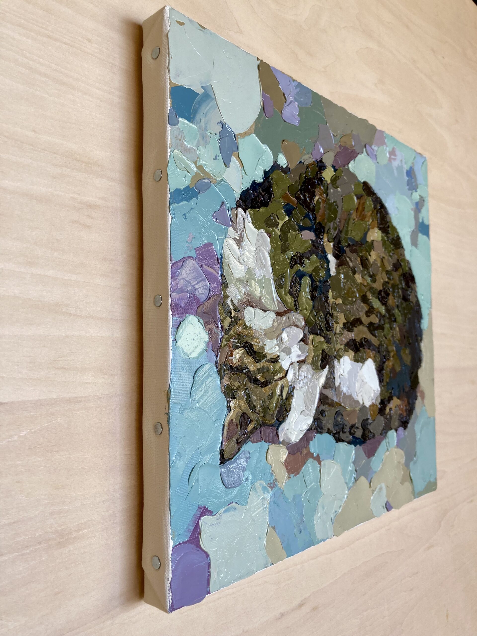 多くを額装なしで販売していますが、シンプルな額装を前提に描いているのでキャンバスの側面は加工などをしていません。描く際に着いた絵の具などはそのままです。