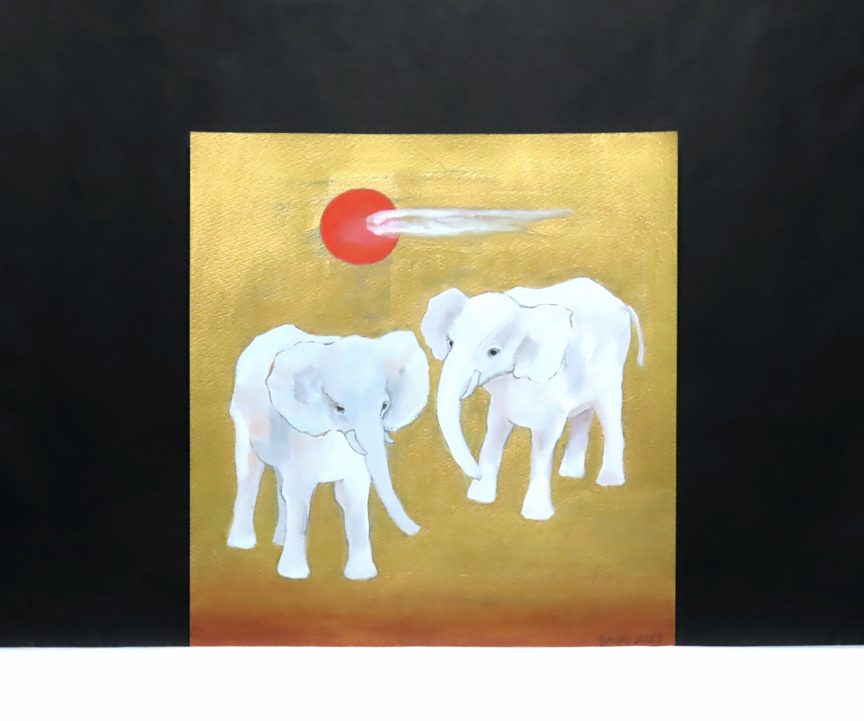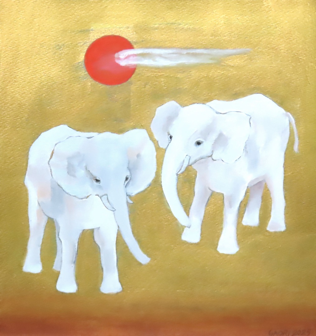 気を許し合った2頭の白象が語り合っているような情景を描きました。