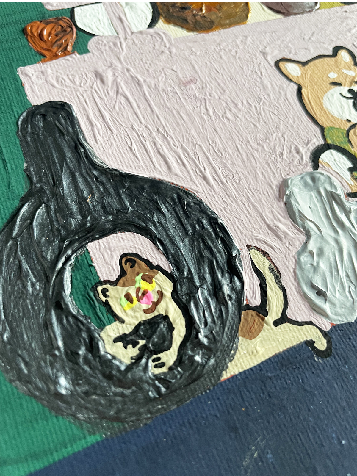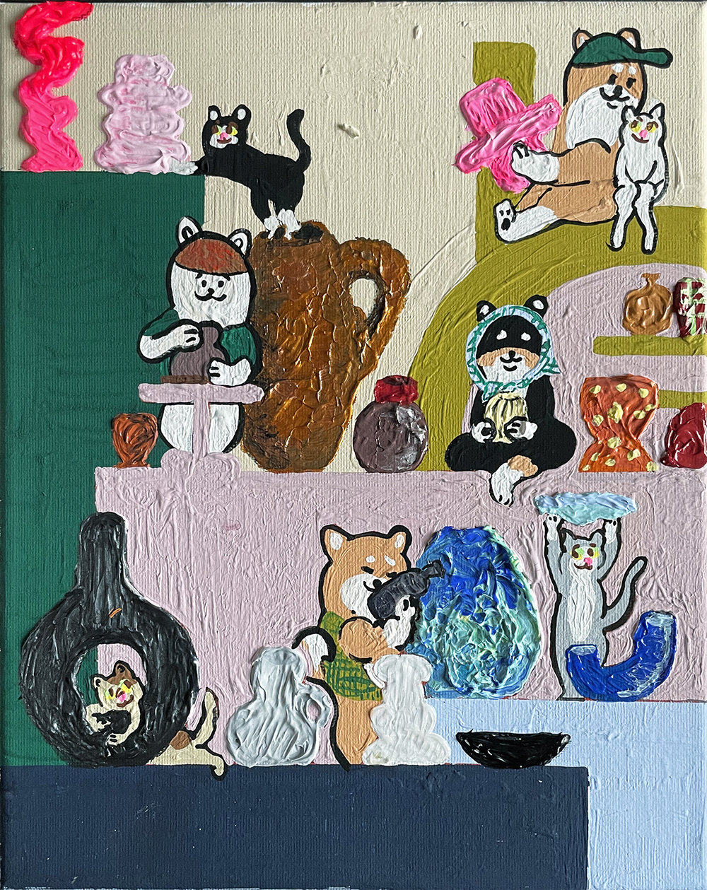 The Shiba Inu dogs tell the cats stories of their wonderful encounters with pottery, and head home feeling like, “My pottery is the best after all.”