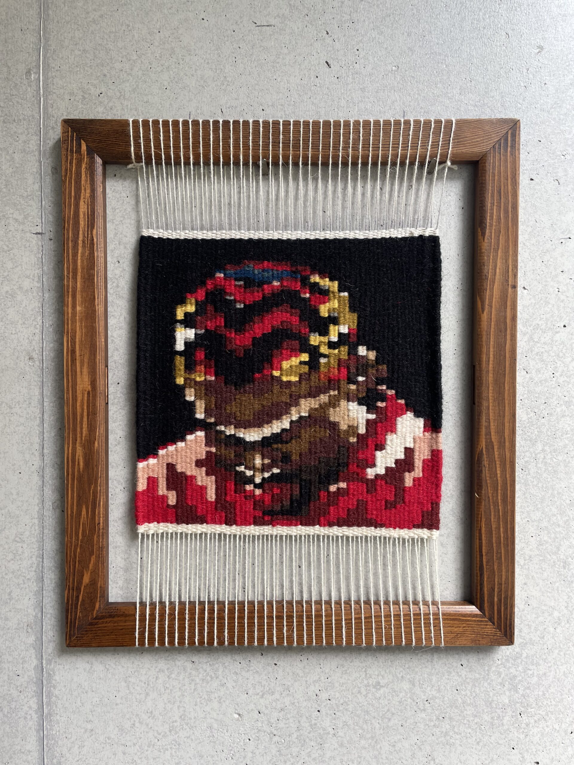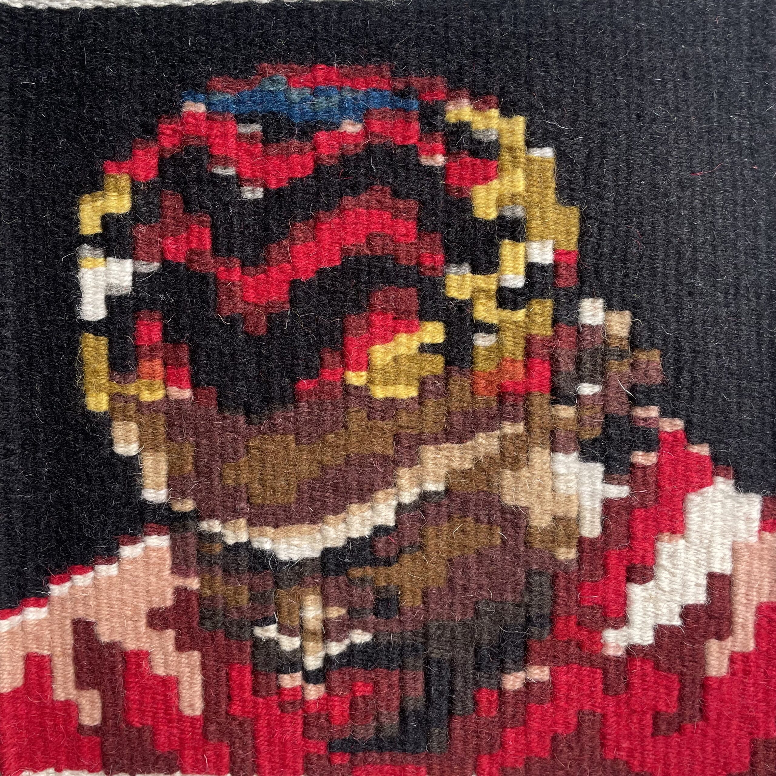 90年代カルチャー × キリム × アート。カウンターカルチャー同士がミックスされることで、全く新しい現代アートがここにはあります。体重をのせながら作る指織りキリムは、1日に数センチも織ることができません。故に圧倒的な存在感と迫力を宿します。一度、感じていただきたいです。