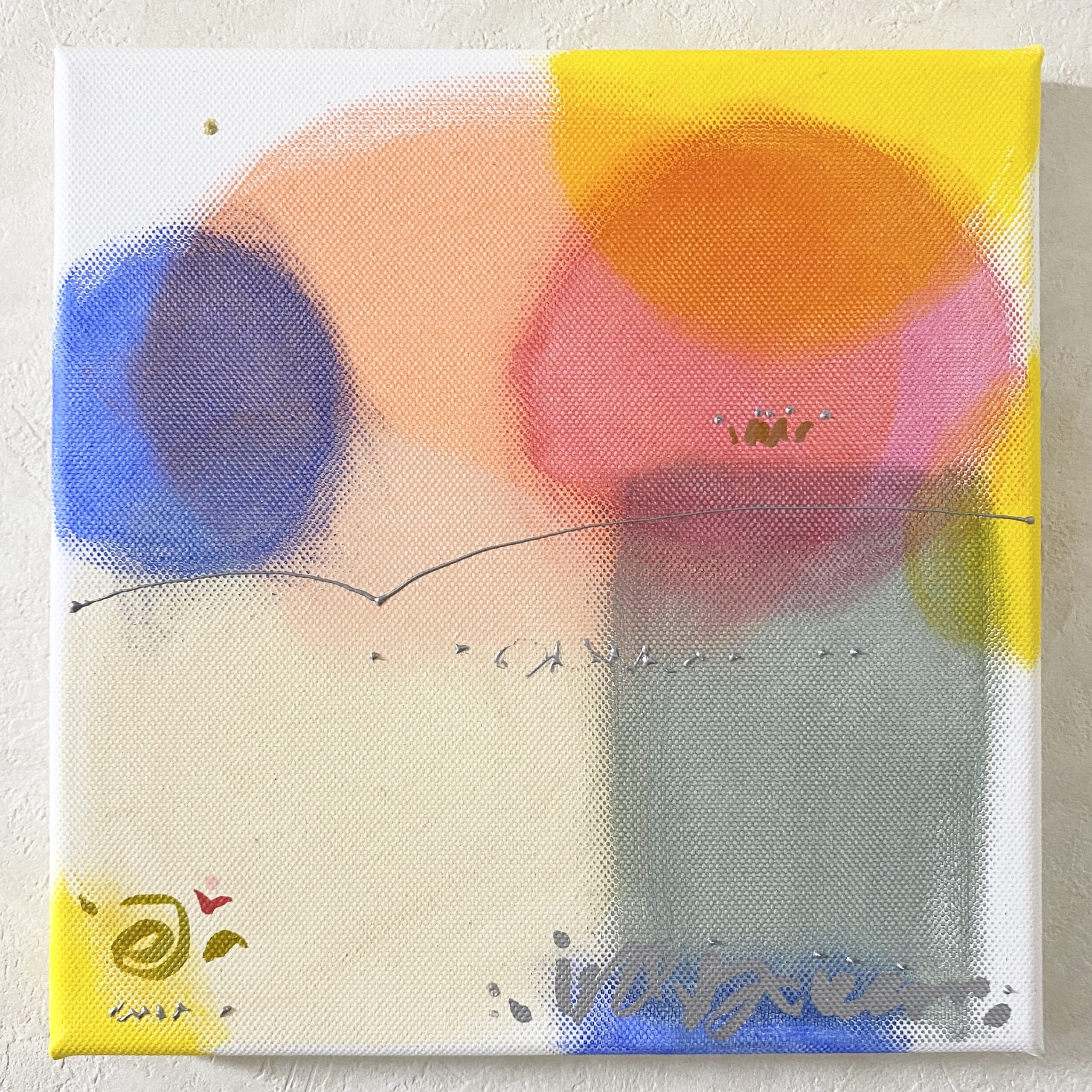 学生時代、染色技法、アクリル画で、主に幾何・抽象表現の作品を制作。