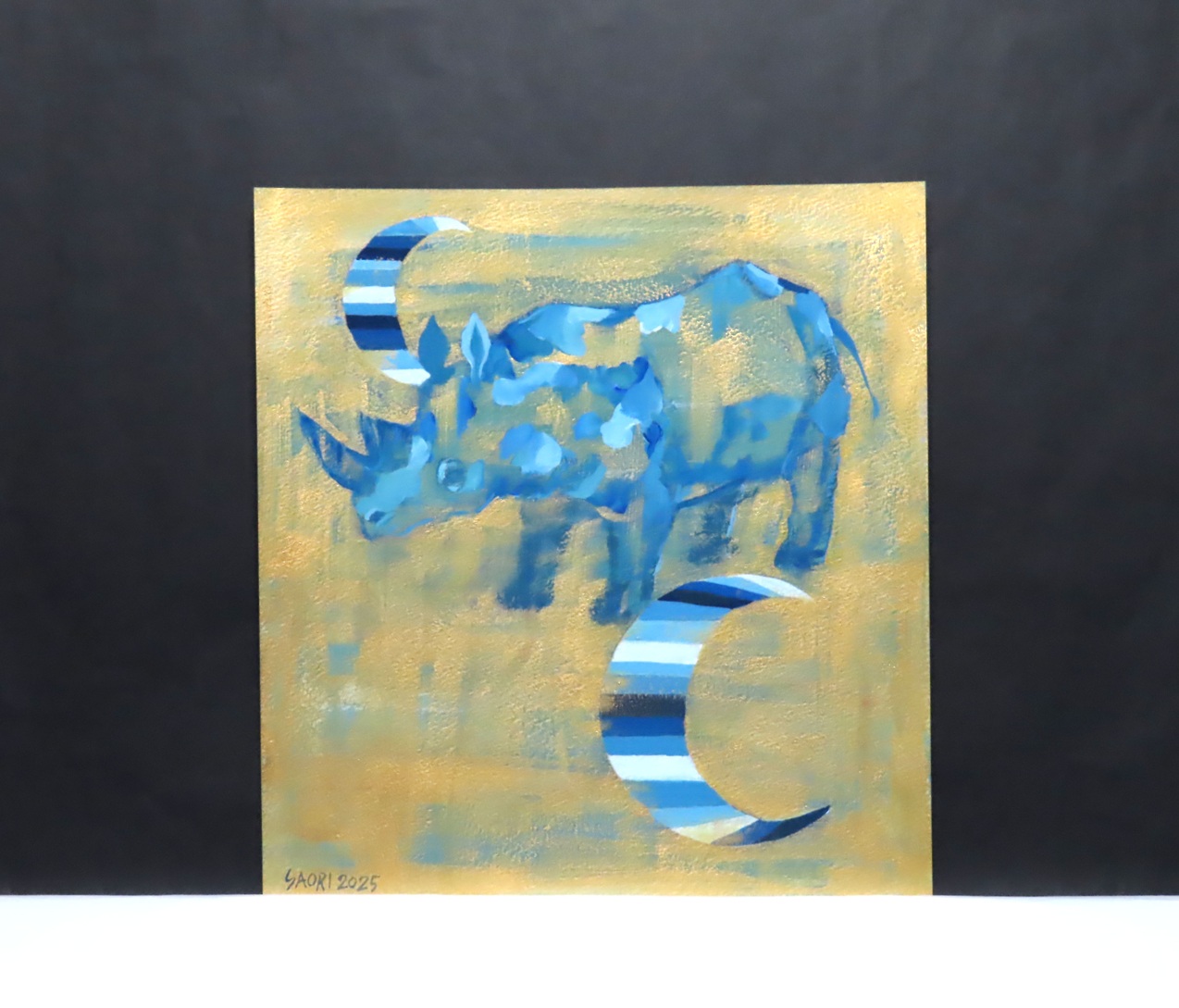 ●絵の背景は金色のアクリル絵具で下地の青色が薄っすら感じるように塗っています。
