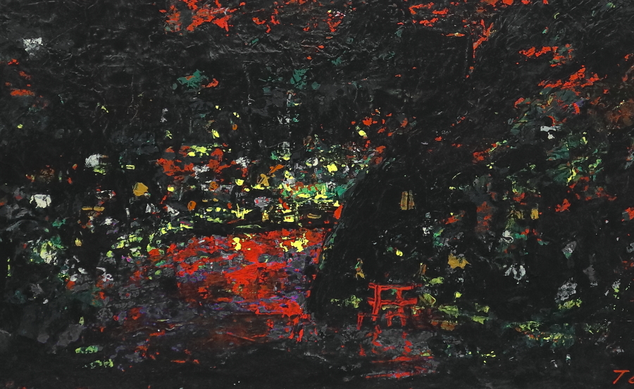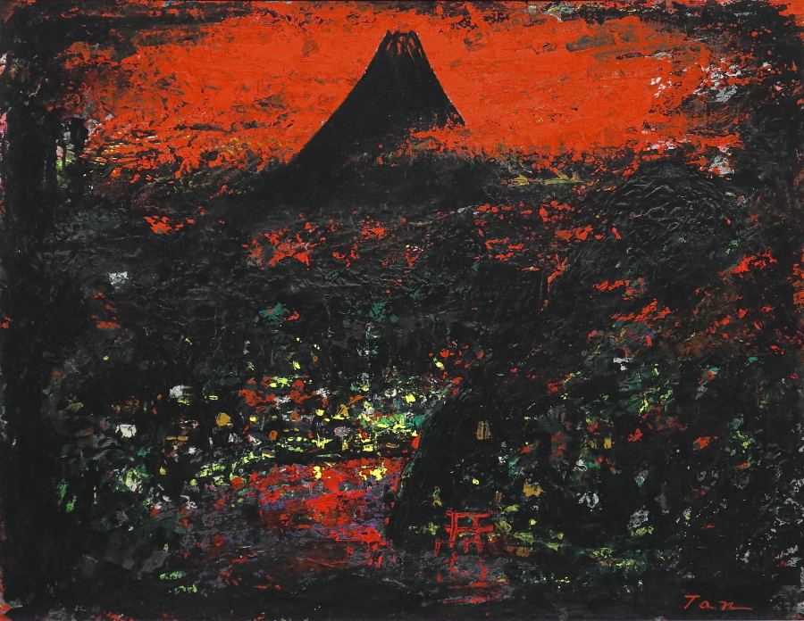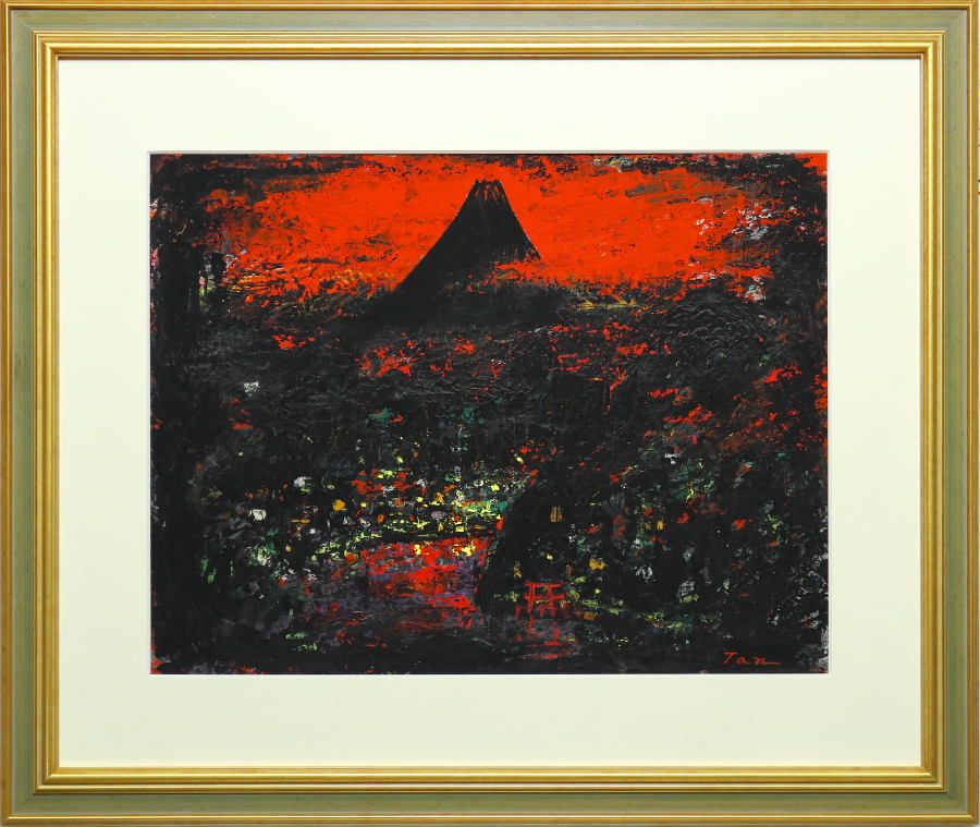 「黒富士」(NO.2526) / 6号F / ケント紙にアクリル絵の具不透明 / 額付き-額は取り寄せになりますので1週間ほどお待ち願います / 安本太ん 芸大卒 / 画像をクリックすると拡大画像になります